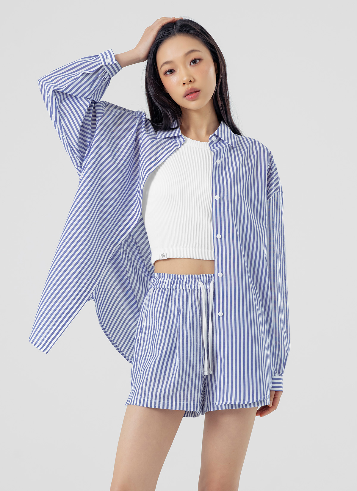 XFK2PS1108 Soft Stripe Shorts Blue Whale bottom