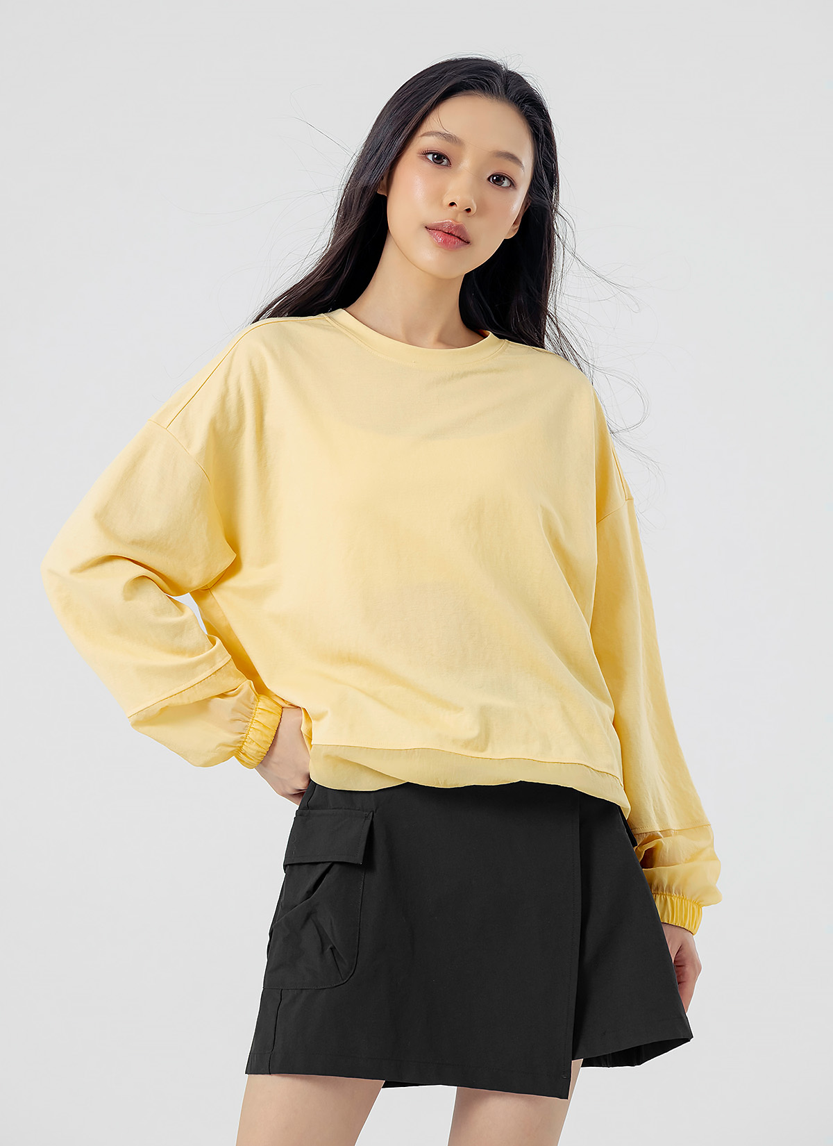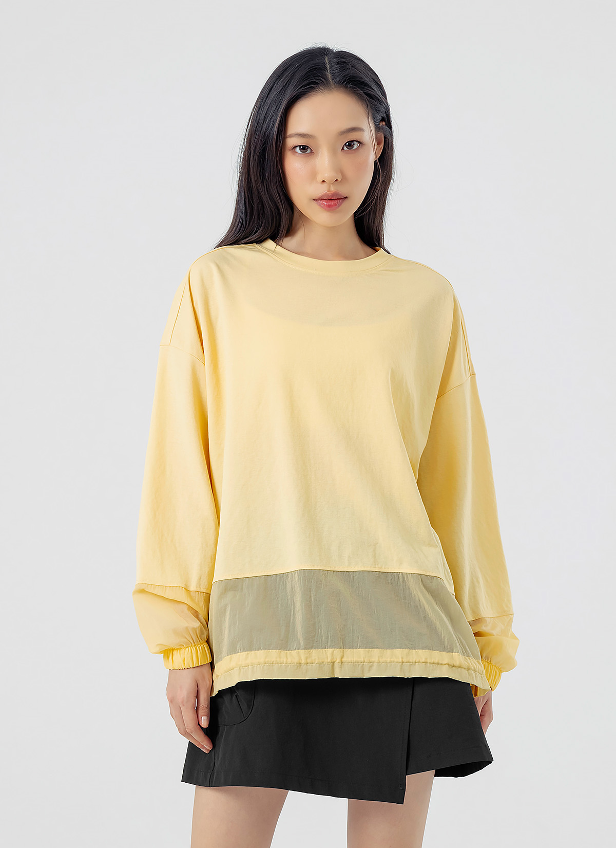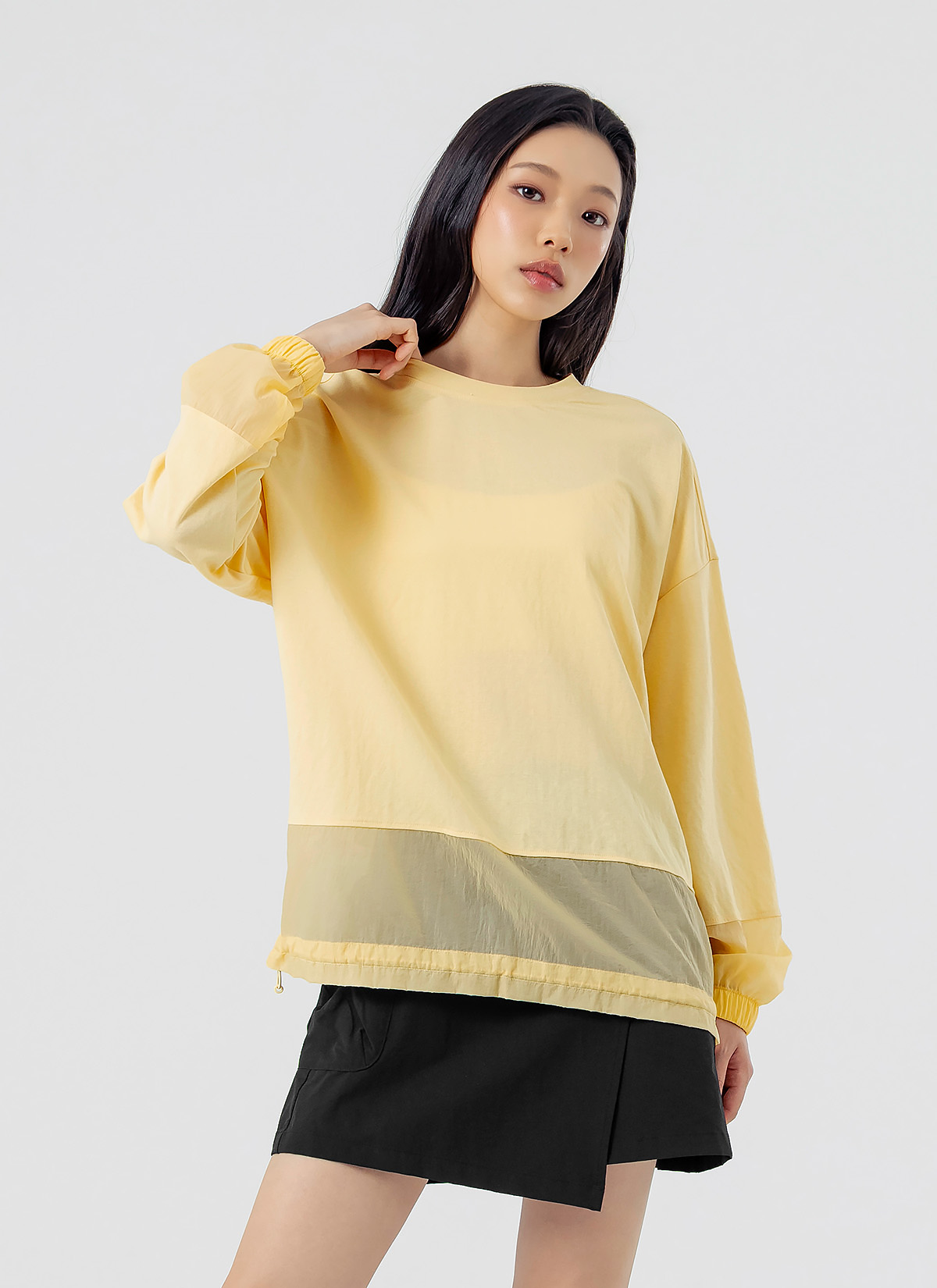 XFK1TL1105 Woven mix string Man to man yellow cream top