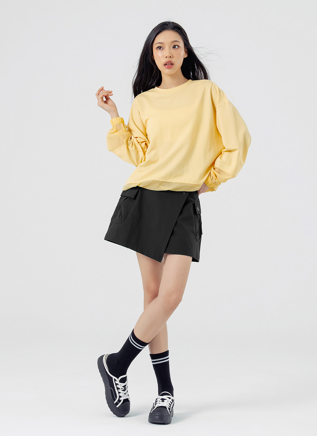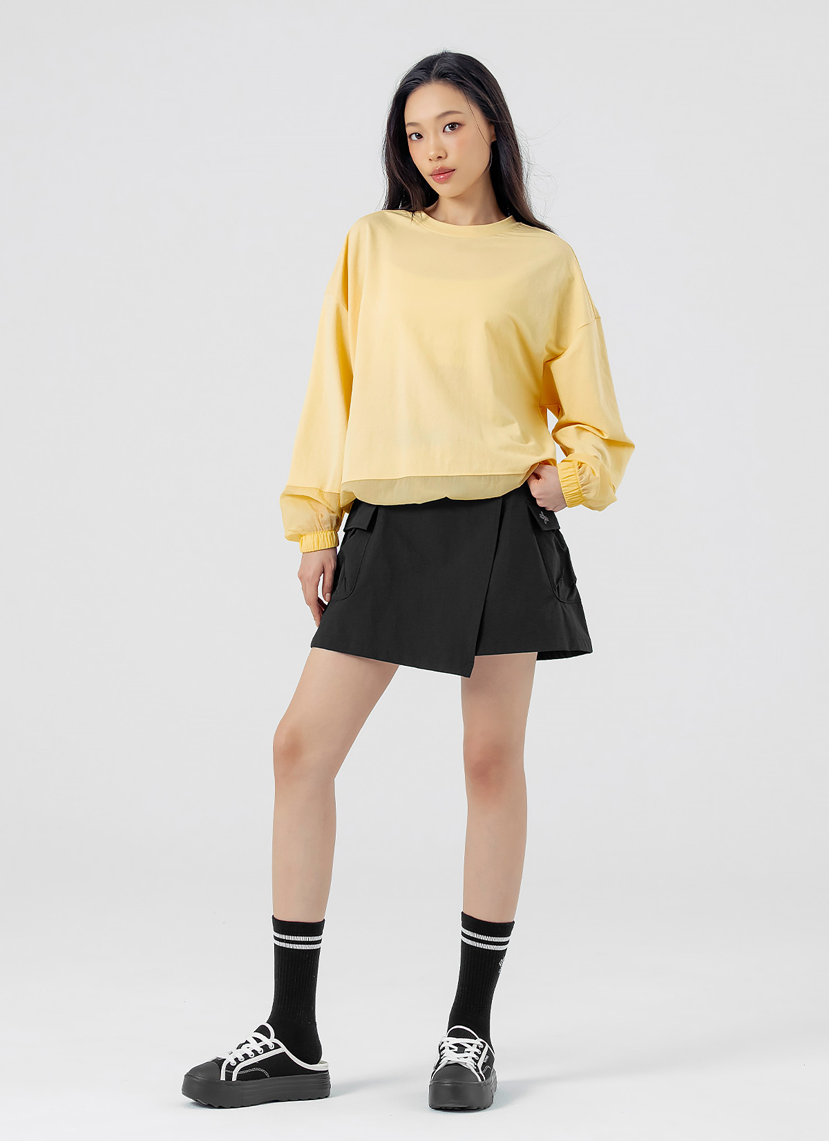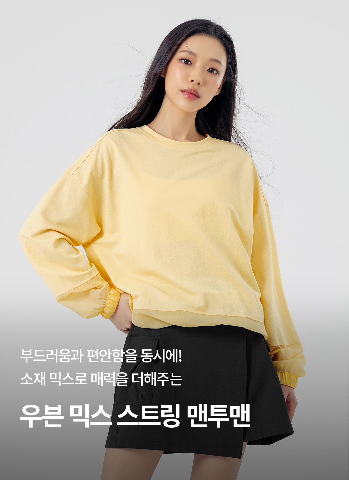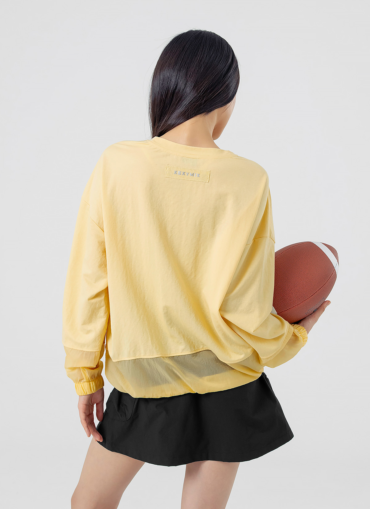 XFK1TL1105 Woven mix string Man to man yellow cream top