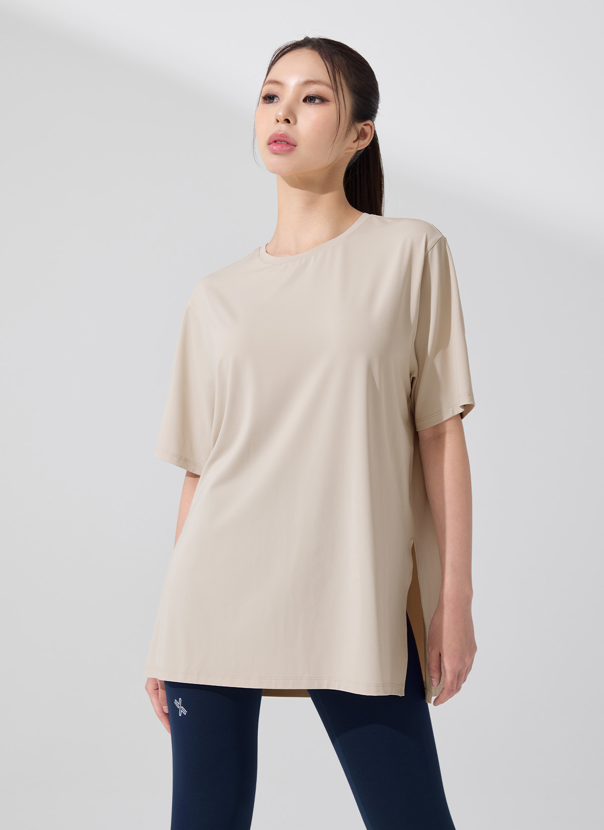 XFK3TS1002 Icefeather Light Loose-Fit Short Sleeve Cool Wax Beige TOP
