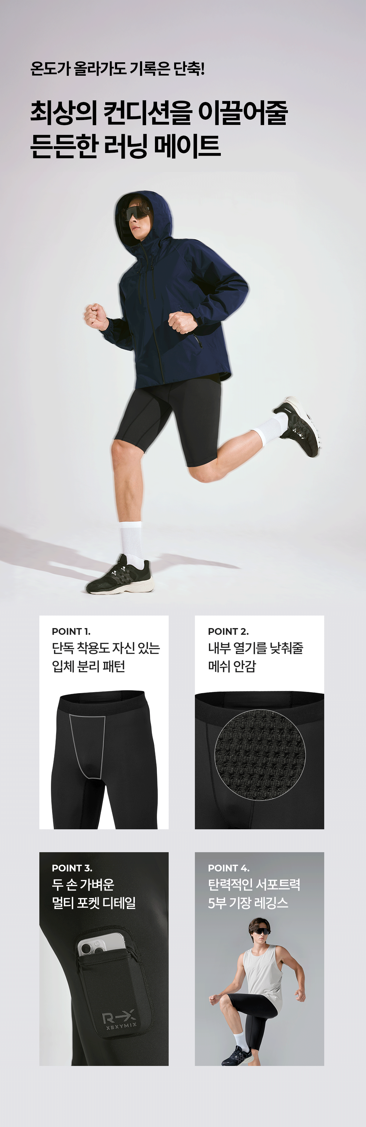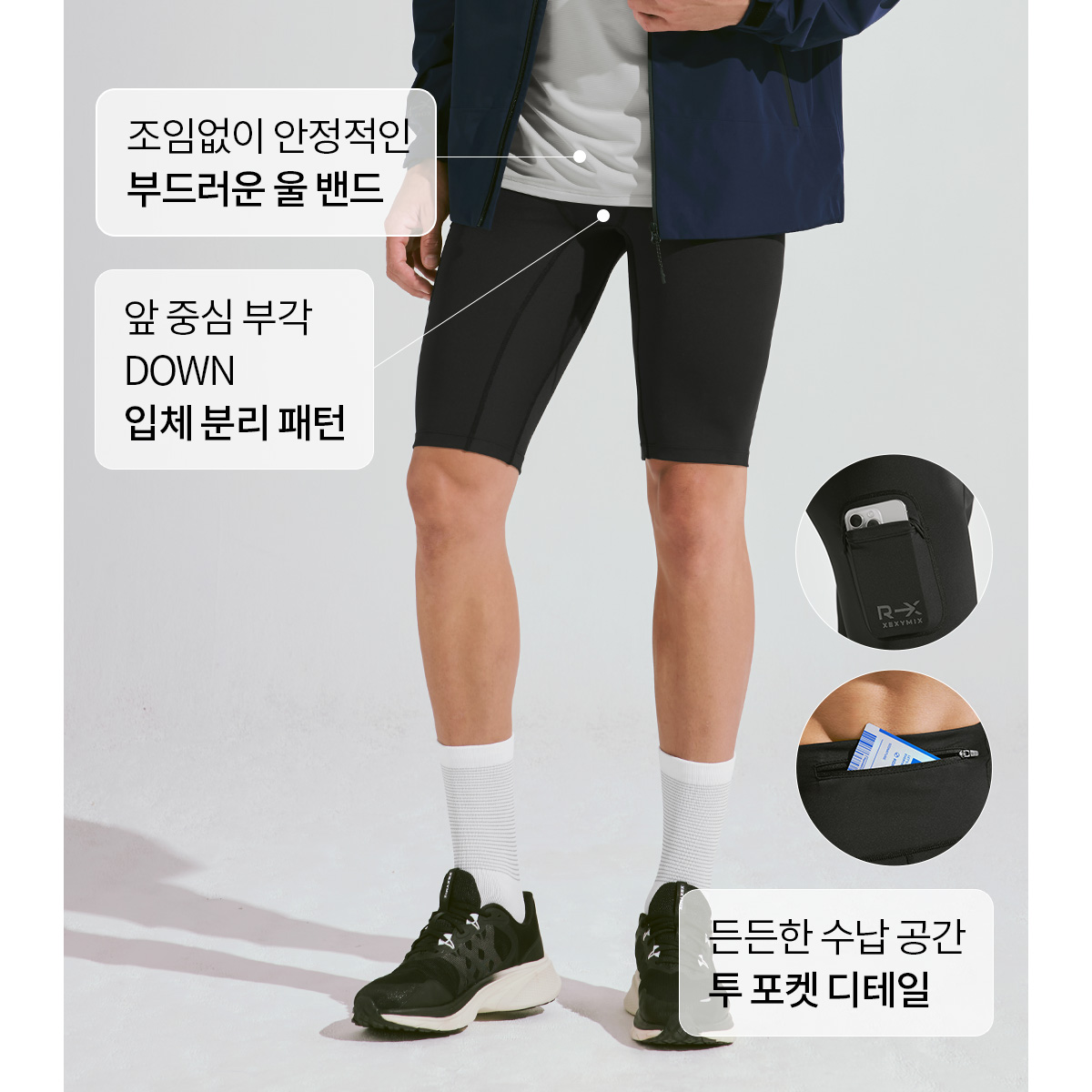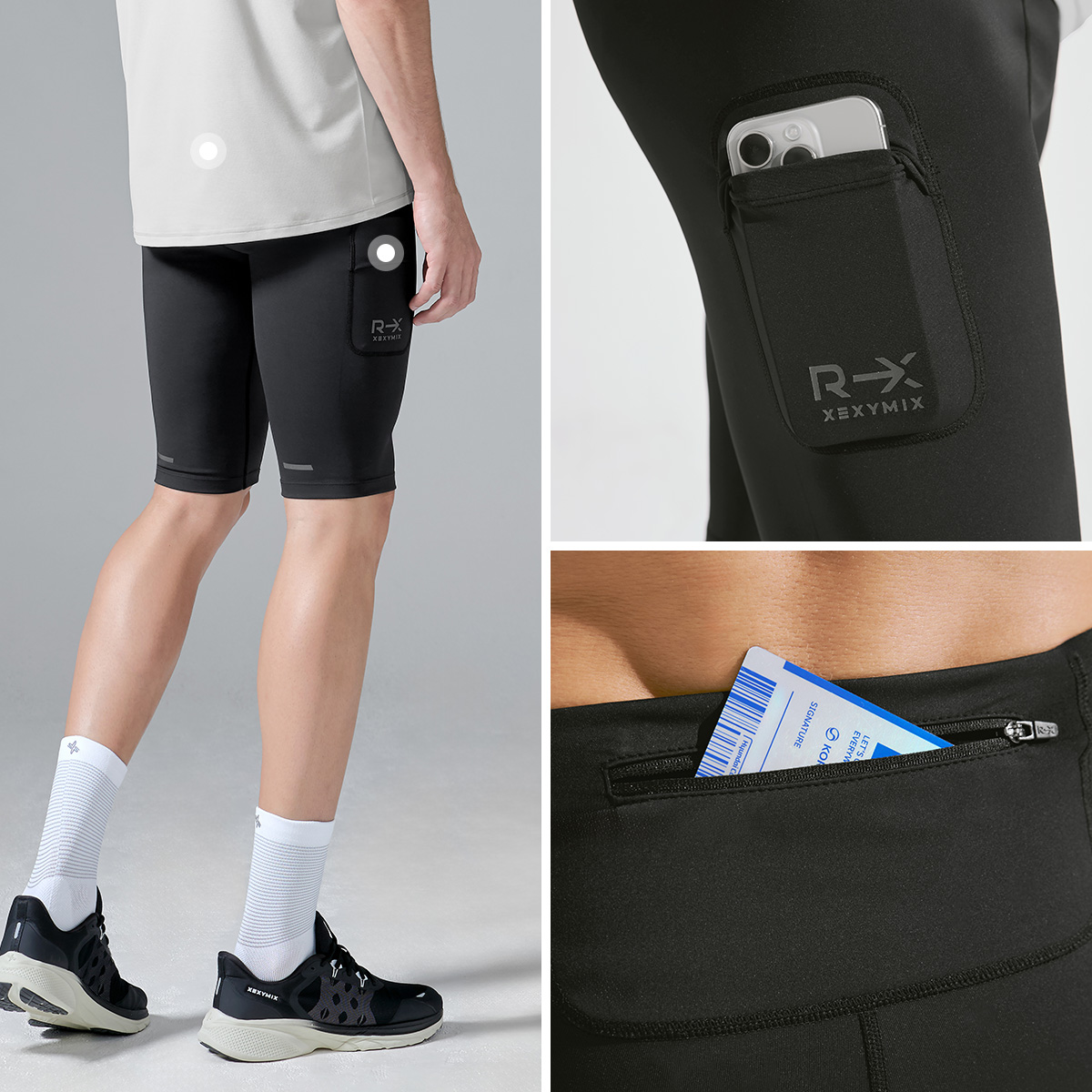 XMK3PS1001 RX Mens Compression Pocket Leggings 5 length Bottom