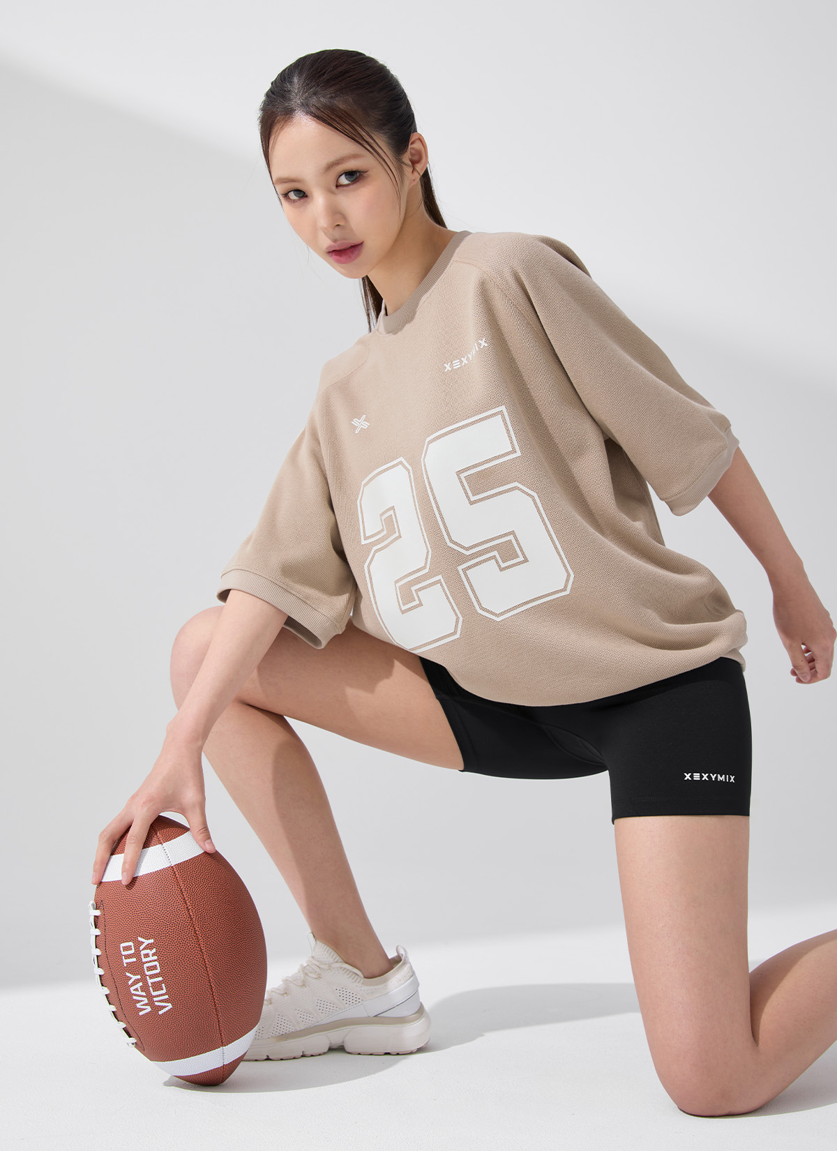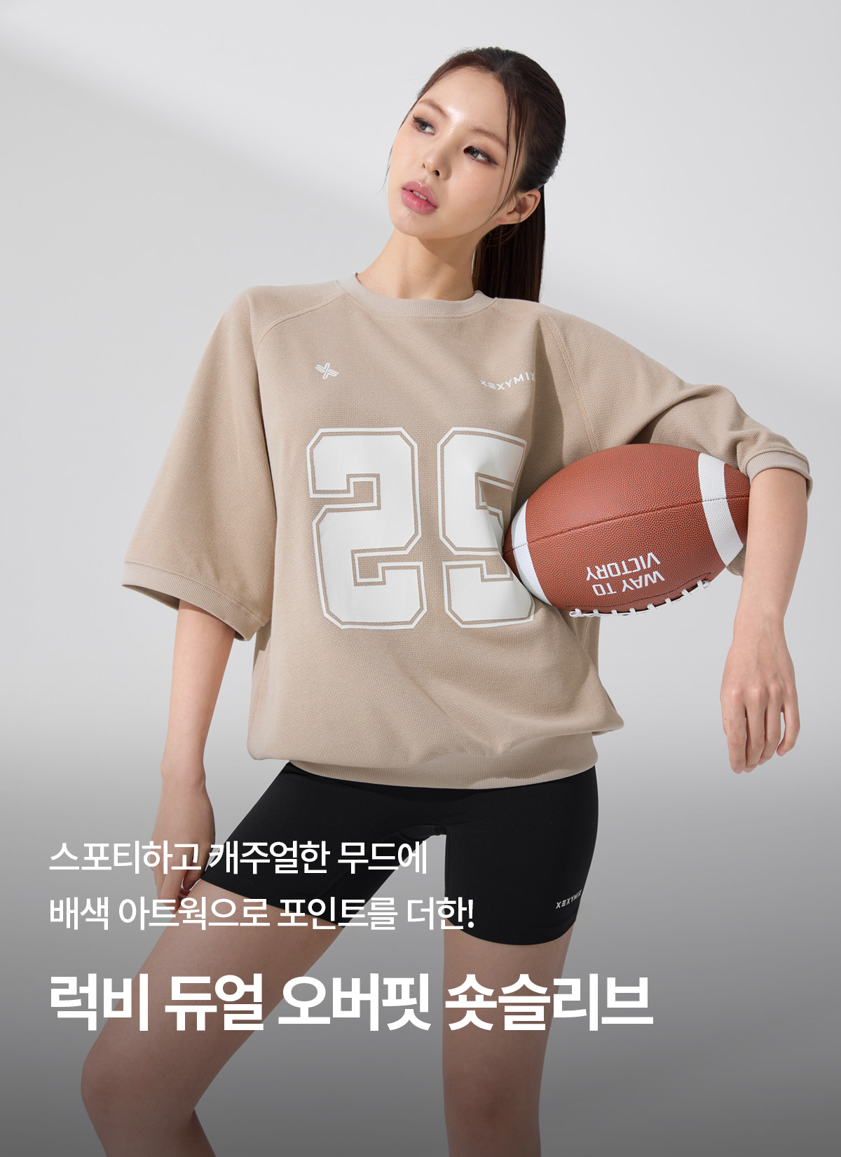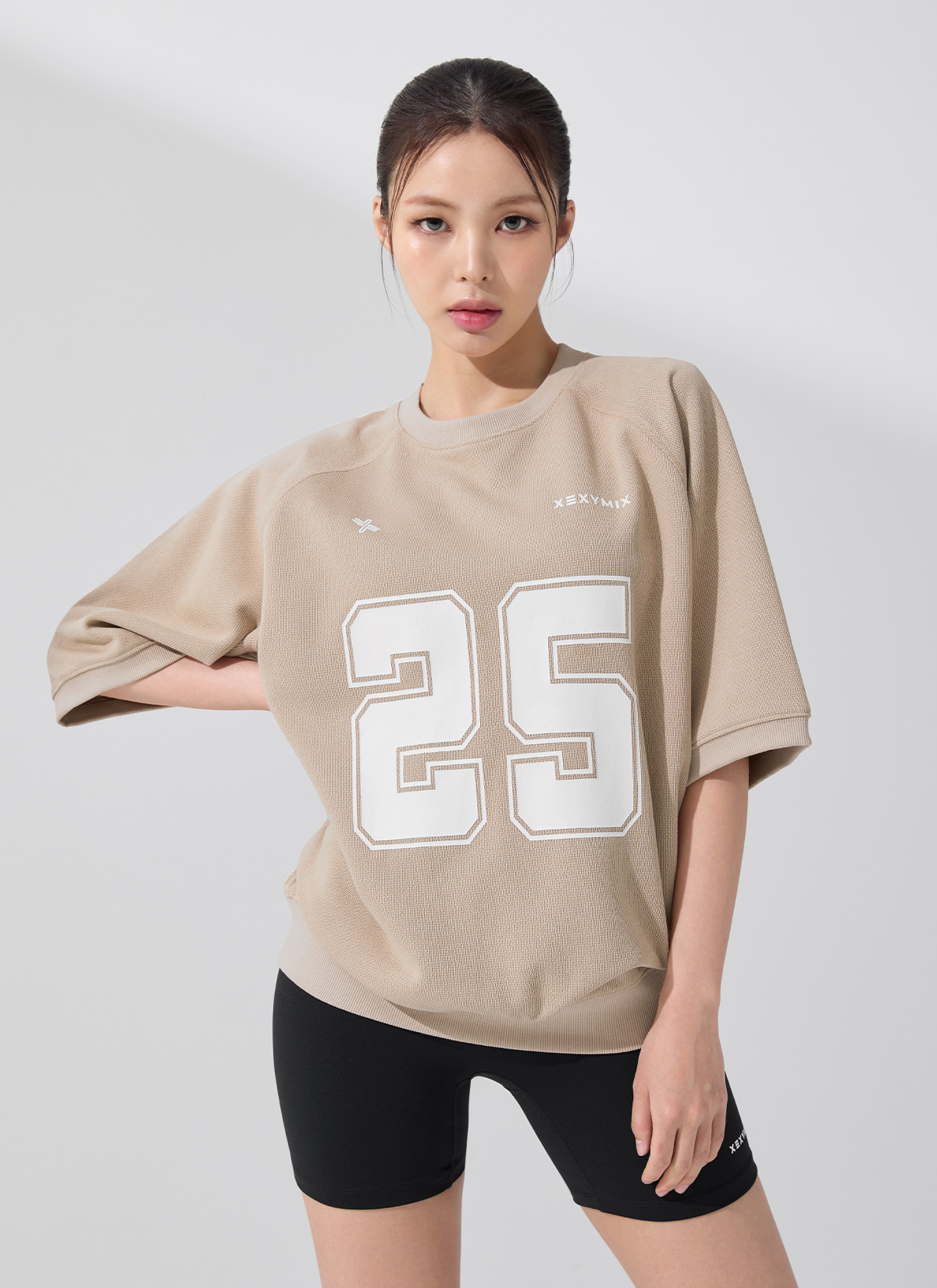 XFK3TS1102 Rugby Dual Oversized Short-Sleeve Nutty Beige top