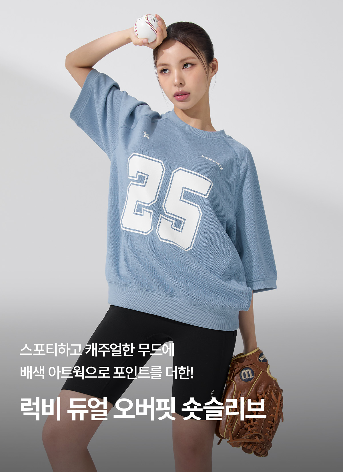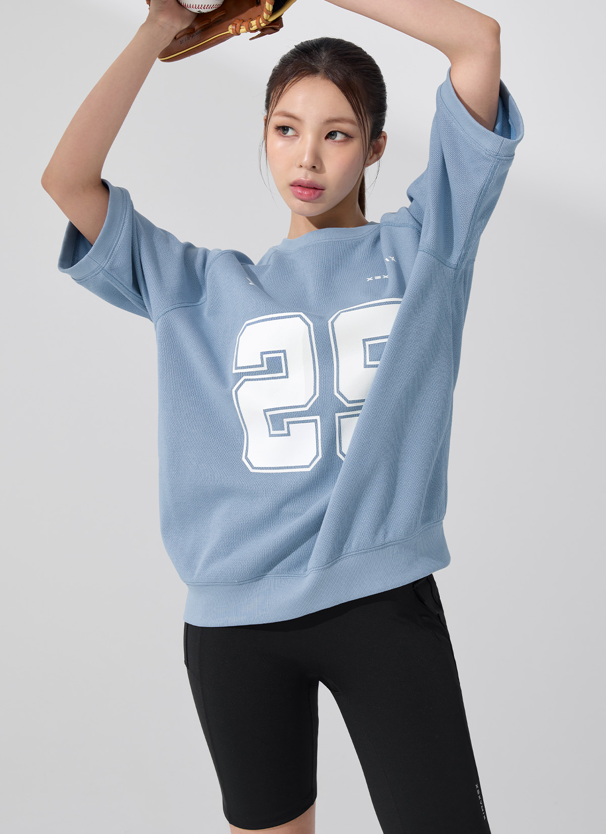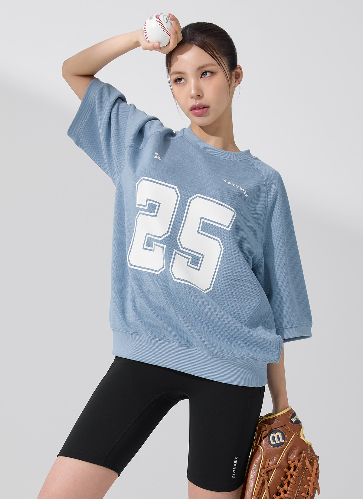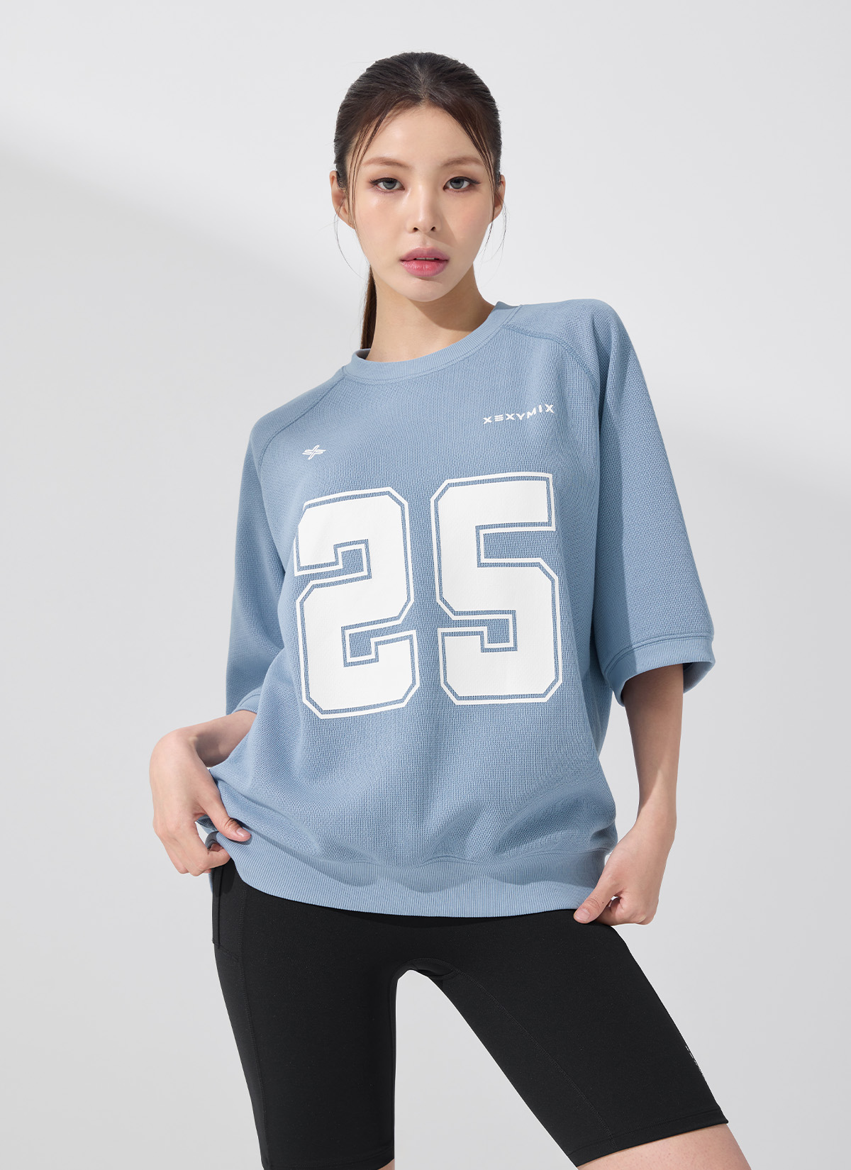 XFK3TS1102 Rugby Dual Oversized Short-Sleeve Mountain Blue top