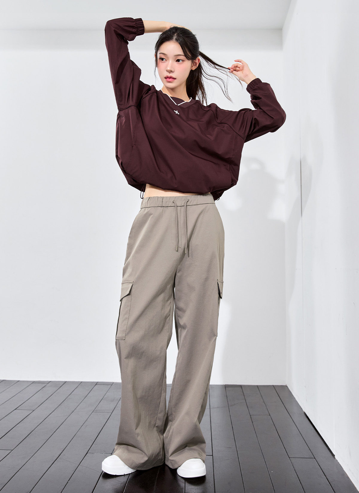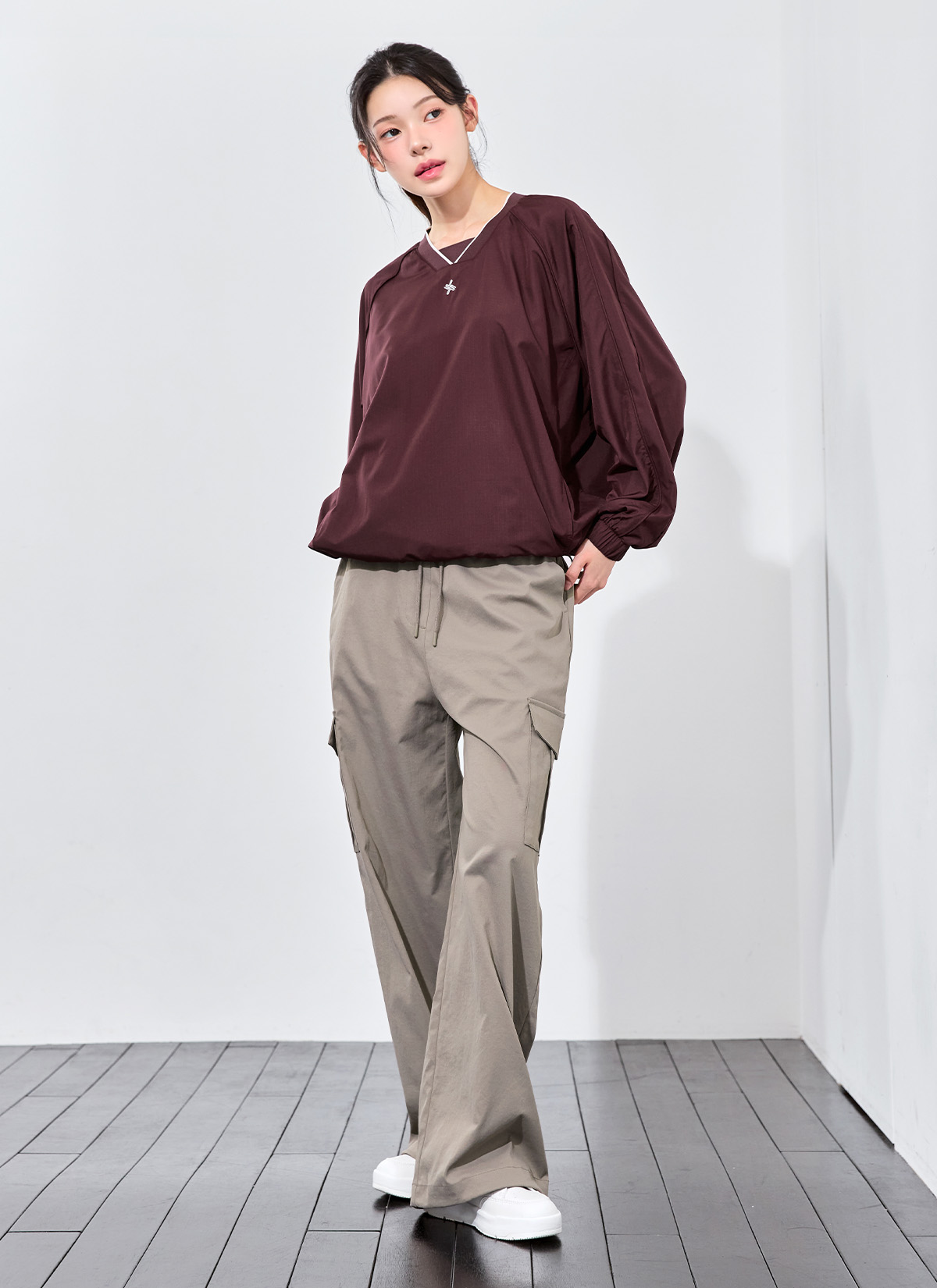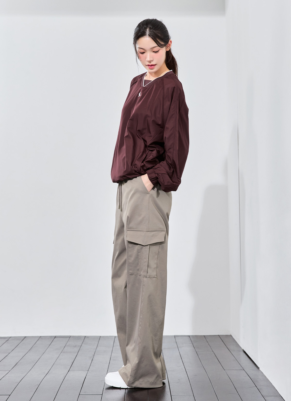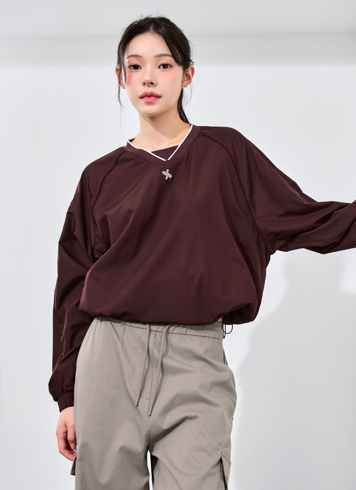 XFK3TL1107 Sportive Piping Woven Man to Man TOP