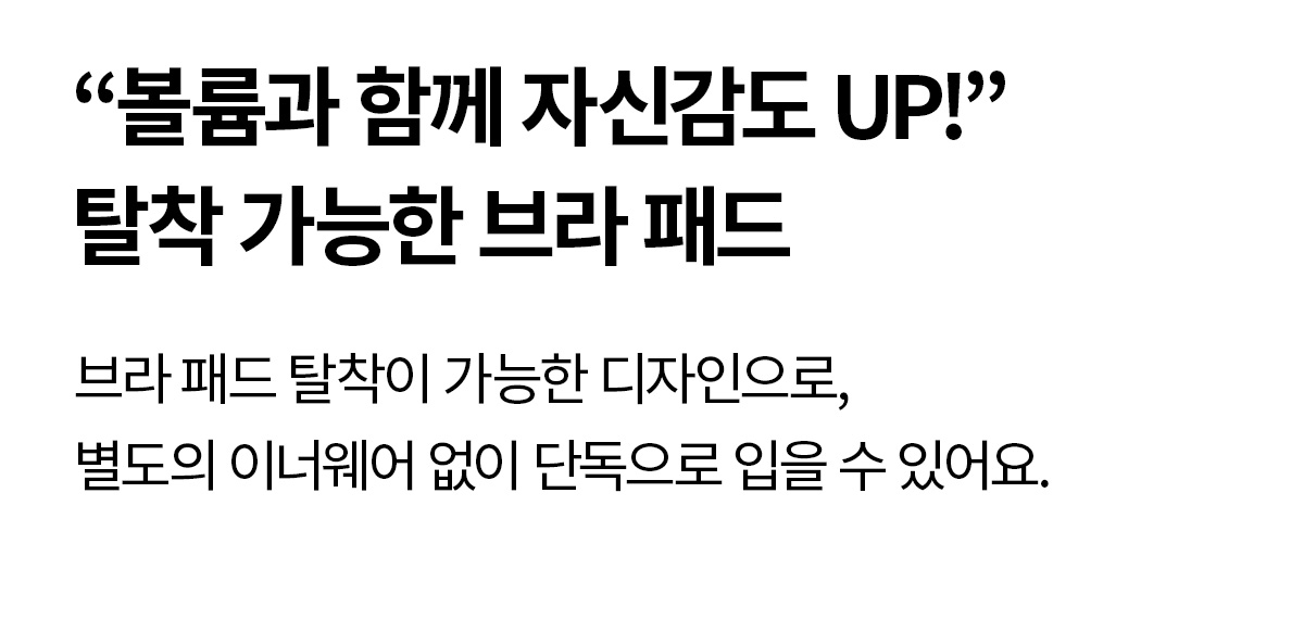 INNER AIR BRA PAD 본 상품은 타공 스펀지로 통기성이 업그레이드된 에어 브라패드(1cm)가 포함되어 있습니다. S, M 사이즈 패드탑 : S / M 사이즈 패드 L, XL, XXL, XXXL 사이즈 패드탑 : L / XL 사이즈 패드