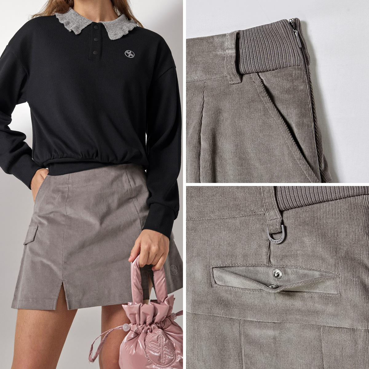 XFK3RK1205 Corduroy Bag Pleats Skirt BOTTOM
