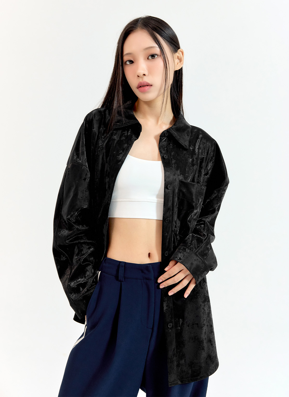 XFK3HC1102 Glossy loose fit Shirt TOP