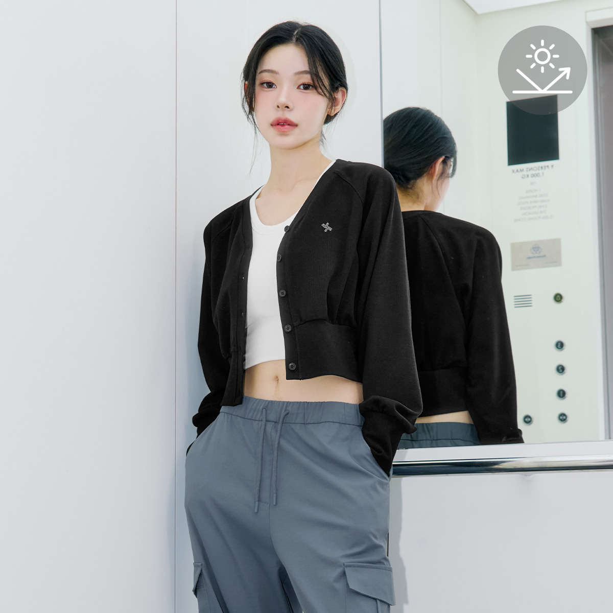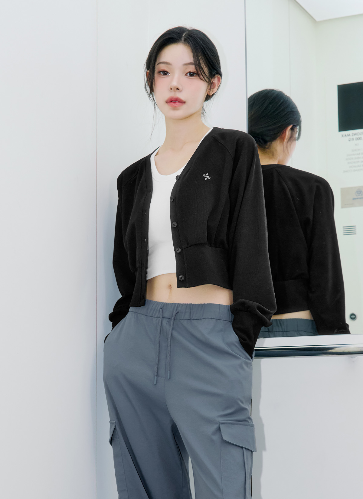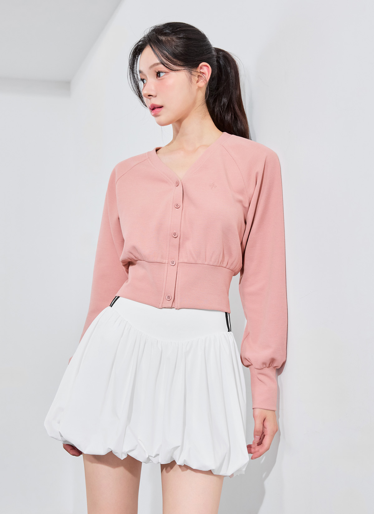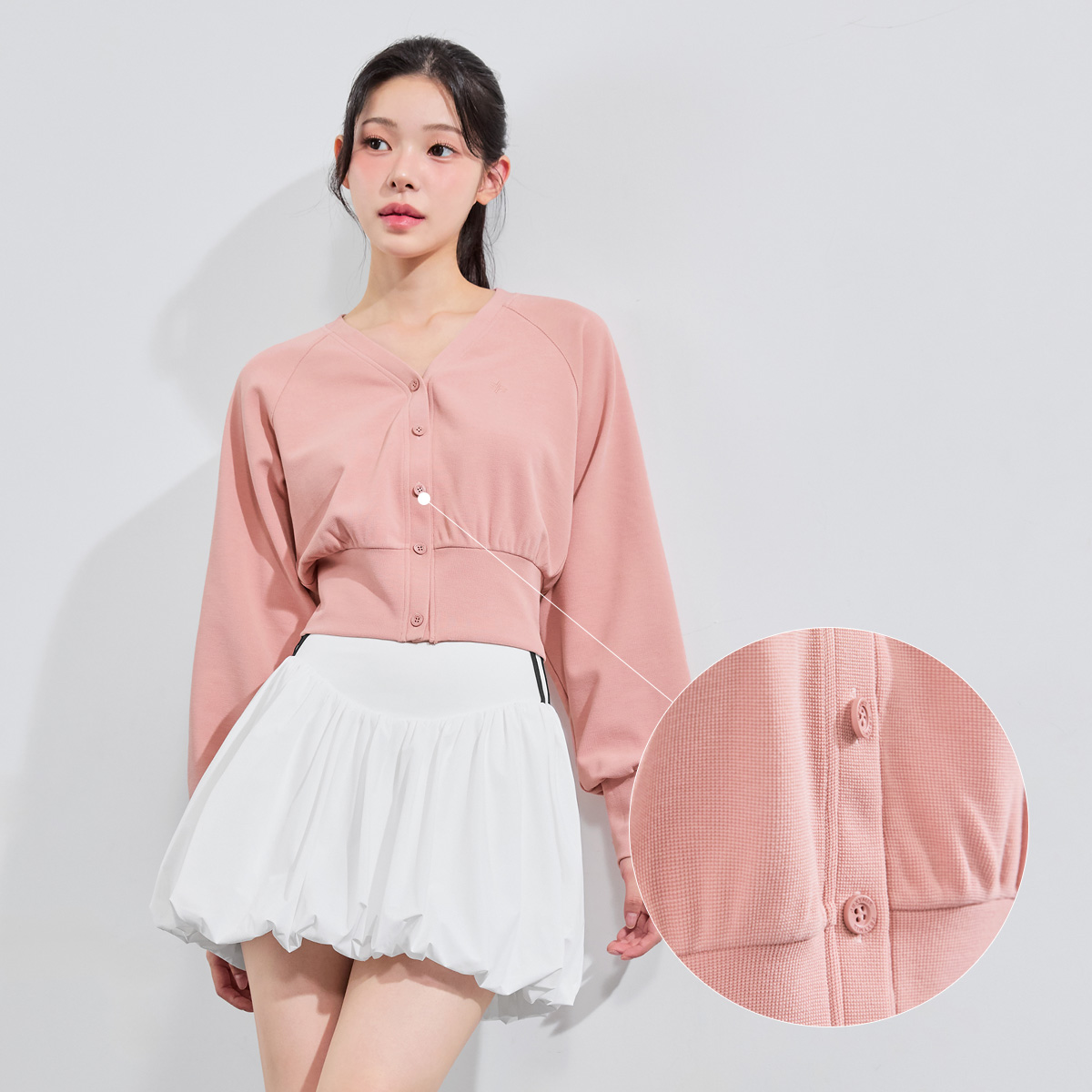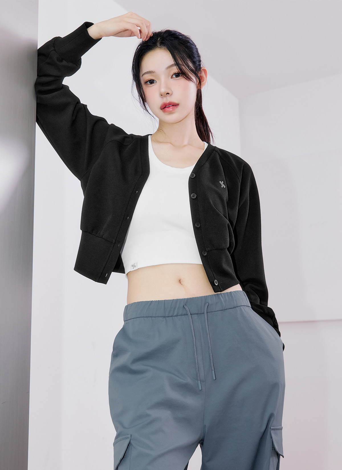 XFK3TC1116 Waffle Texture Blue Jean Cardigan TOP