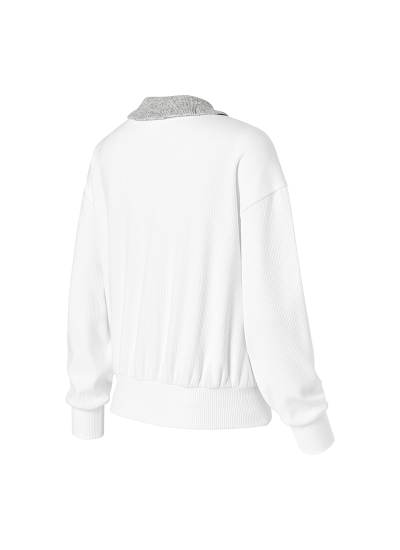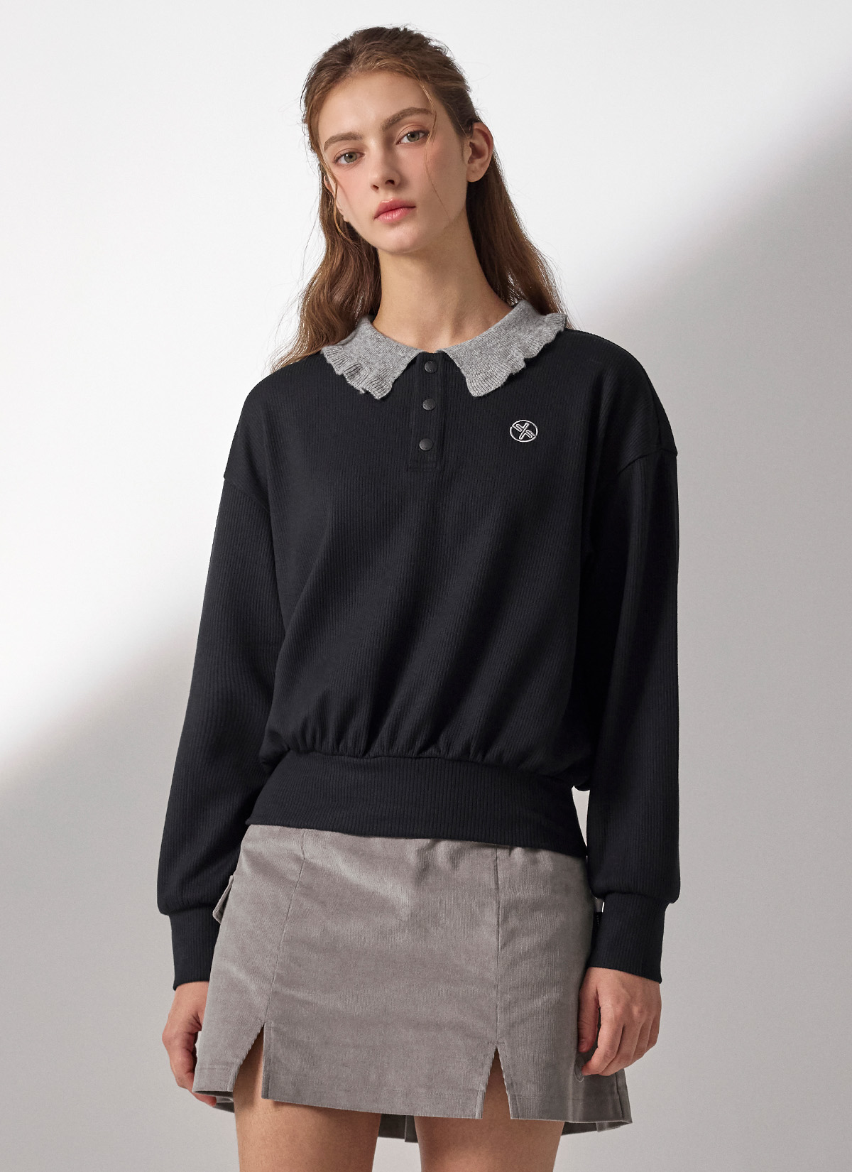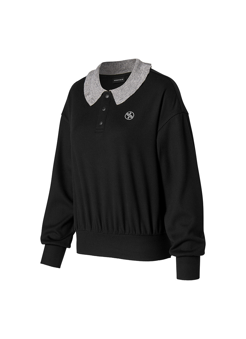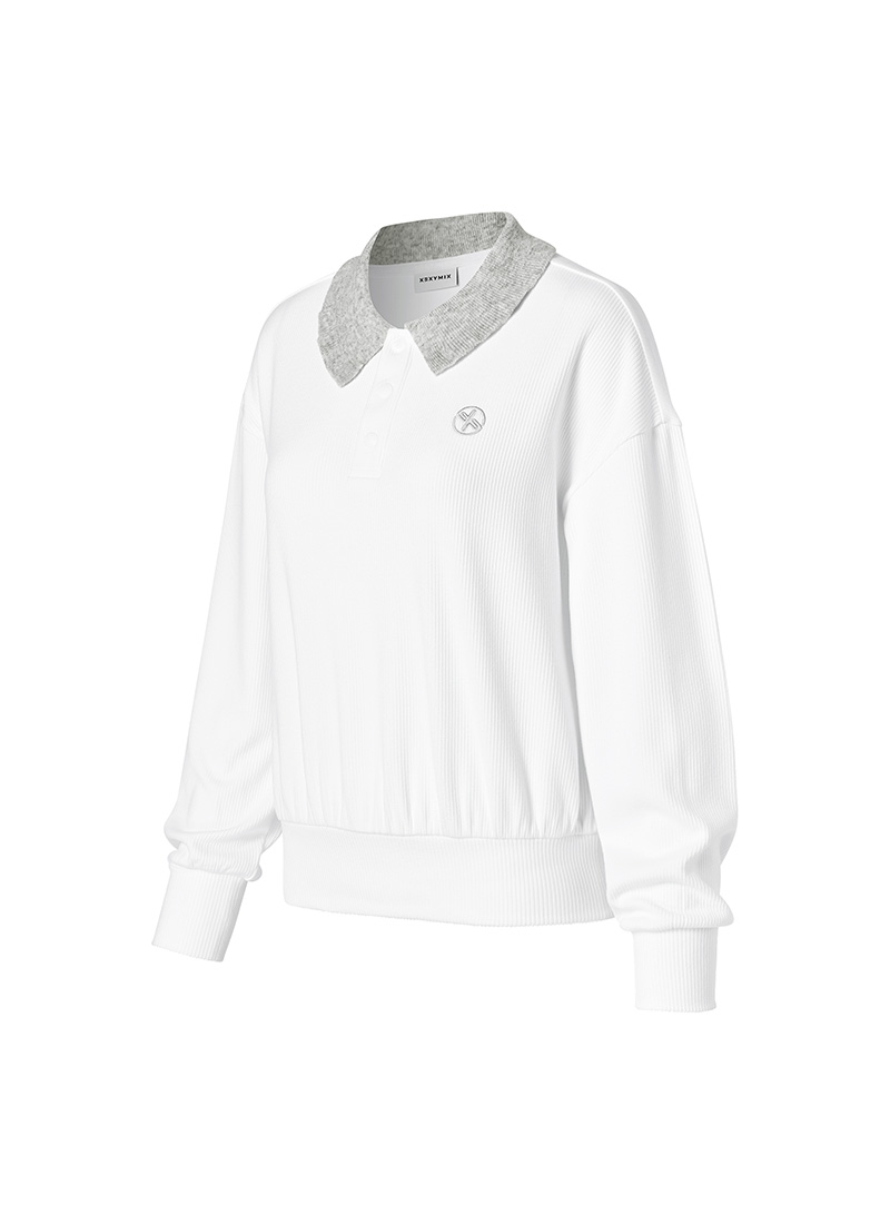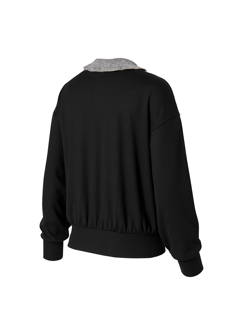XFK3QL1202 Ribbed Ruffle Collar Long Sleeve TOP