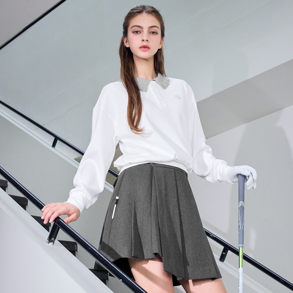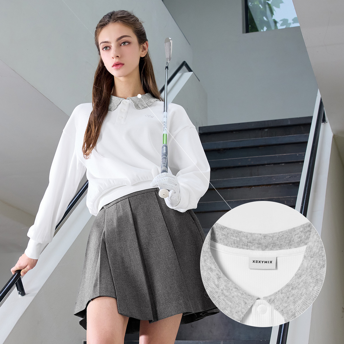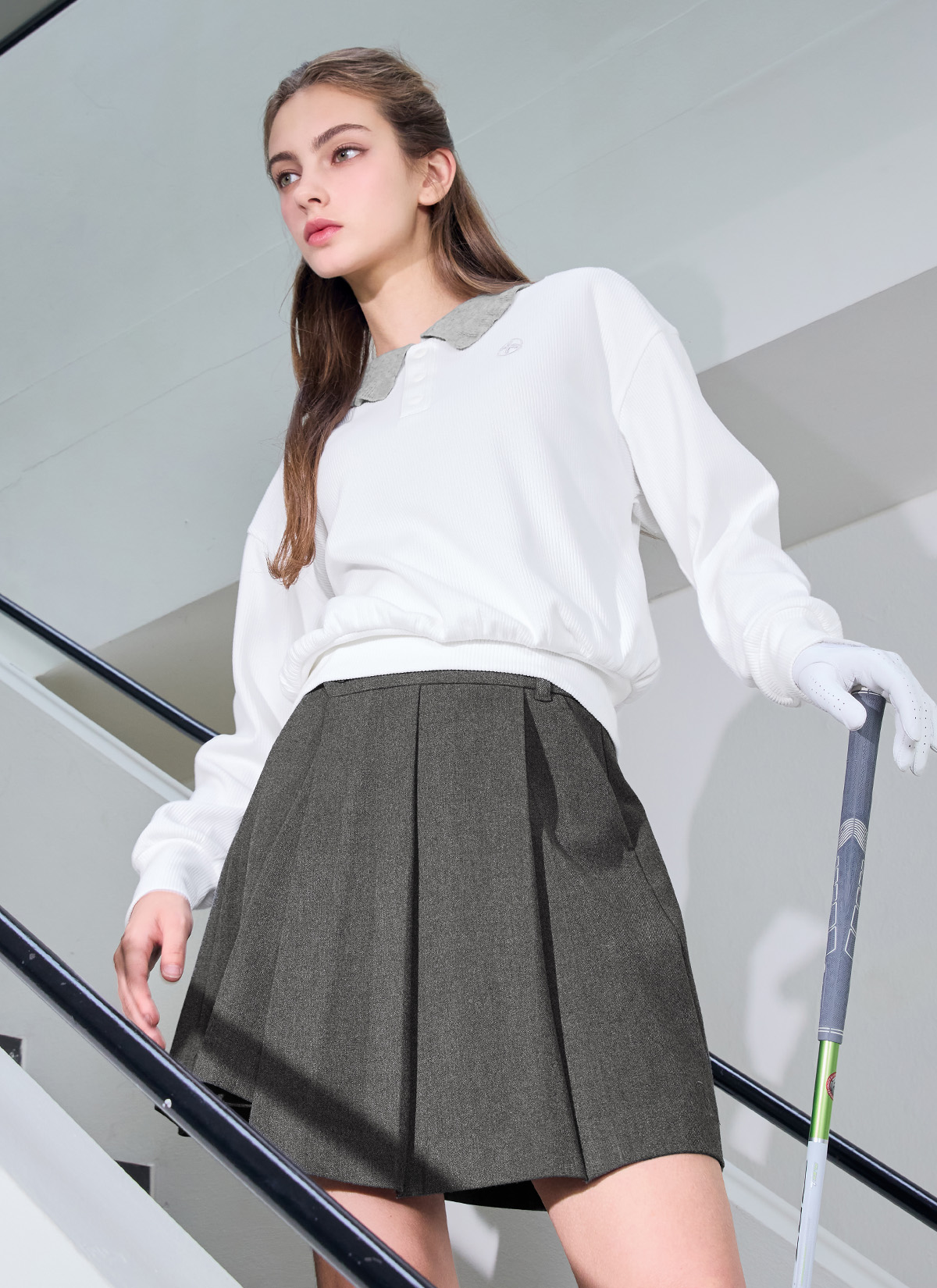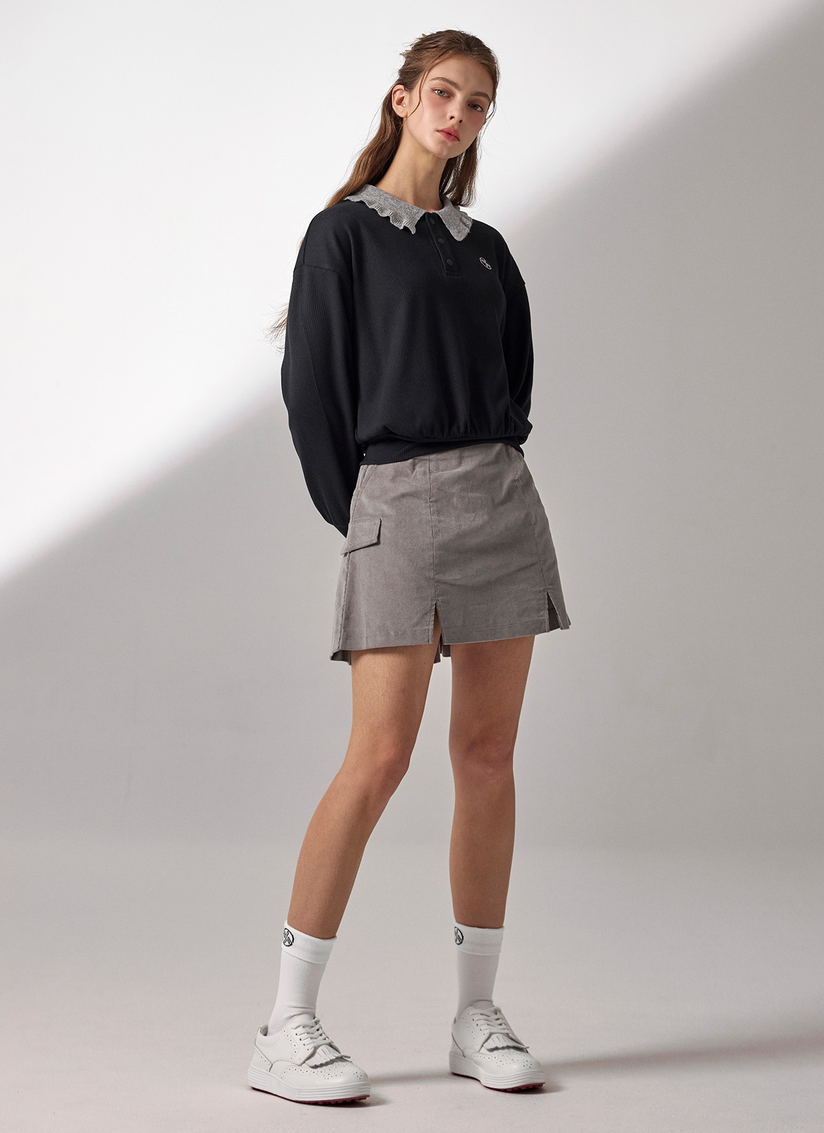 XFK3QL1202 Ribbed Ruffle Collar Long Sleeve TOP