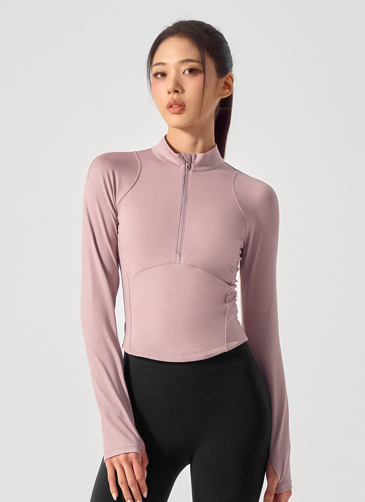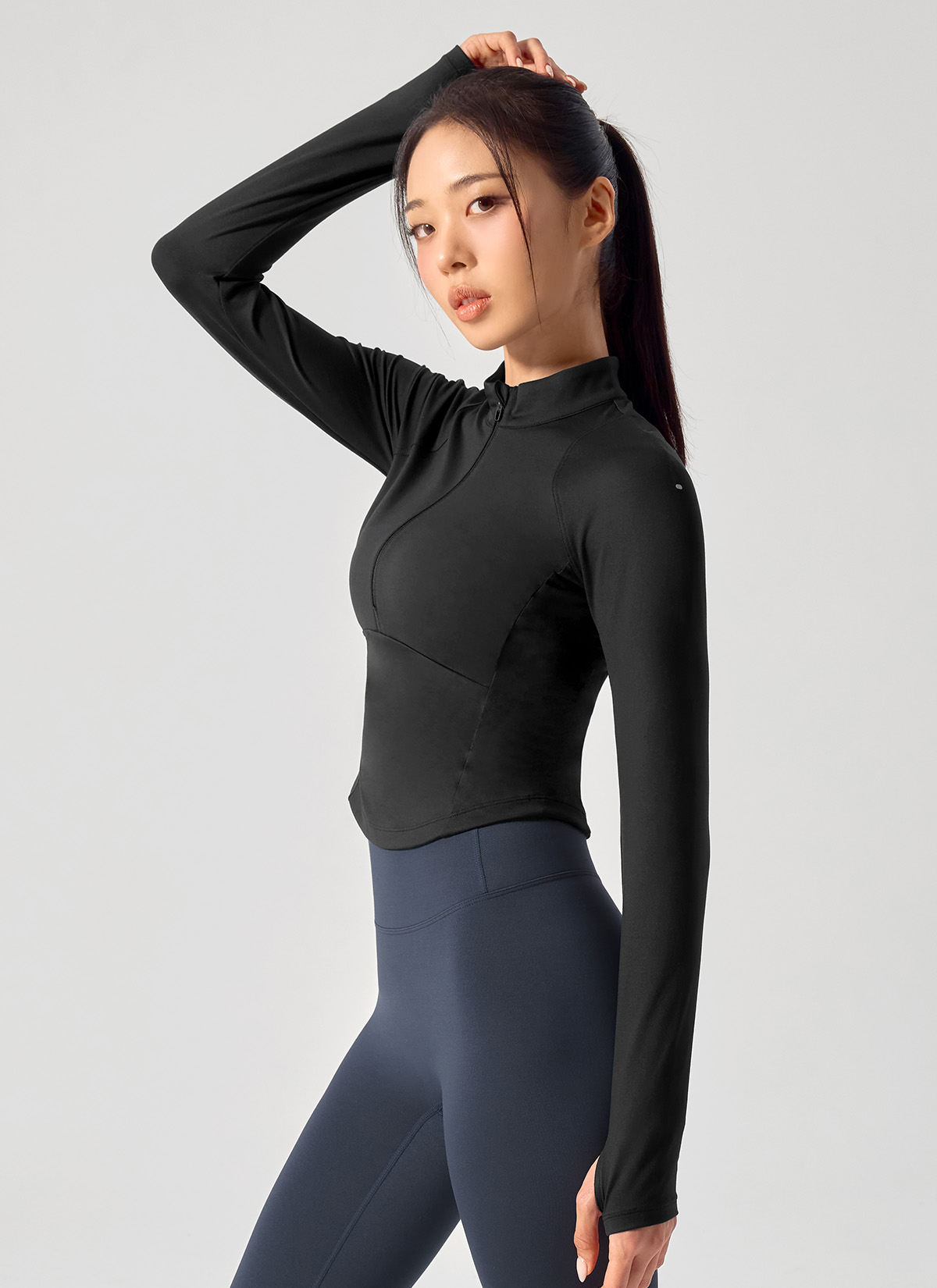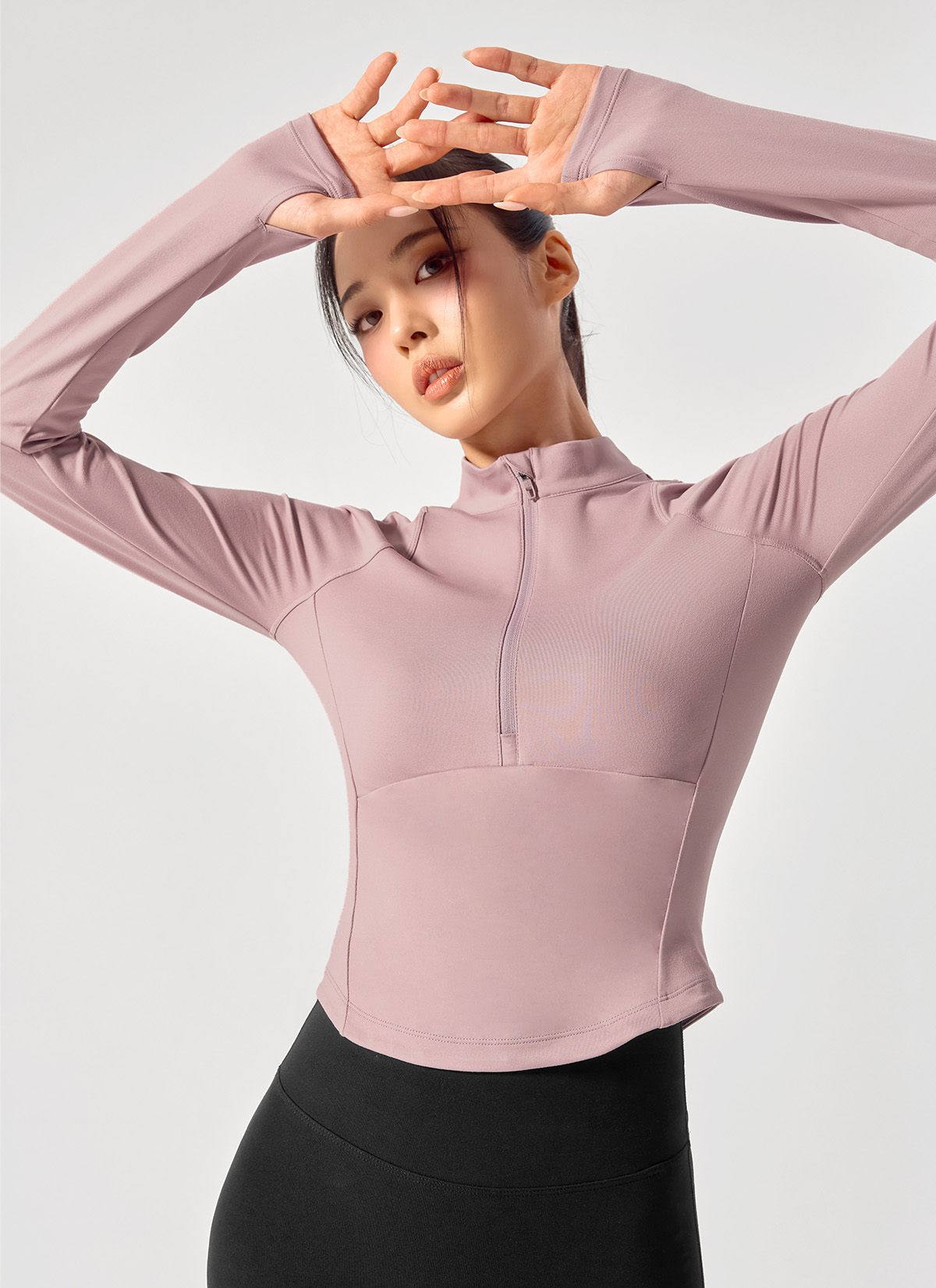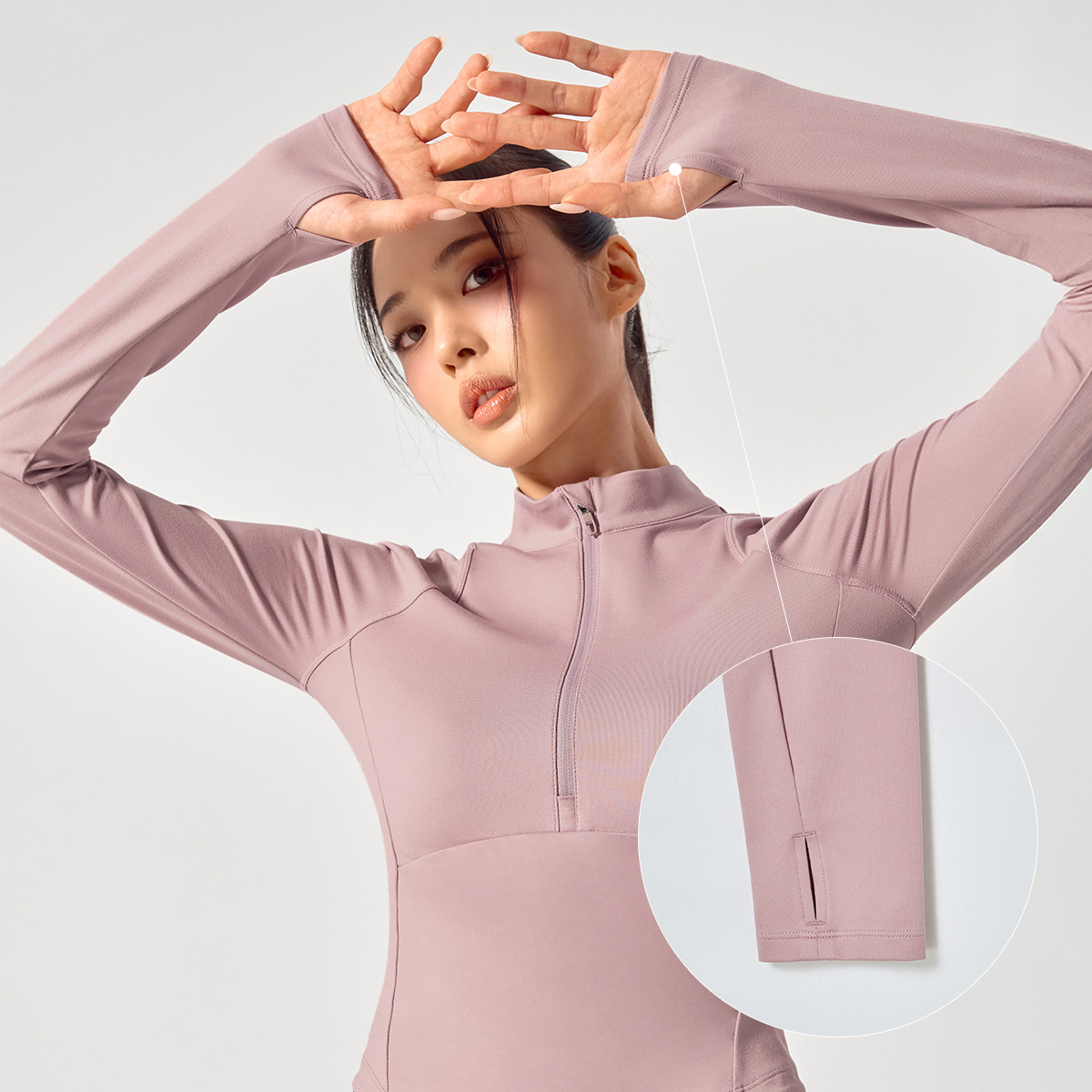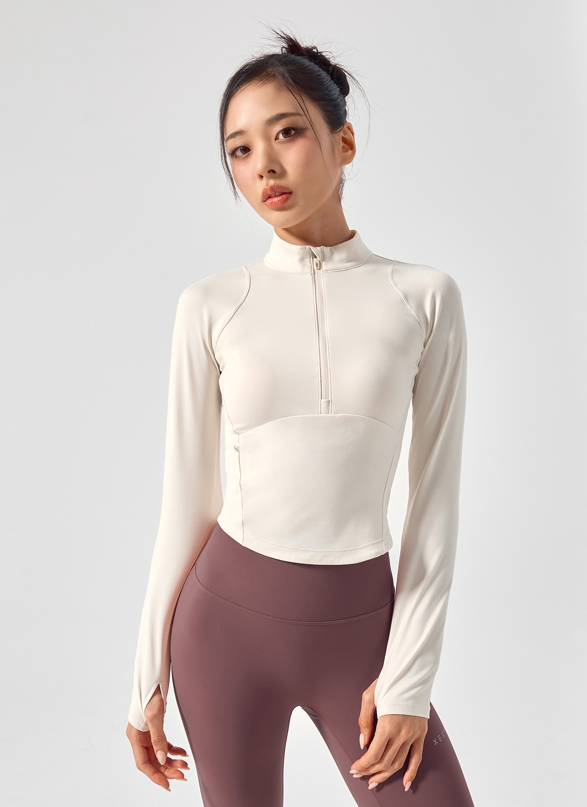 XFK3TL1008 Soft Finger-Hole Half-Zip Long Sleeve TOP