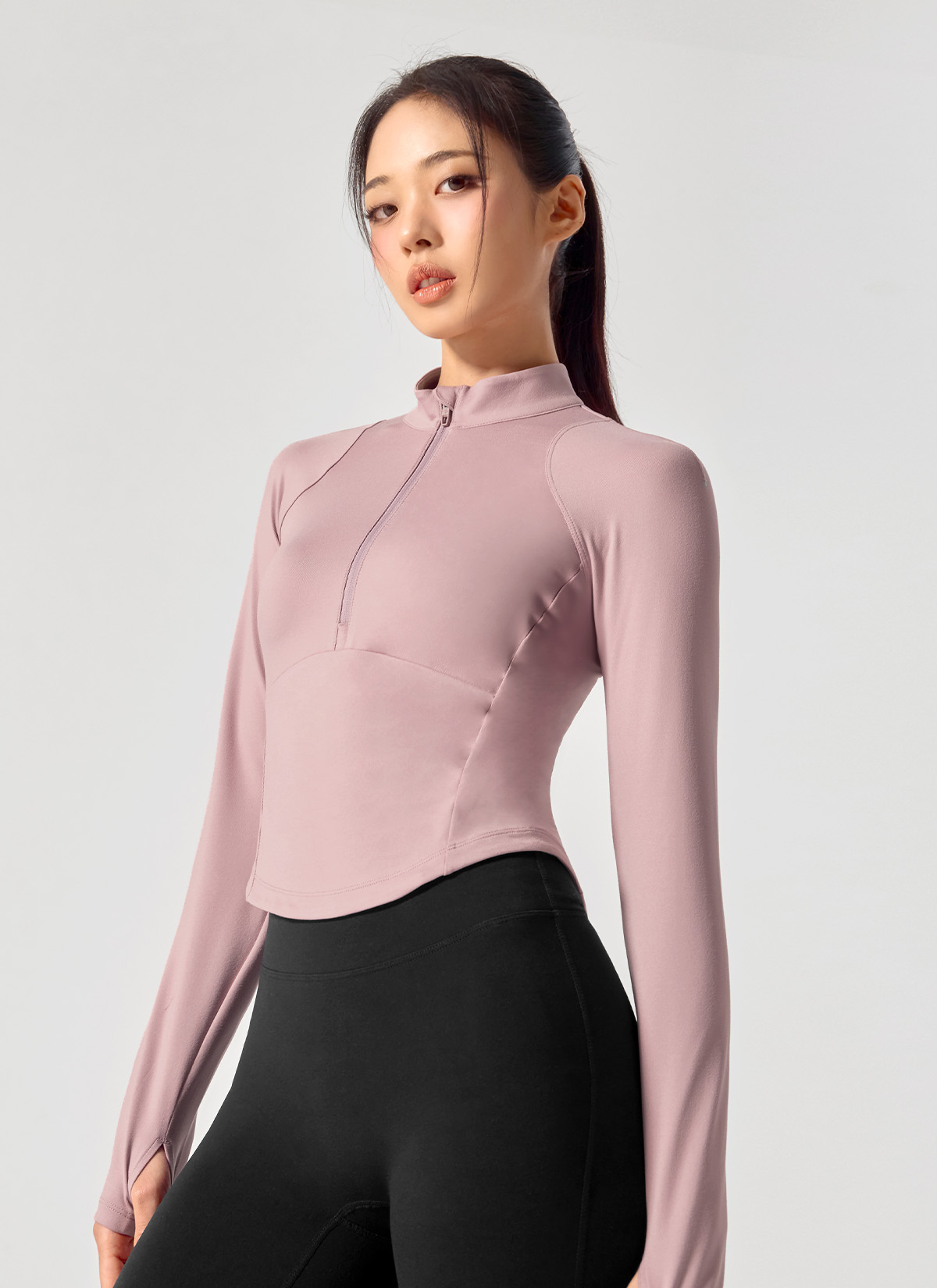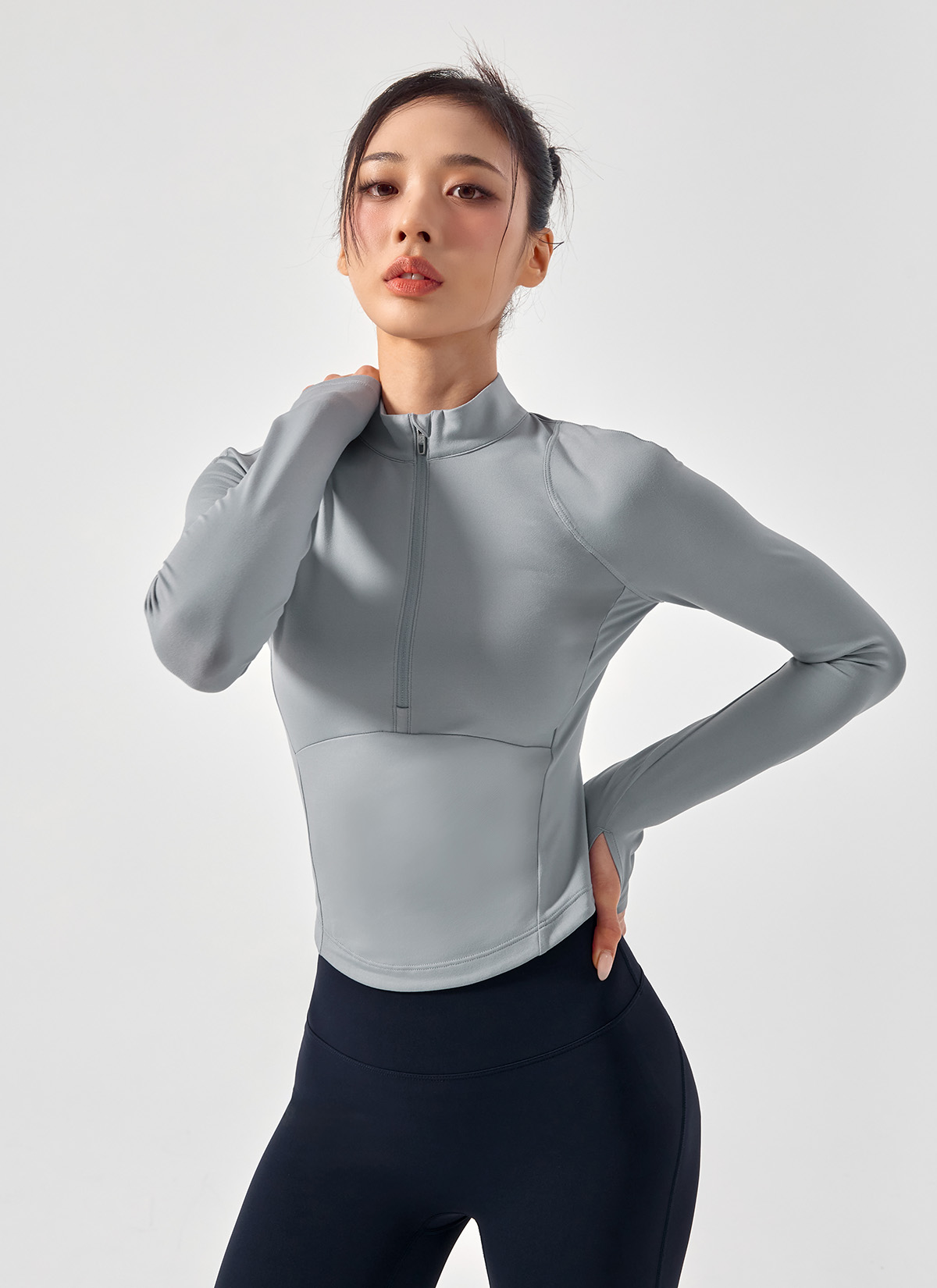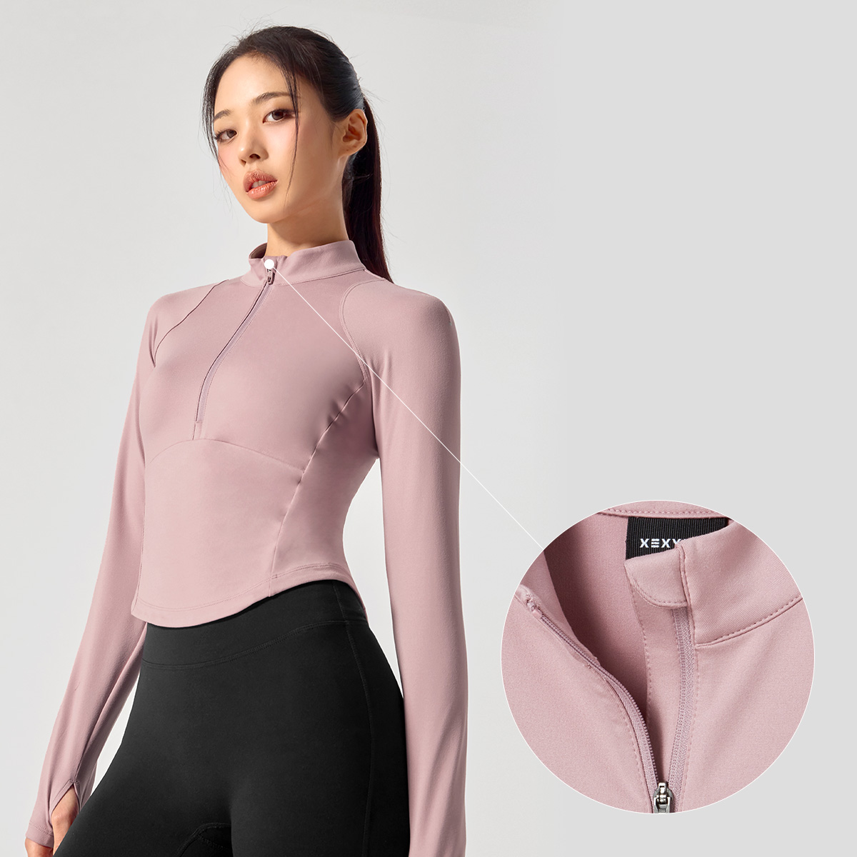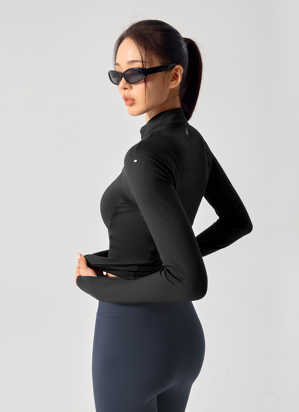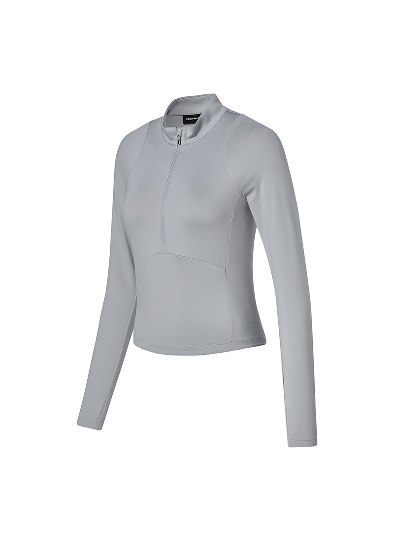 XFK3TL1008 Soft Finger-Hole Half-Zip Long Sleeve TOP