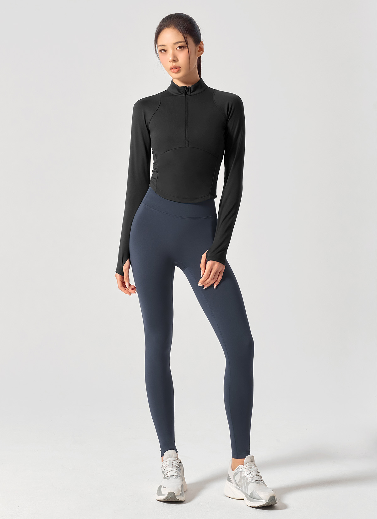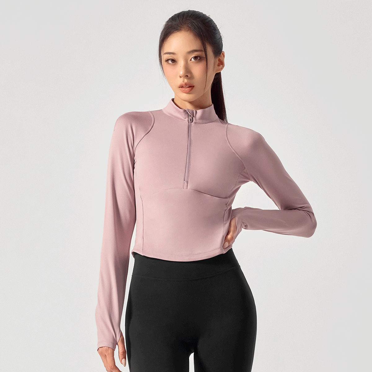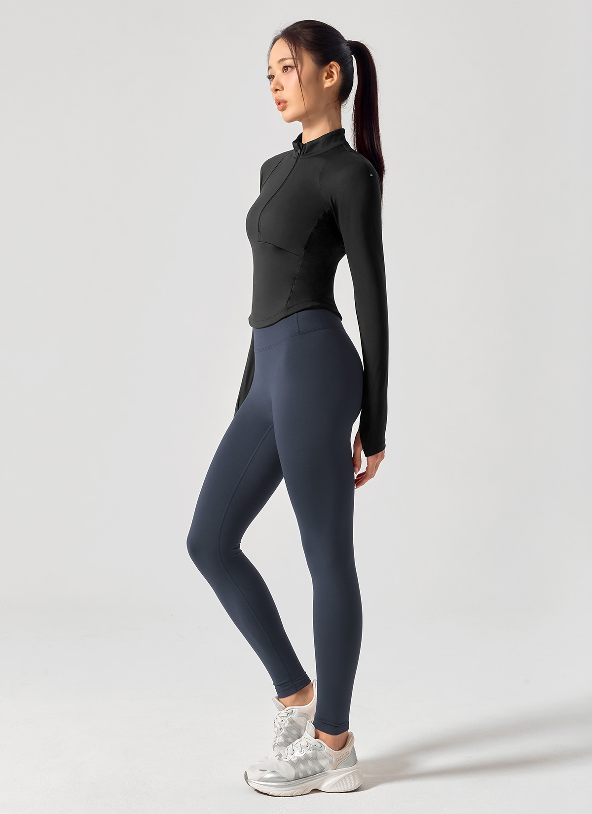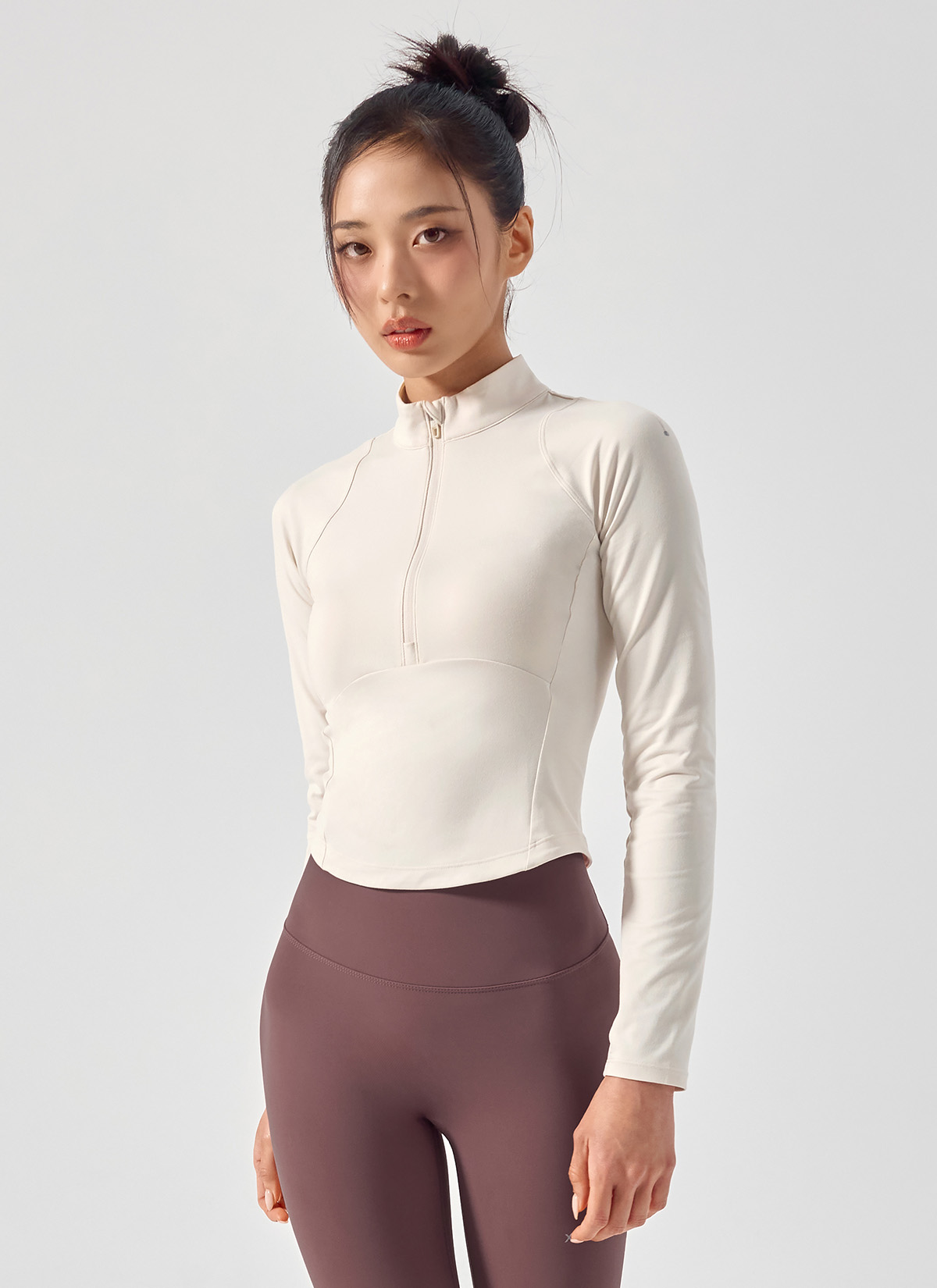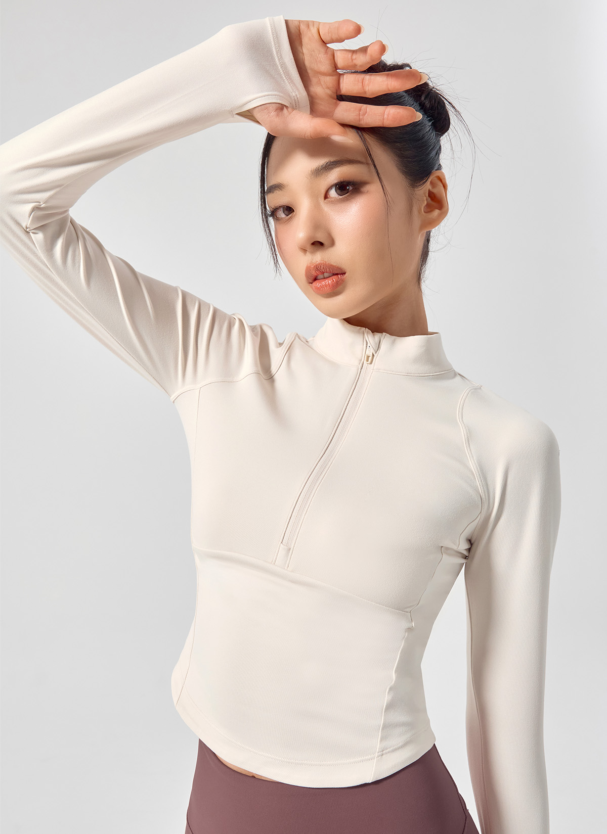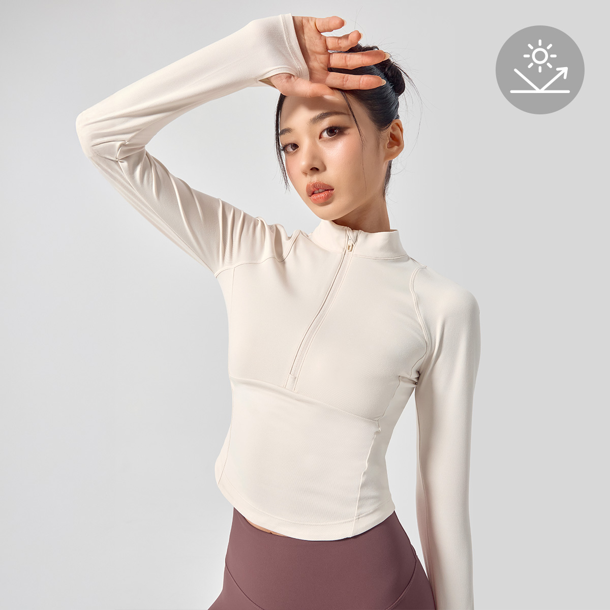 XFK3TL1008 Soft Finger-Hole Half-Zip Long Sleeve TOP