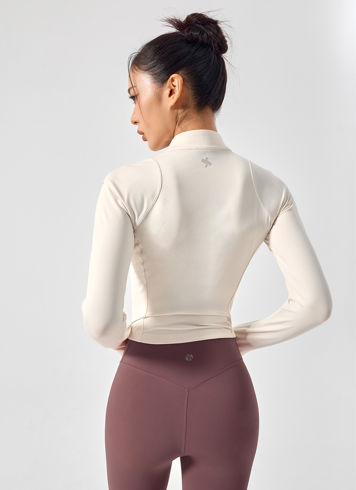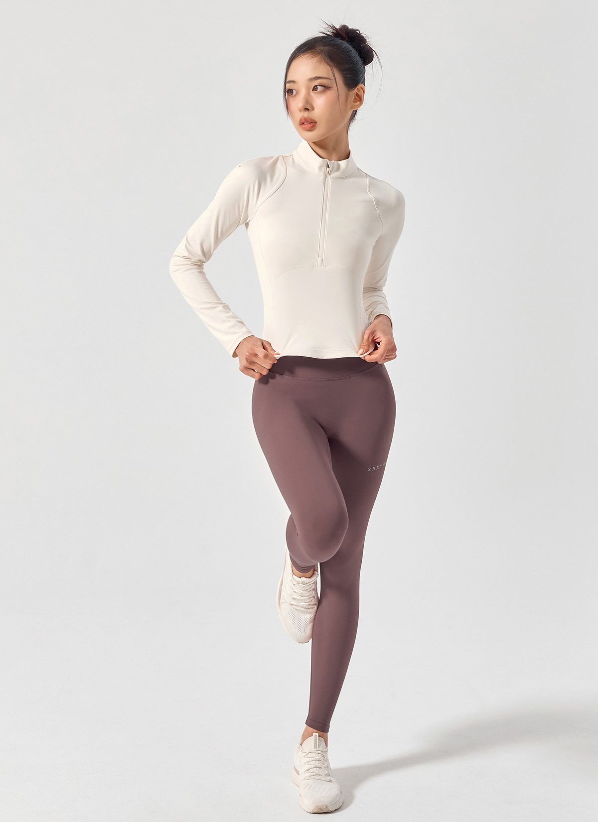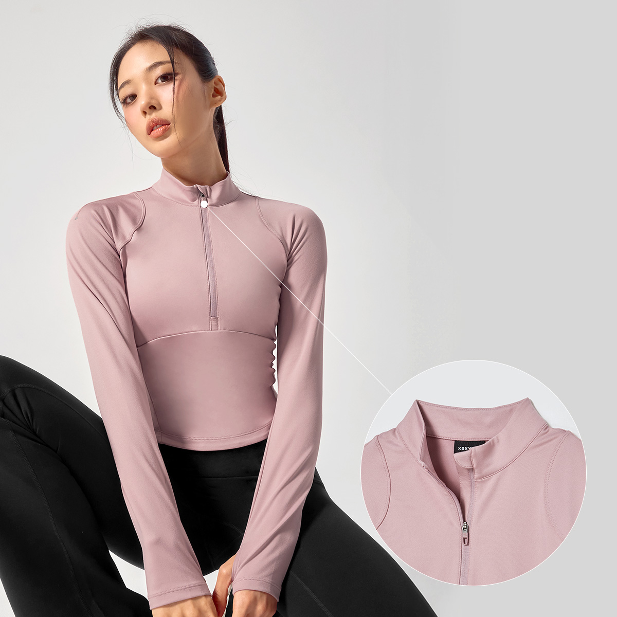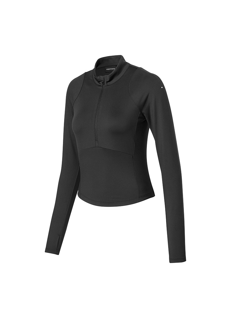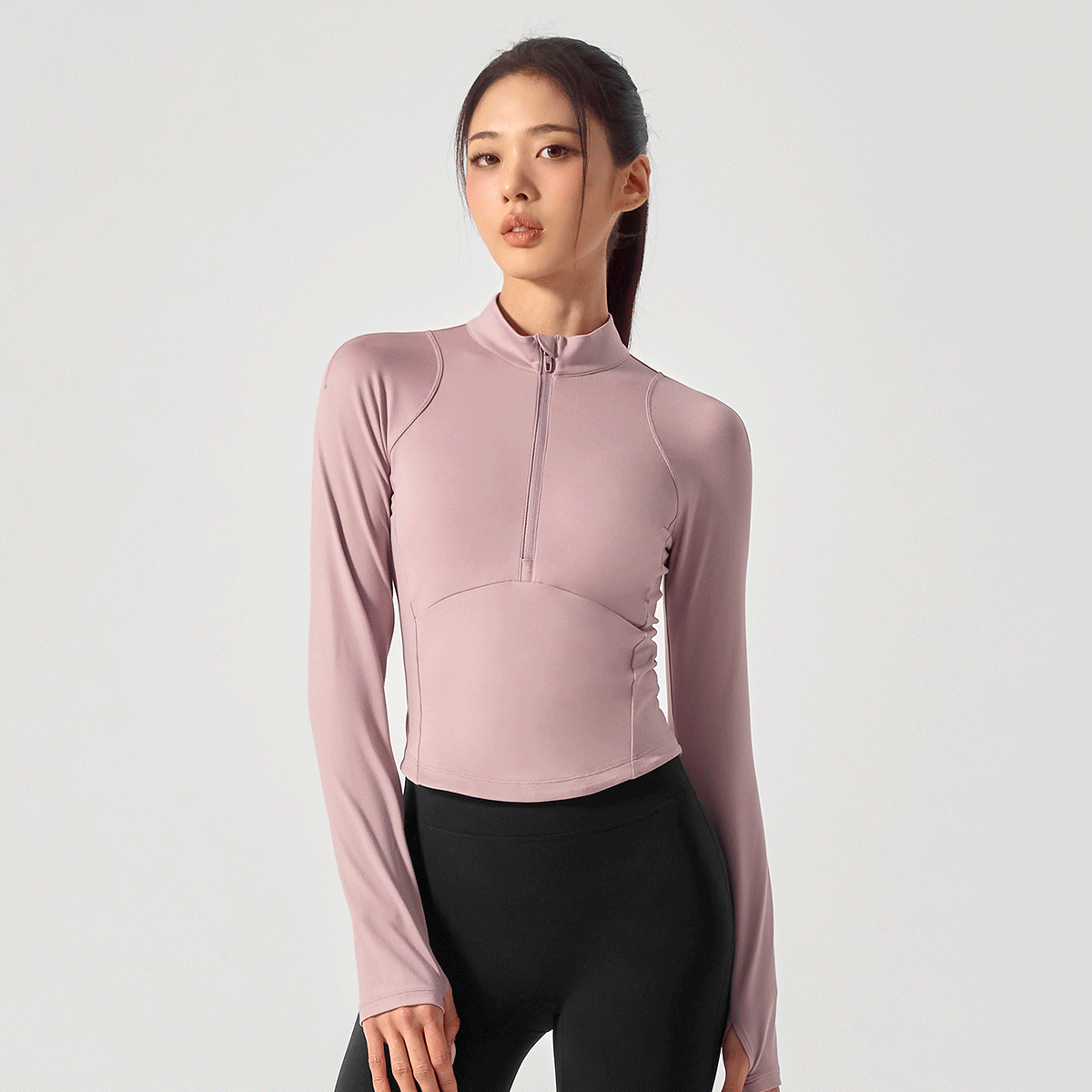 XFK3TL1008 Soft Finger-Hole Half-Zip Long Sleeve TOP