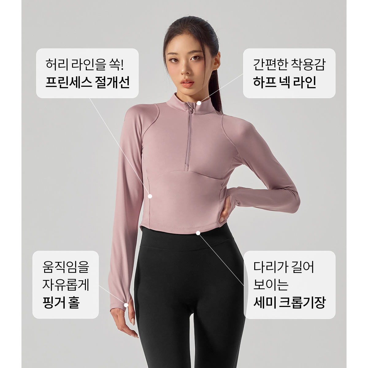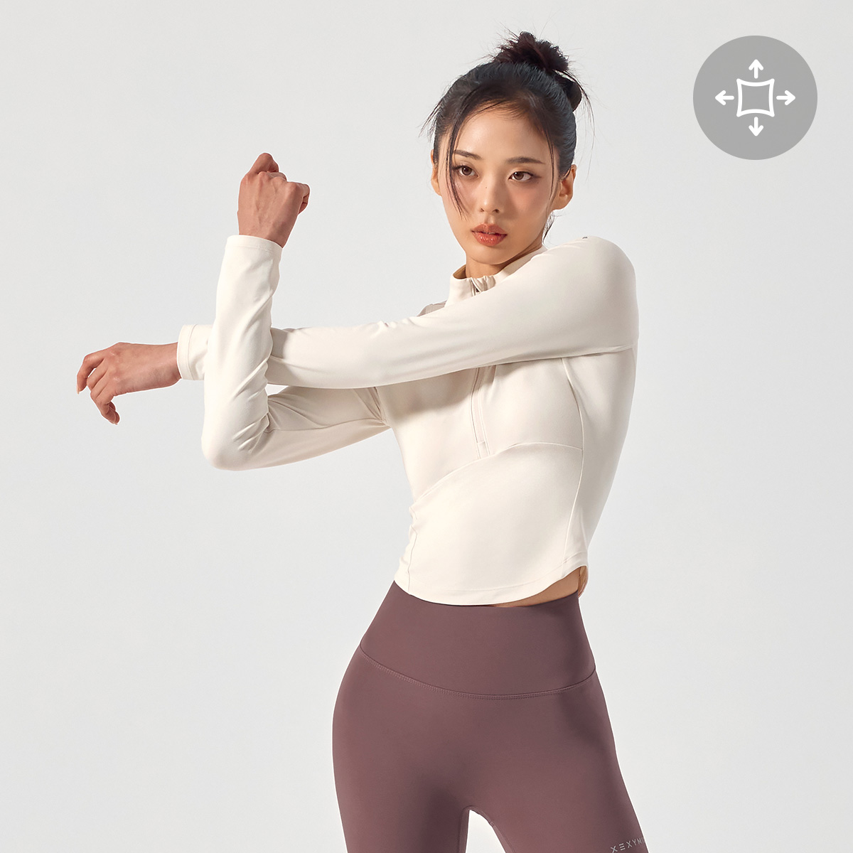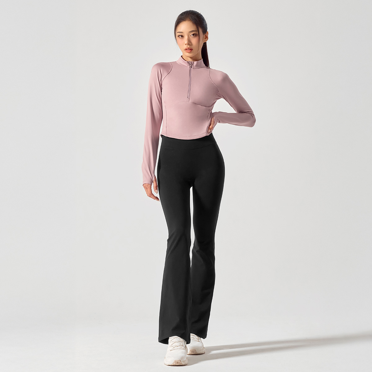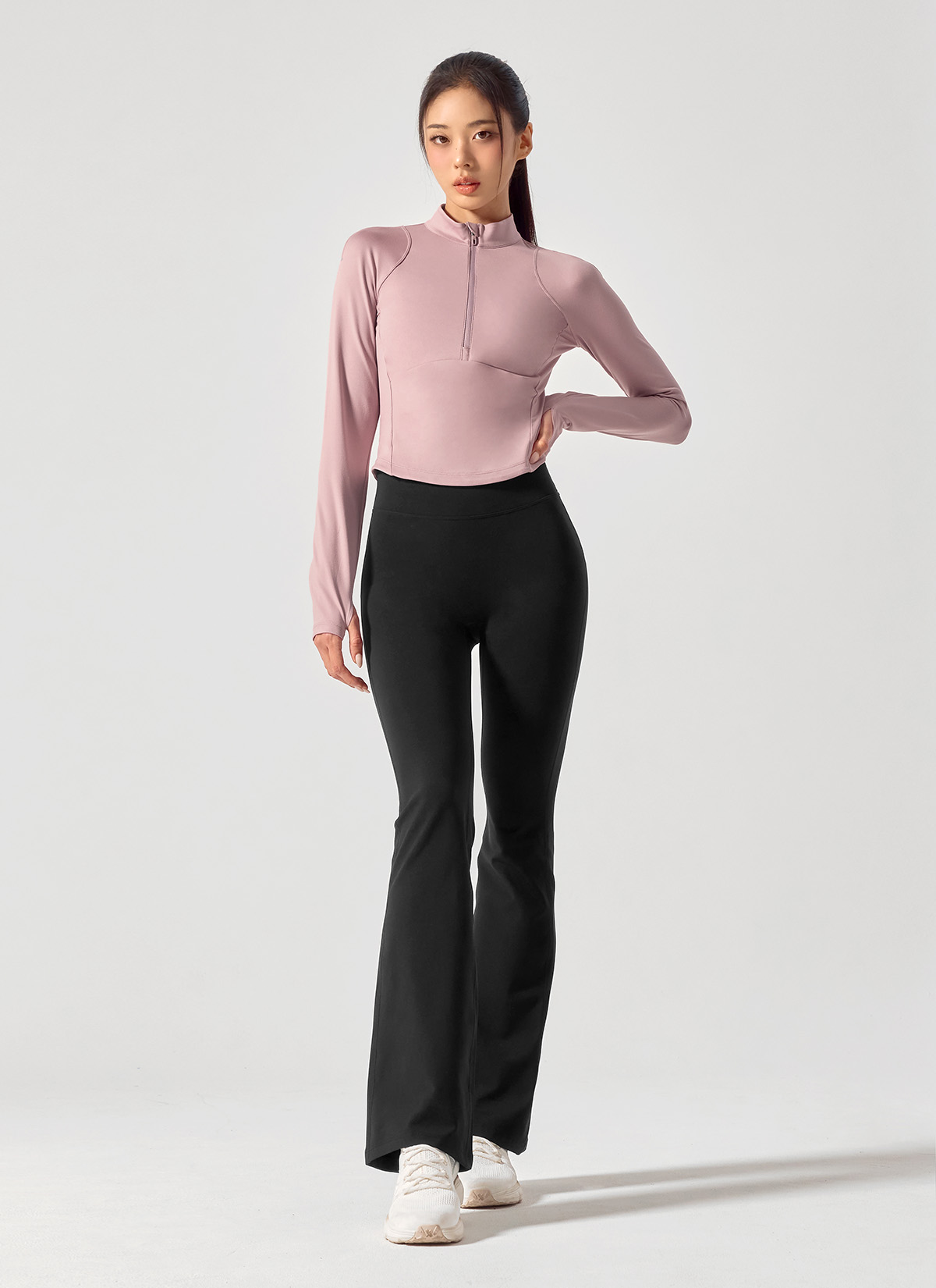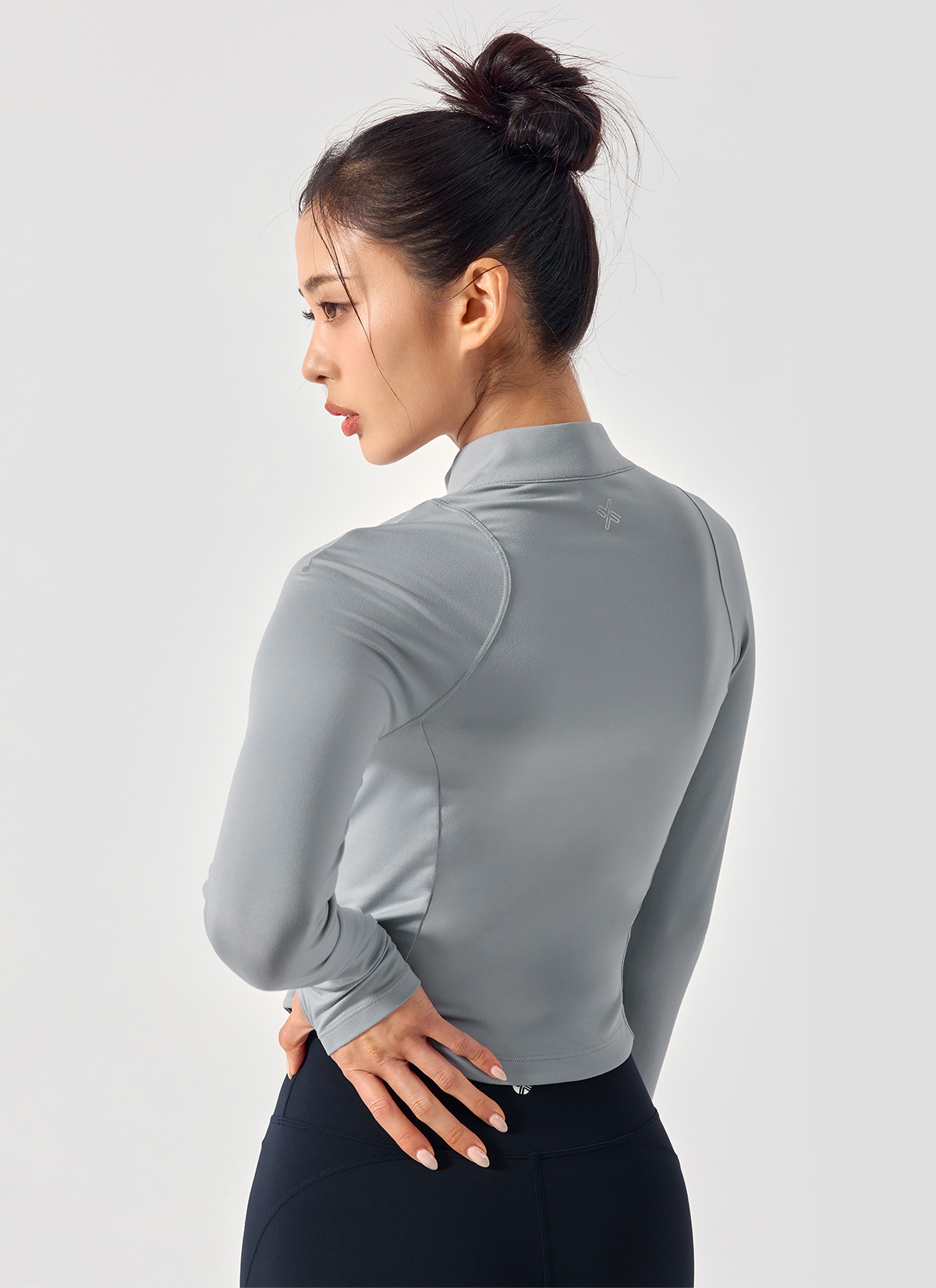 XFK3TL1008 Soft Finger-Hole Half-Zip Long Sleeve TOP