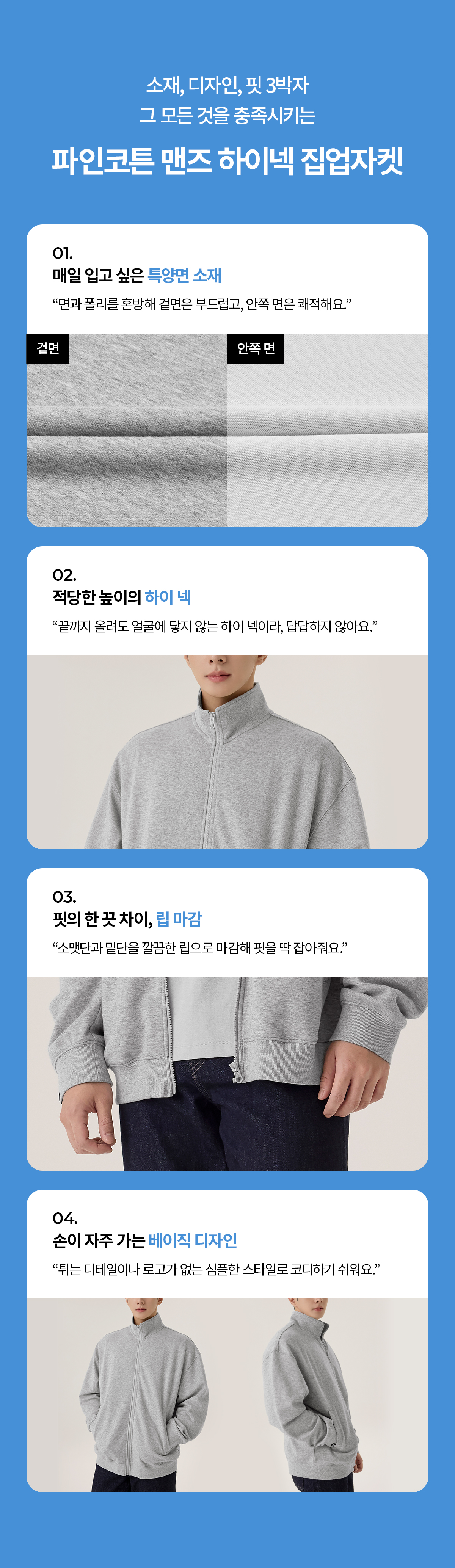 XMK3TC1105 Fine Cotton Men’s High-Neck Zip-Up Jacket BOTTOM