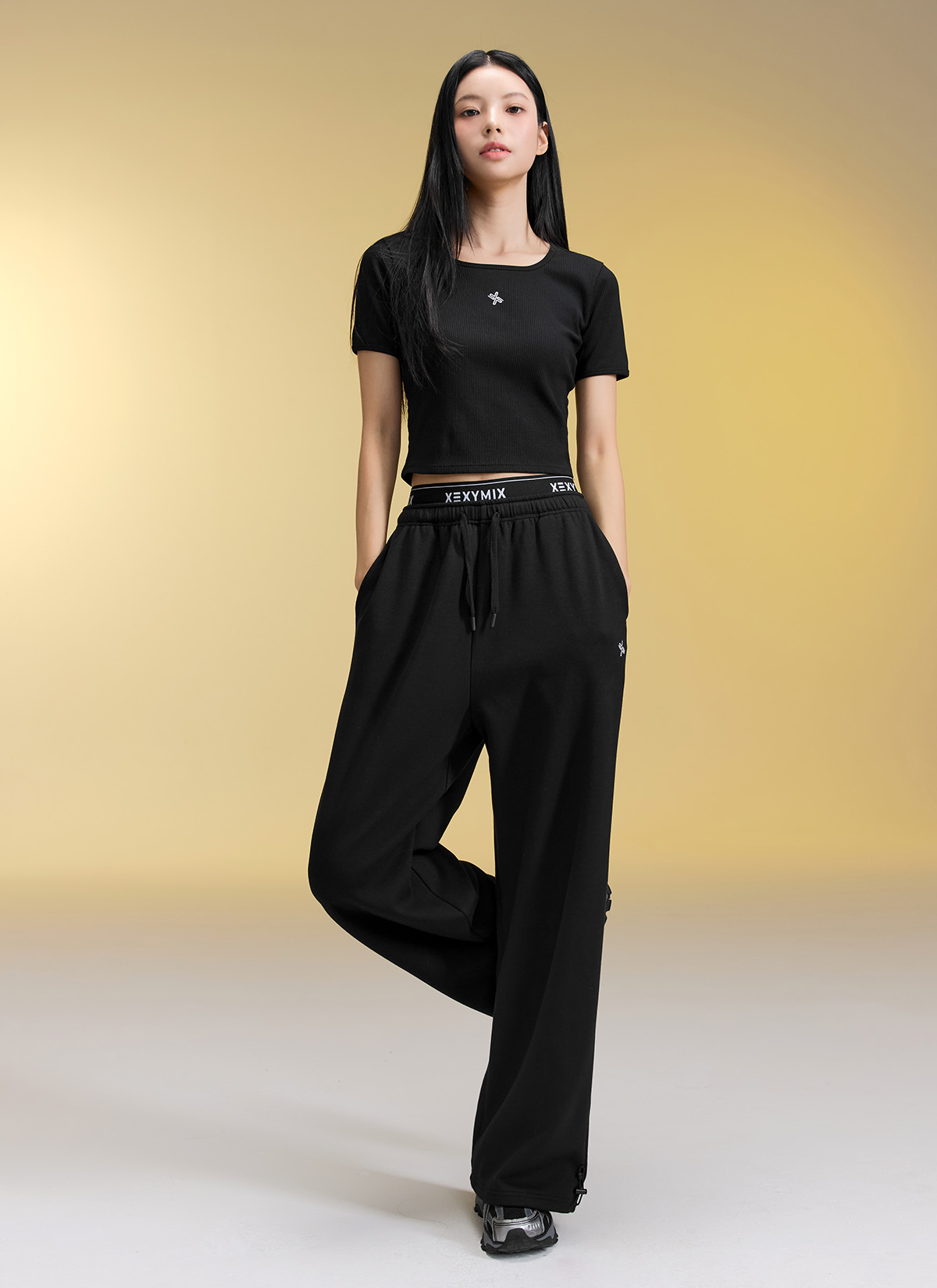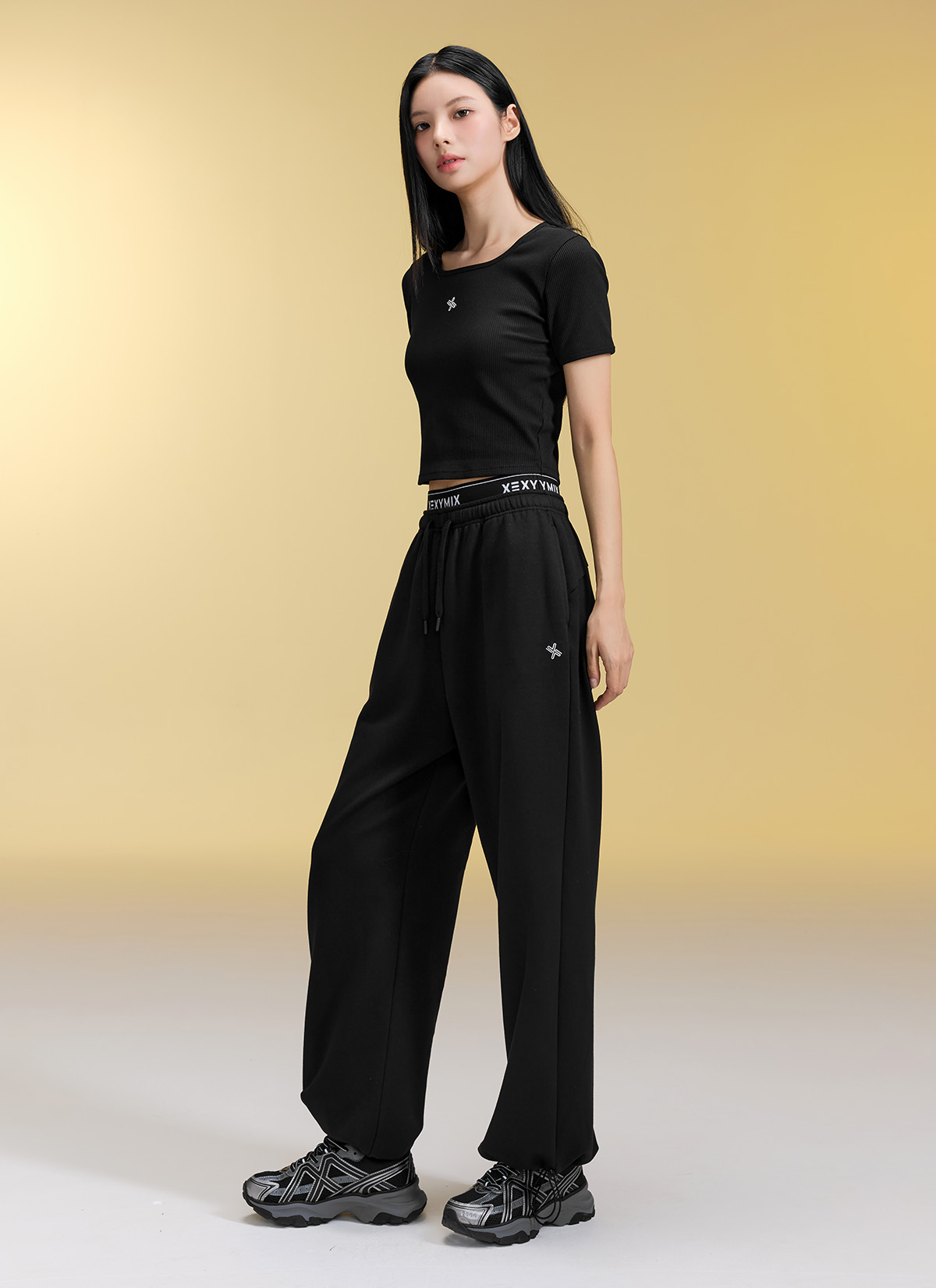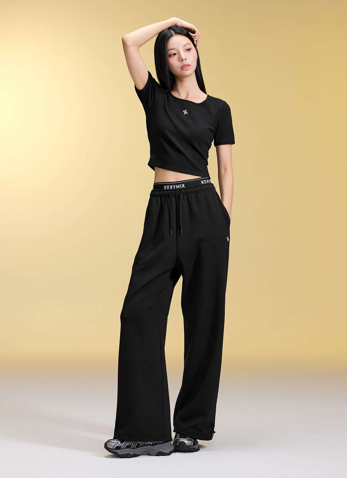 XFK4PT1103 Logo banding layered Napping Wide Pants bottom