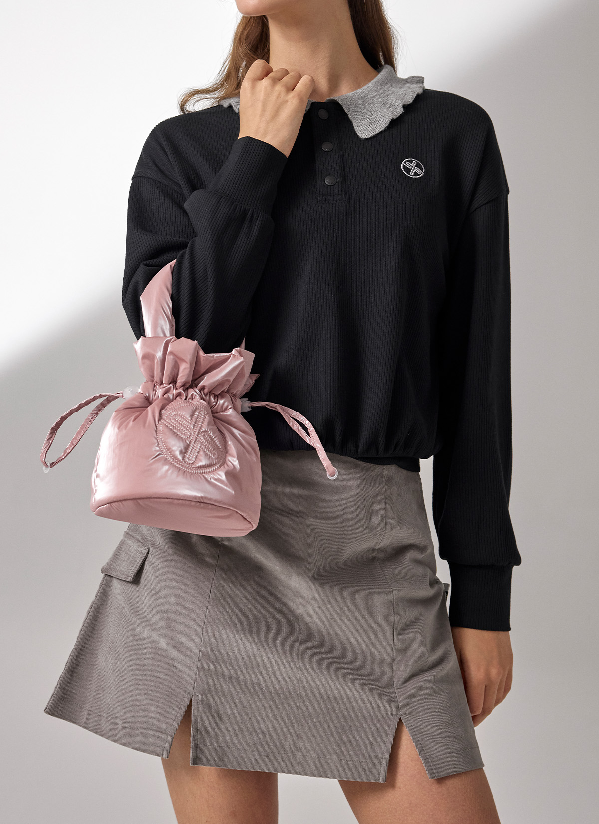 XUK4AB1701 Glossy Padded Bucket Bag