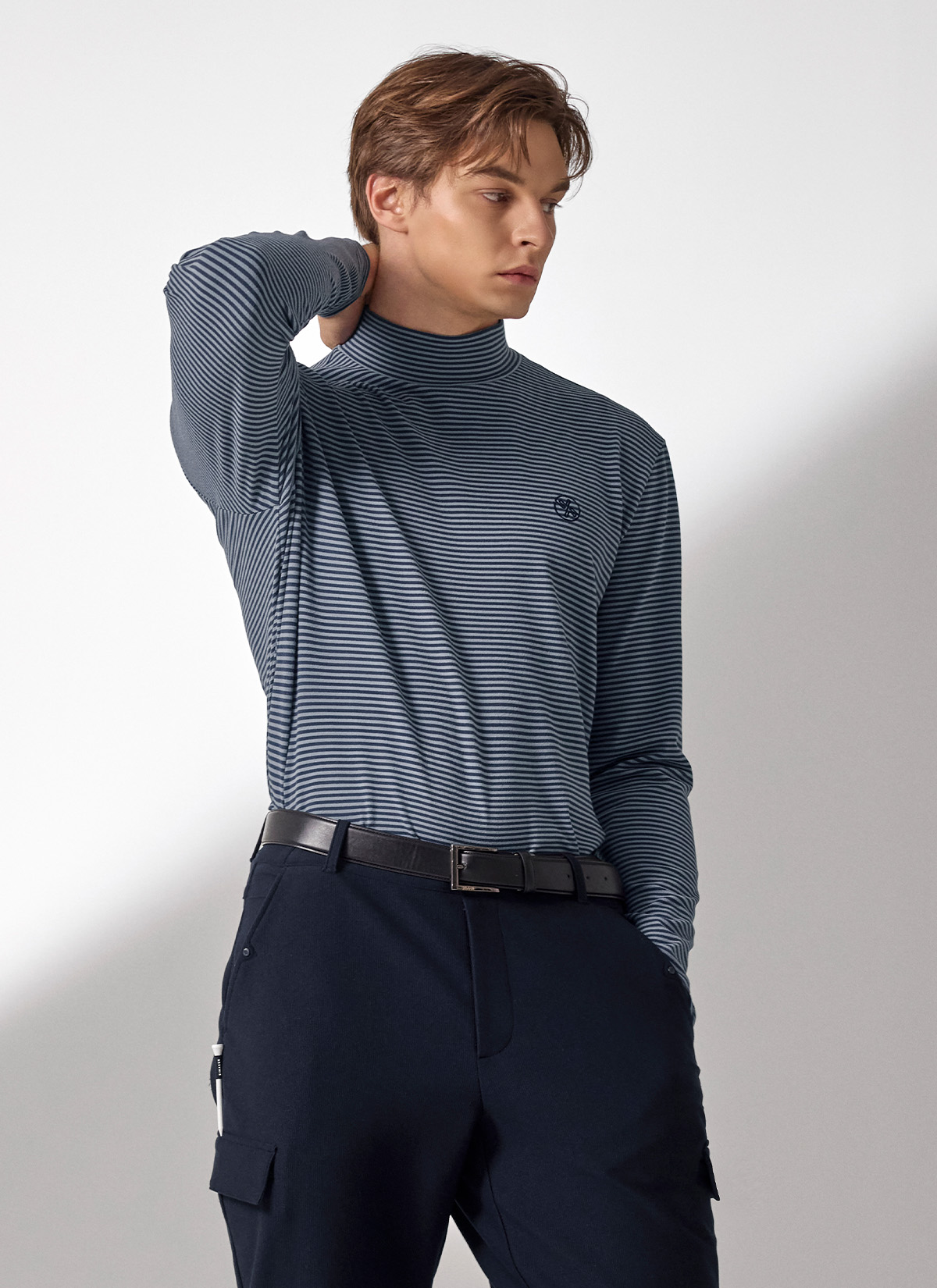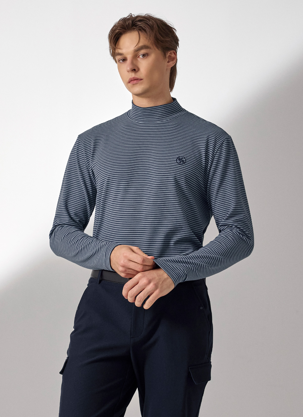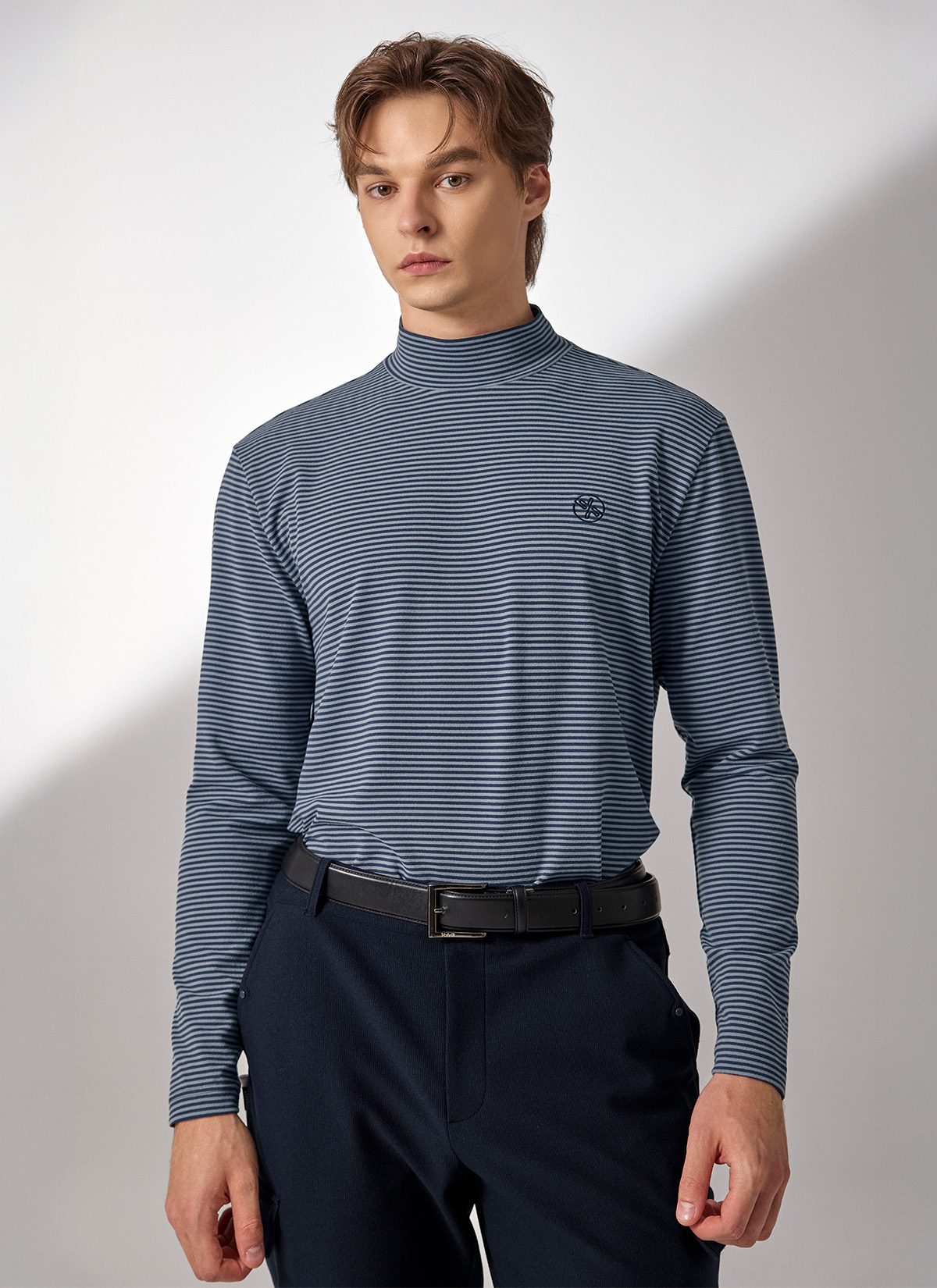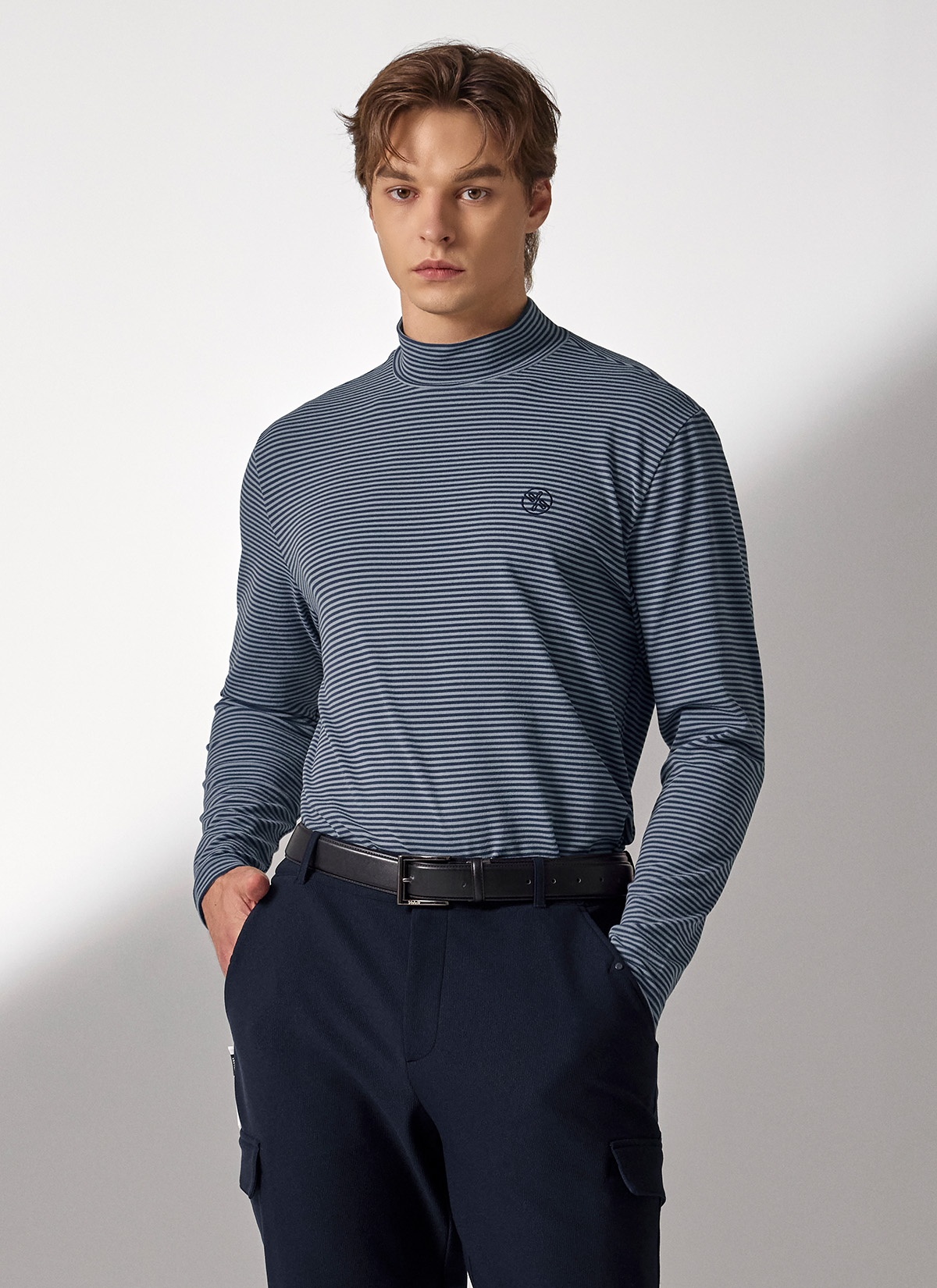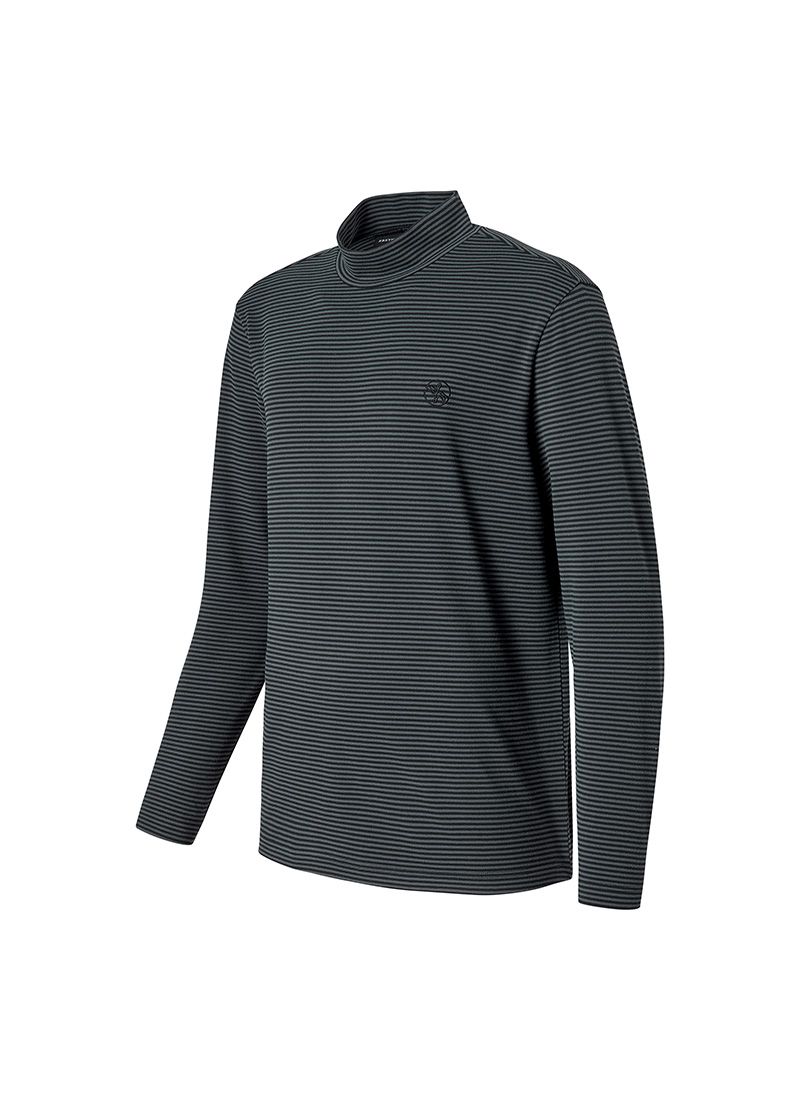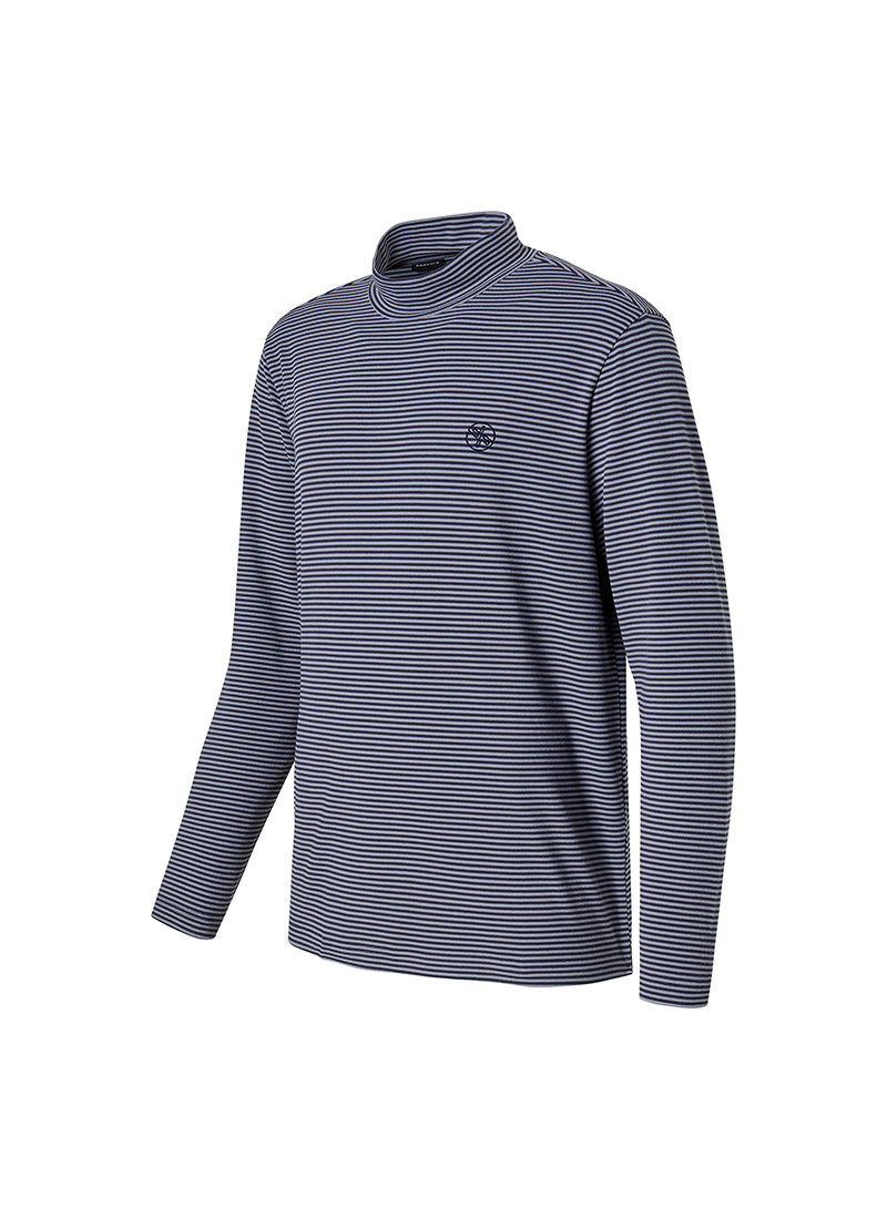 XMK3TU1203 Stripe Men's Mock Neck Long TOP