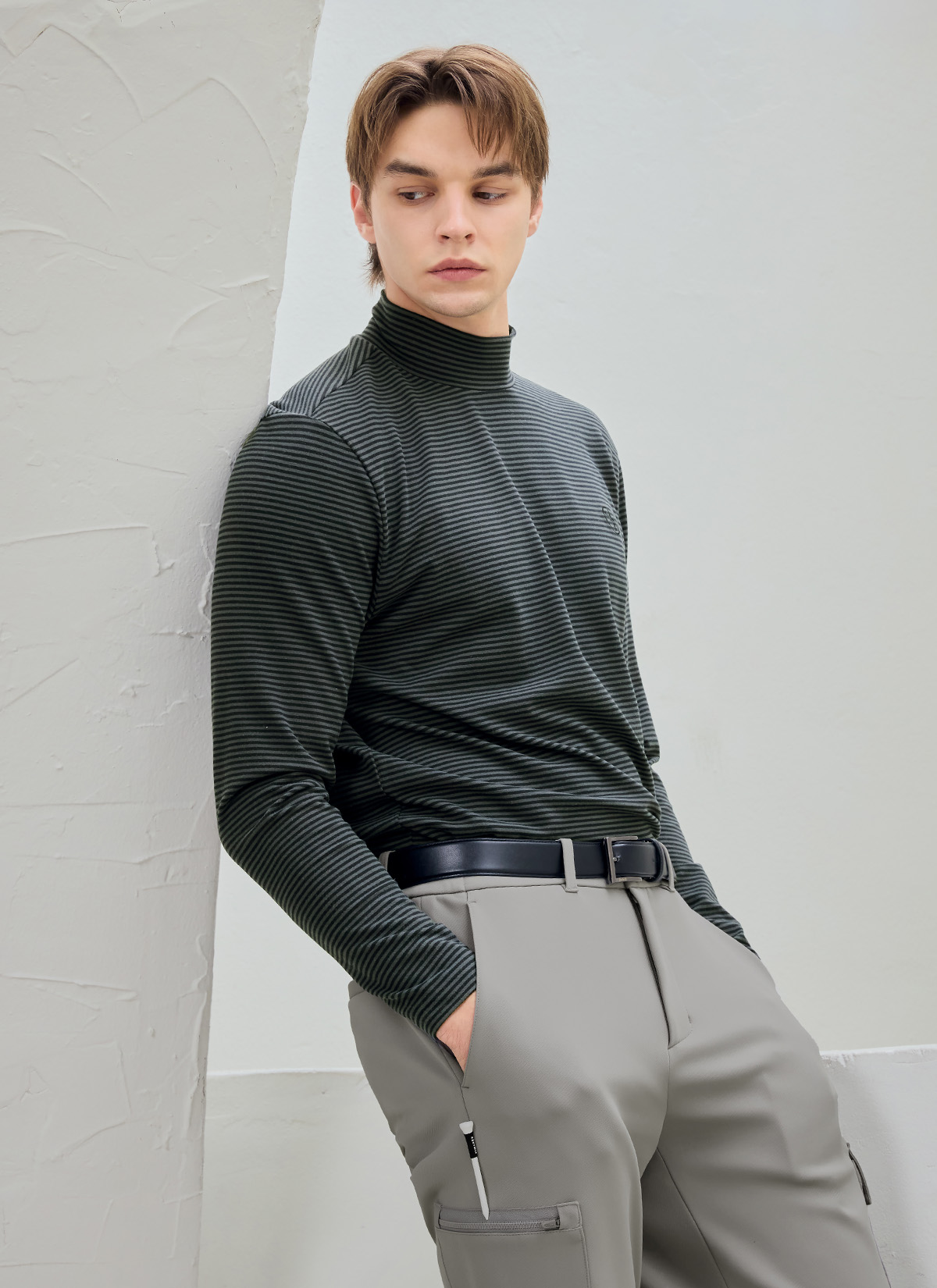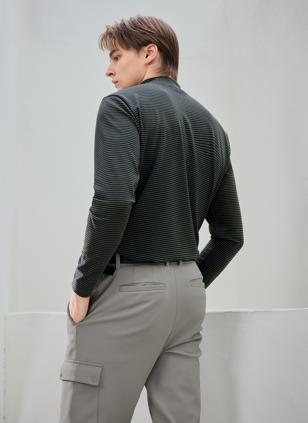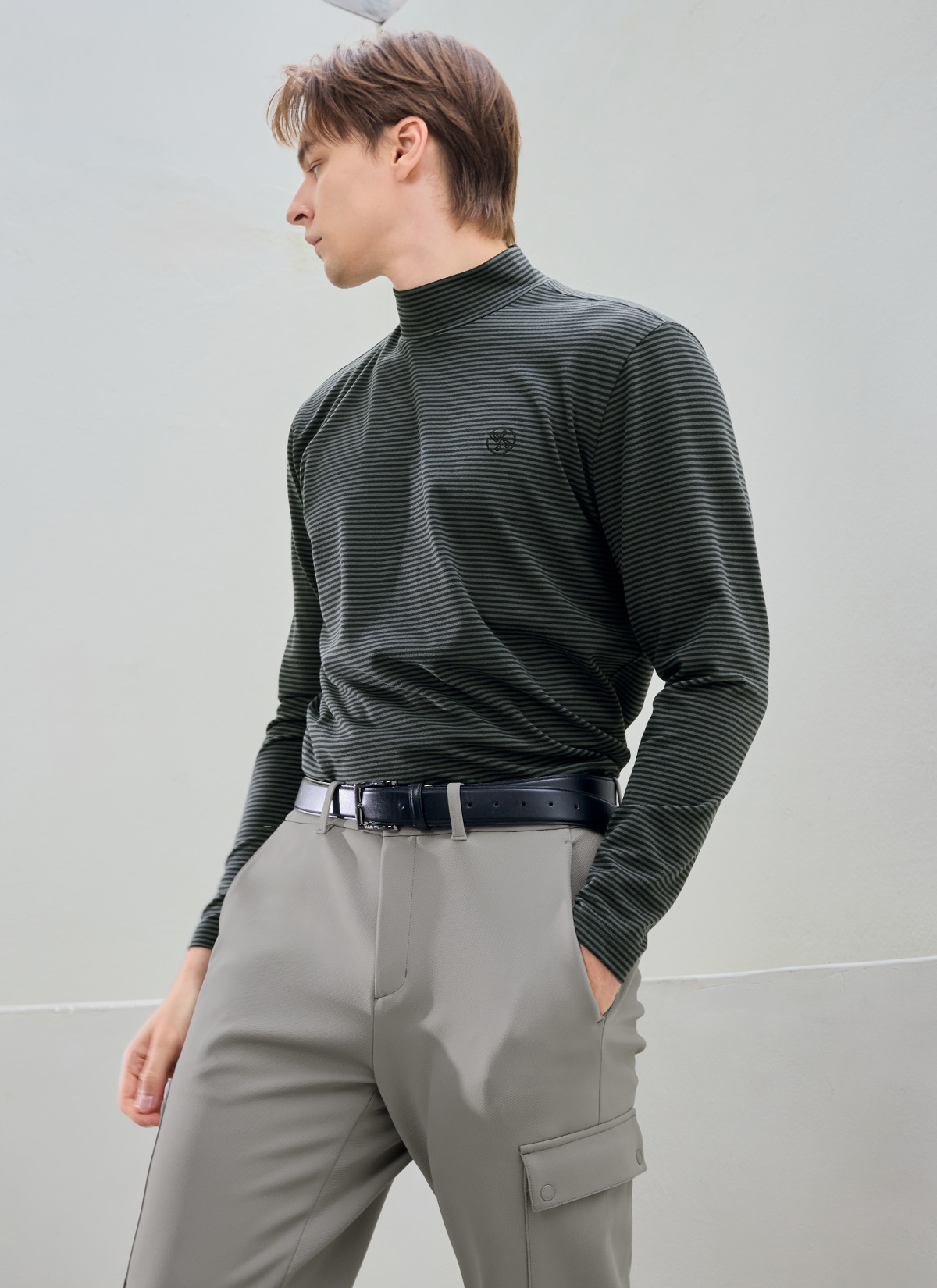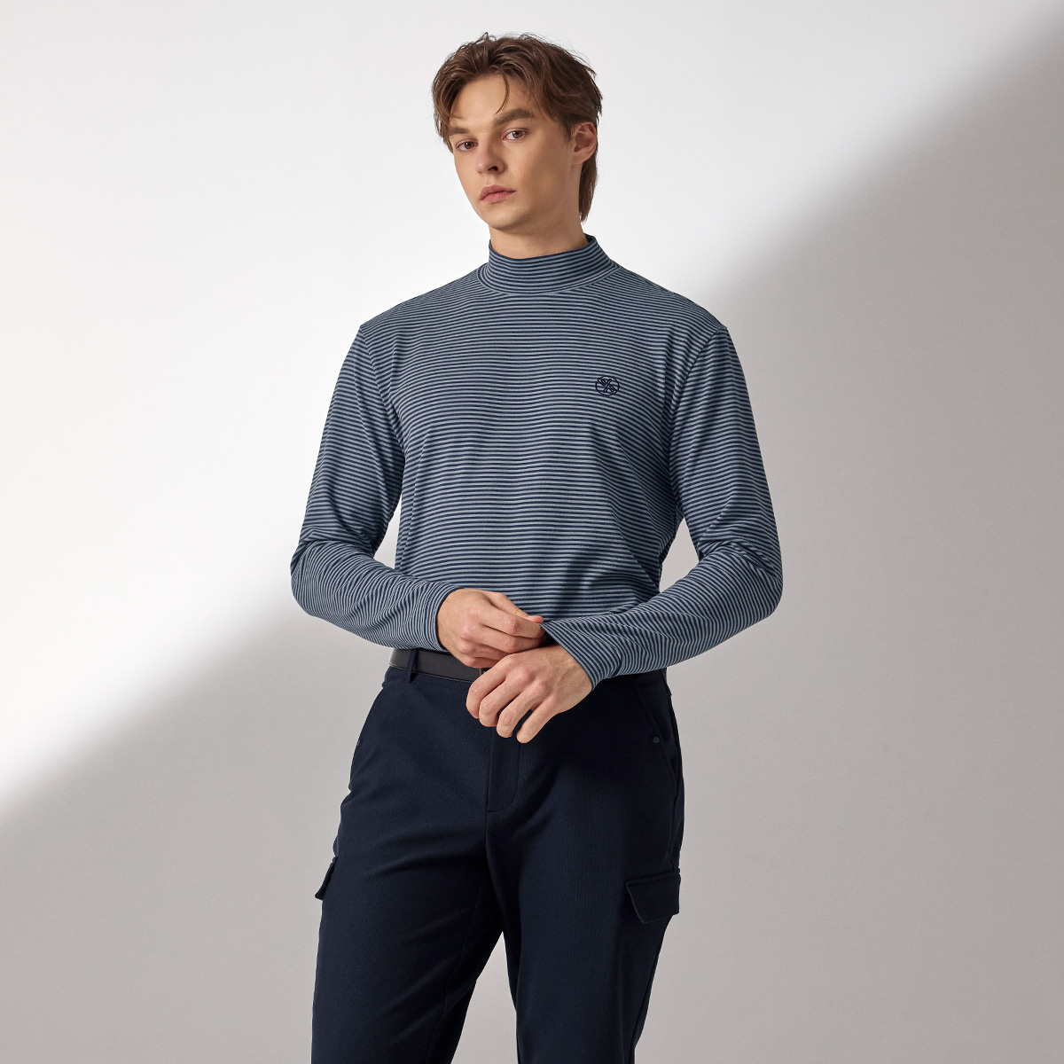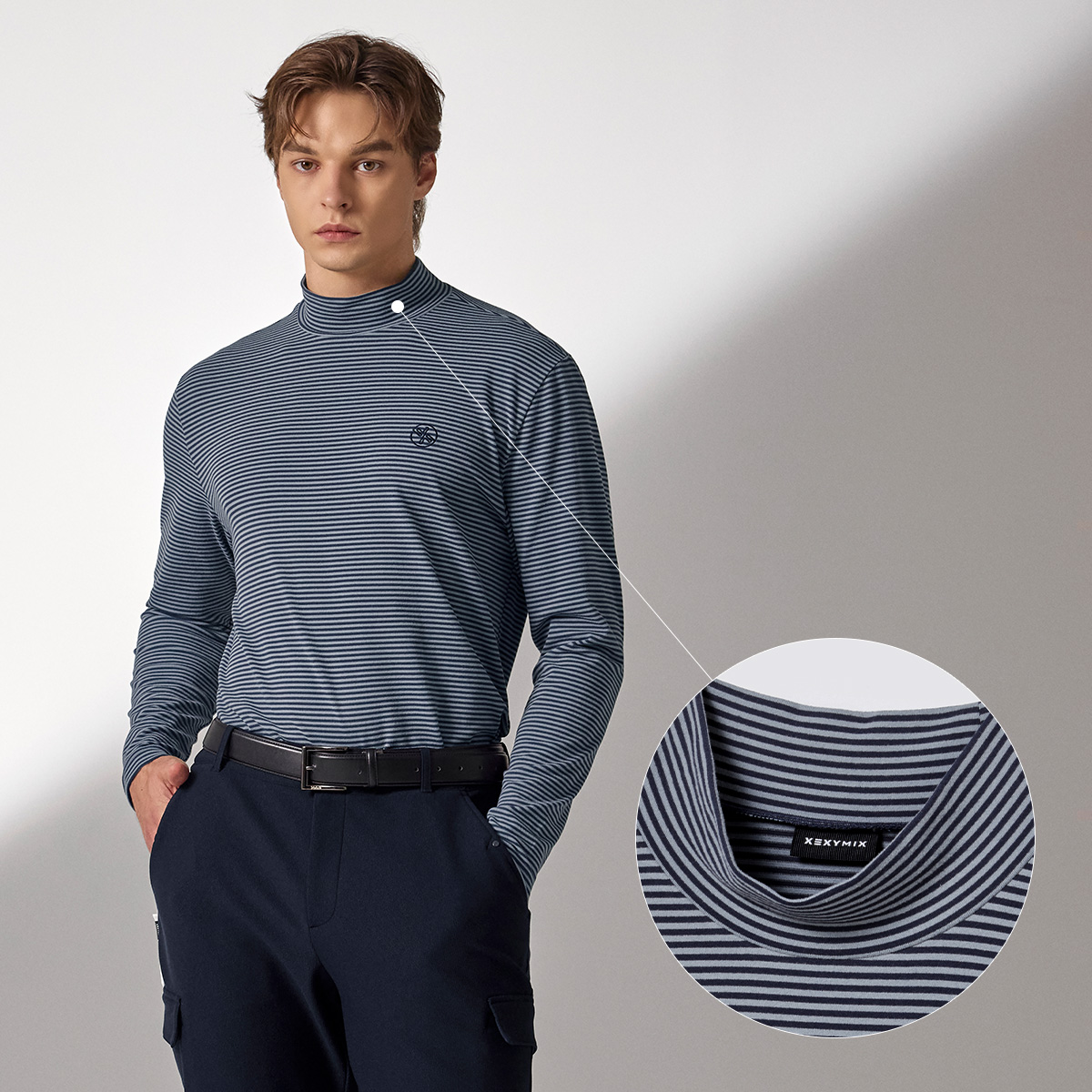 XMK3TU1203 Stripe Men's Mock Neck Long TOP