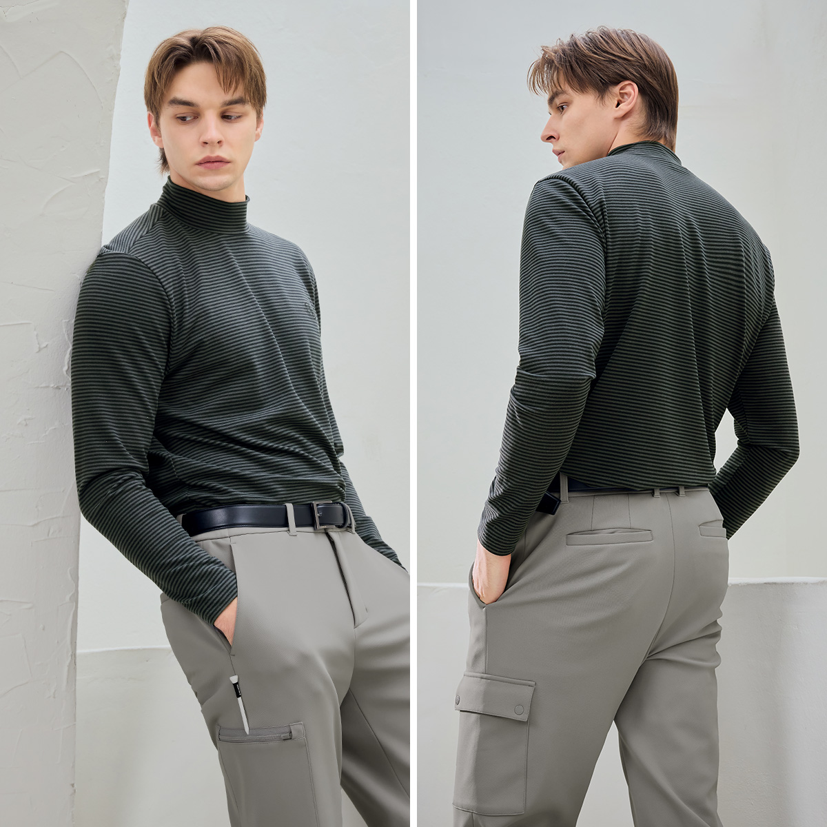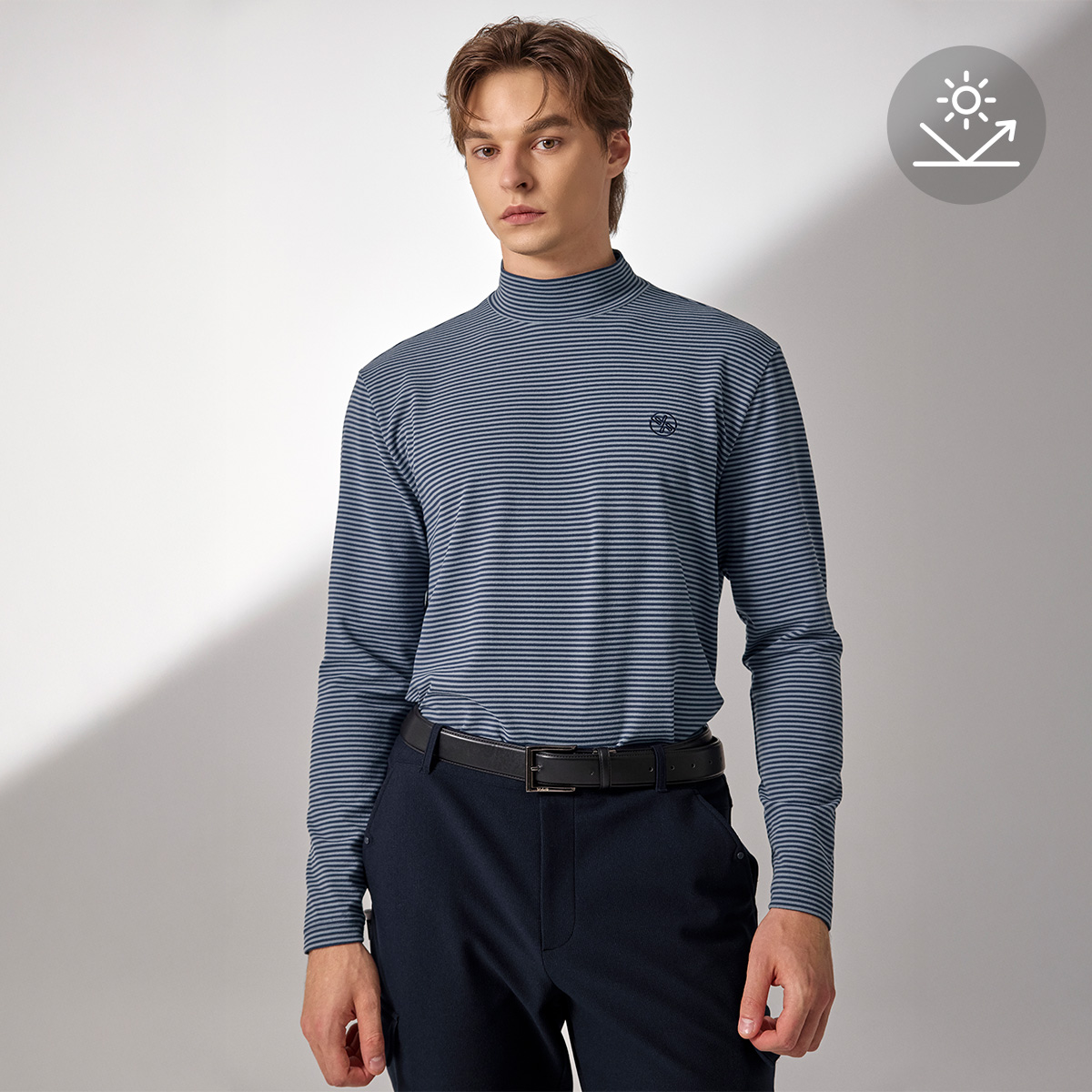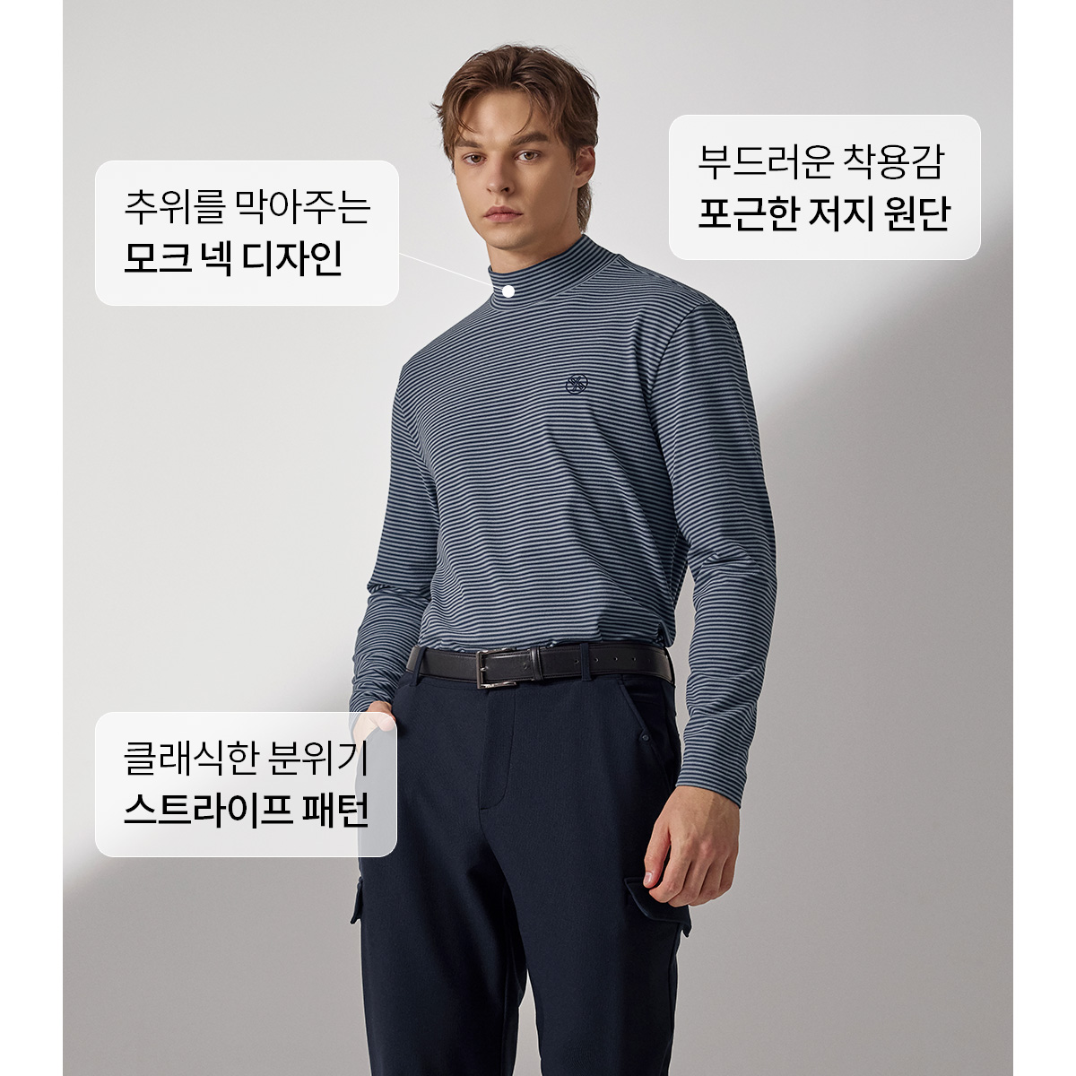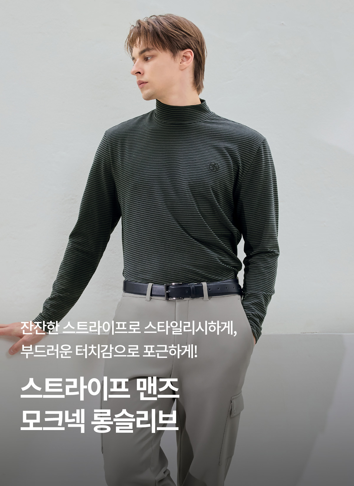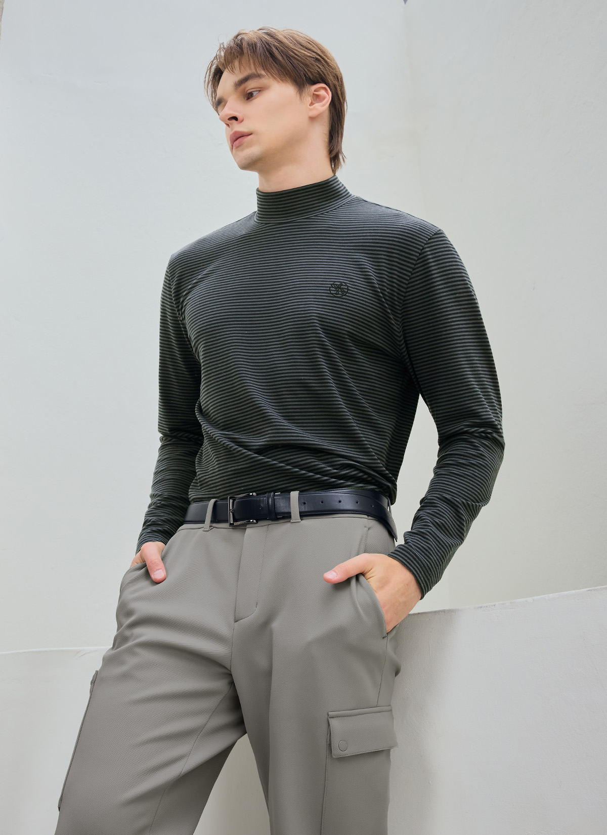 XMK3TU1203 Stripe Men's Mock Neck Long TOP