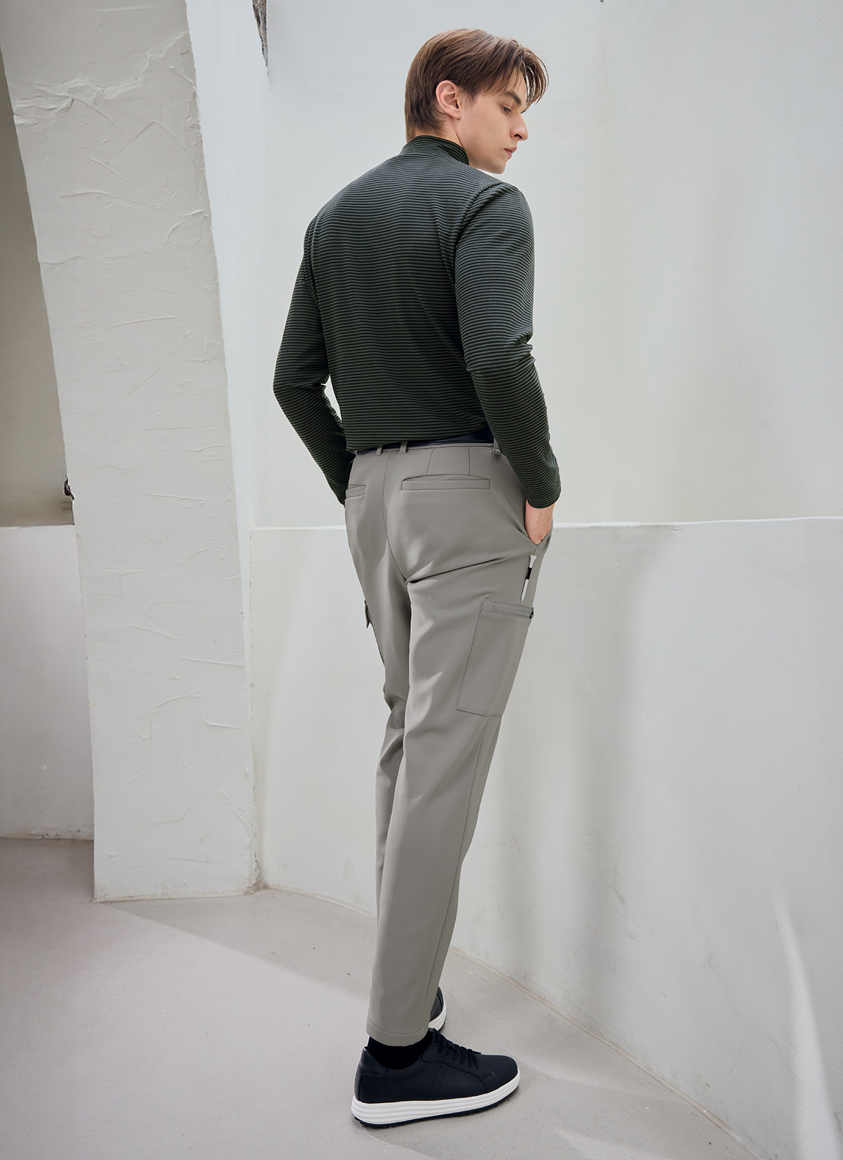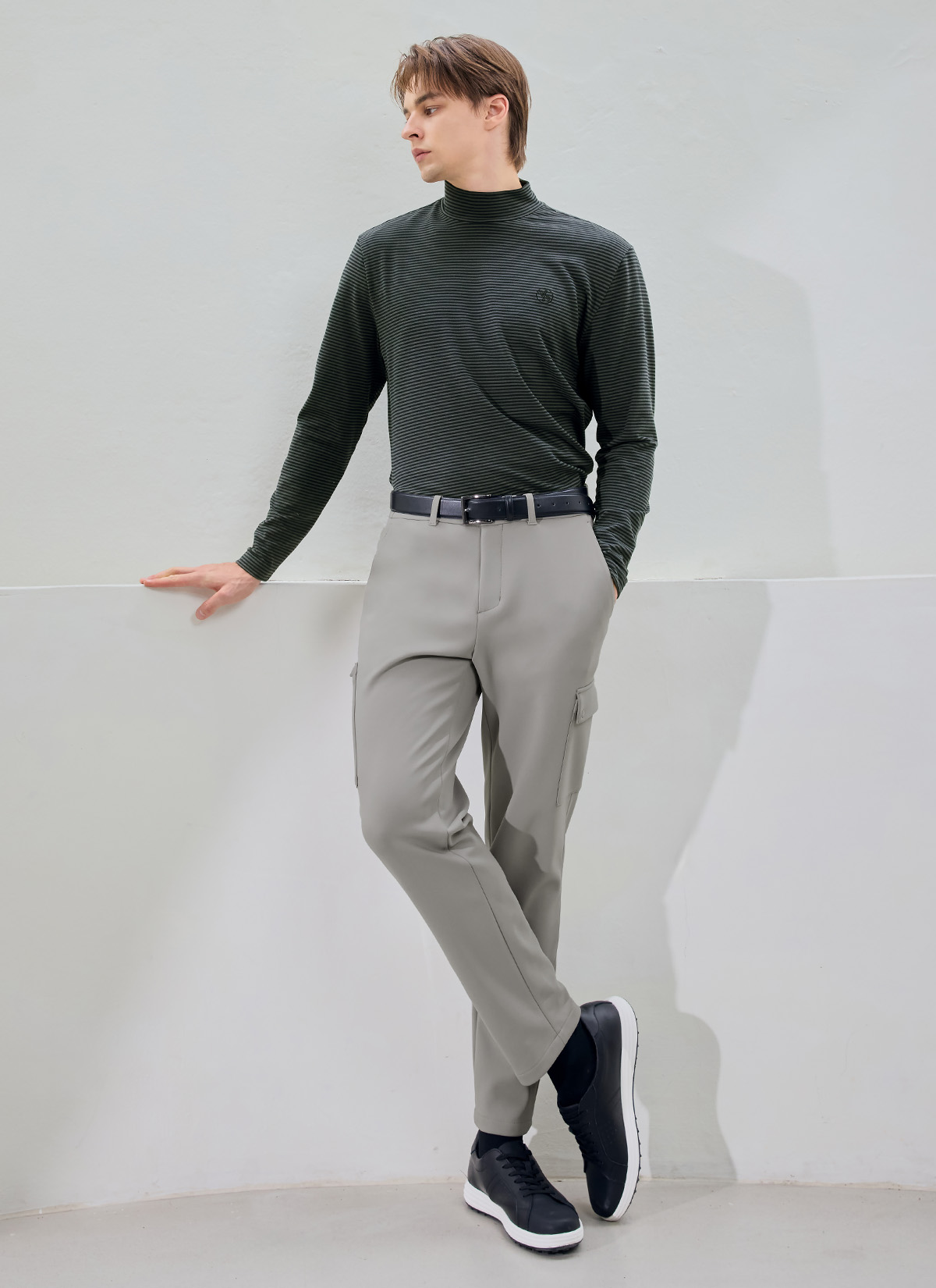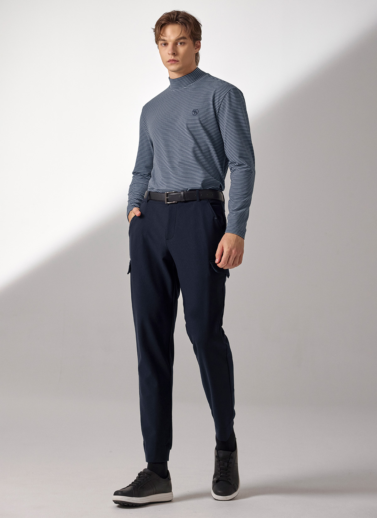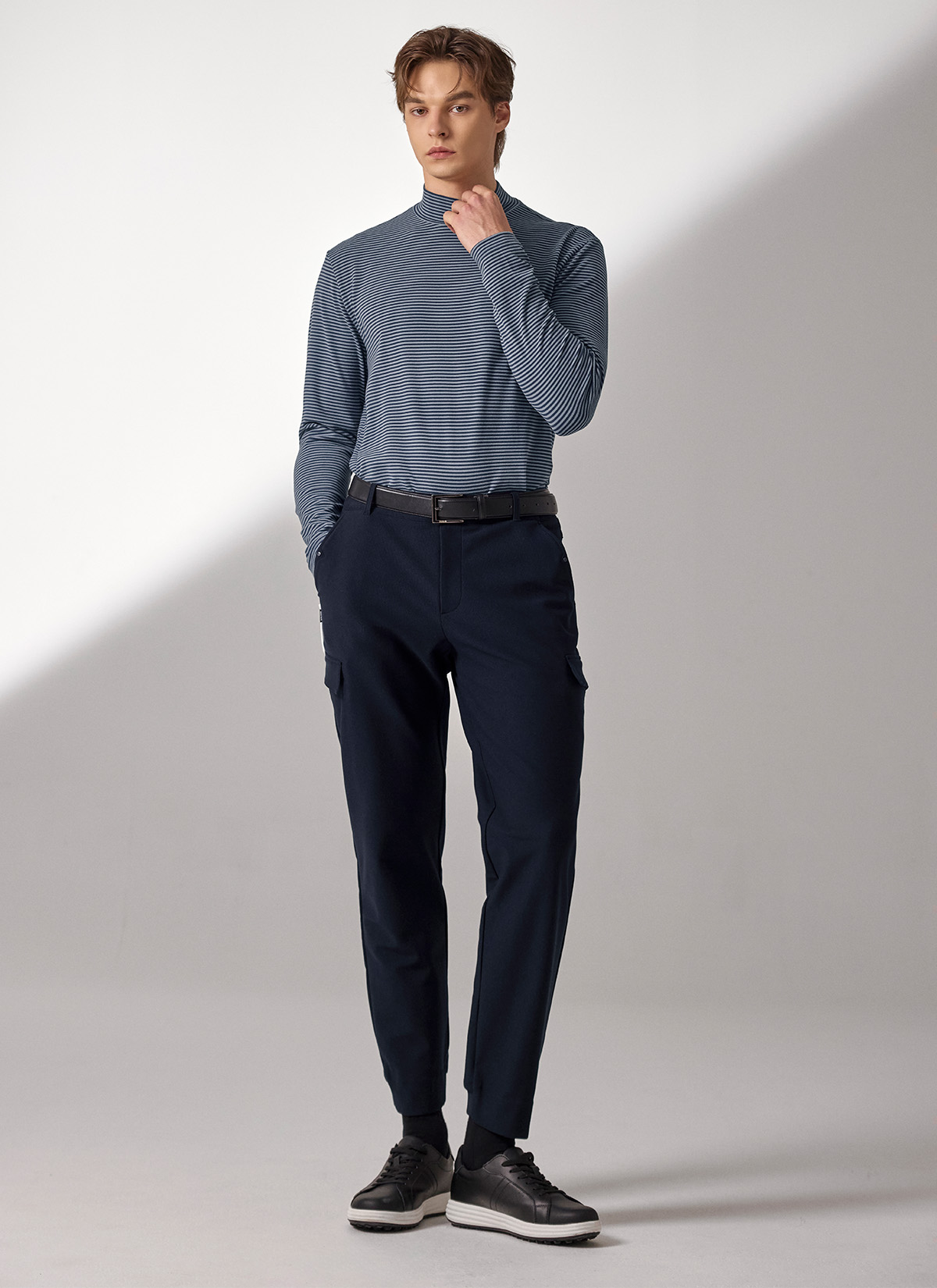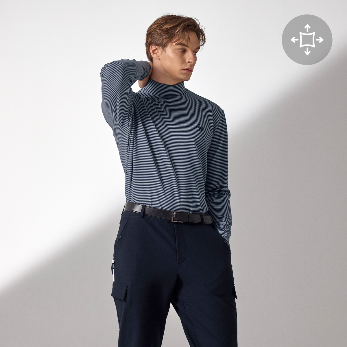 XMK3TU1203 Stripe Men's Mock Neck Long TOP
