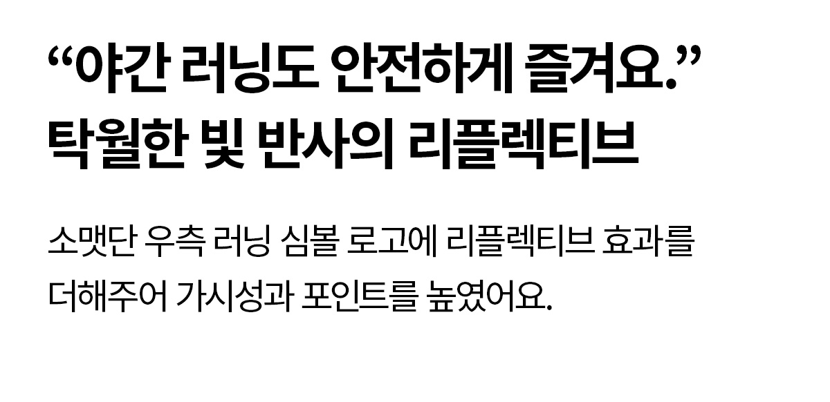 * 마찰이나 접힙이 반복될 경우 반사 코팅이 손상될 수 있으니 옷걸이에 보관하는 것을 권장합니다. * 세탁 시 뒤집어서 손세탁 하는 것을 권장하며 건조 시 직사광선을 피해 서늘한 그늘에서 자연건조해 주세요. * 표백제나 강한 세제를 사용하면 반사 기능이 저하될 수 있으니 중성세제를 사용하여 가볍게 손세탁해 주세요.