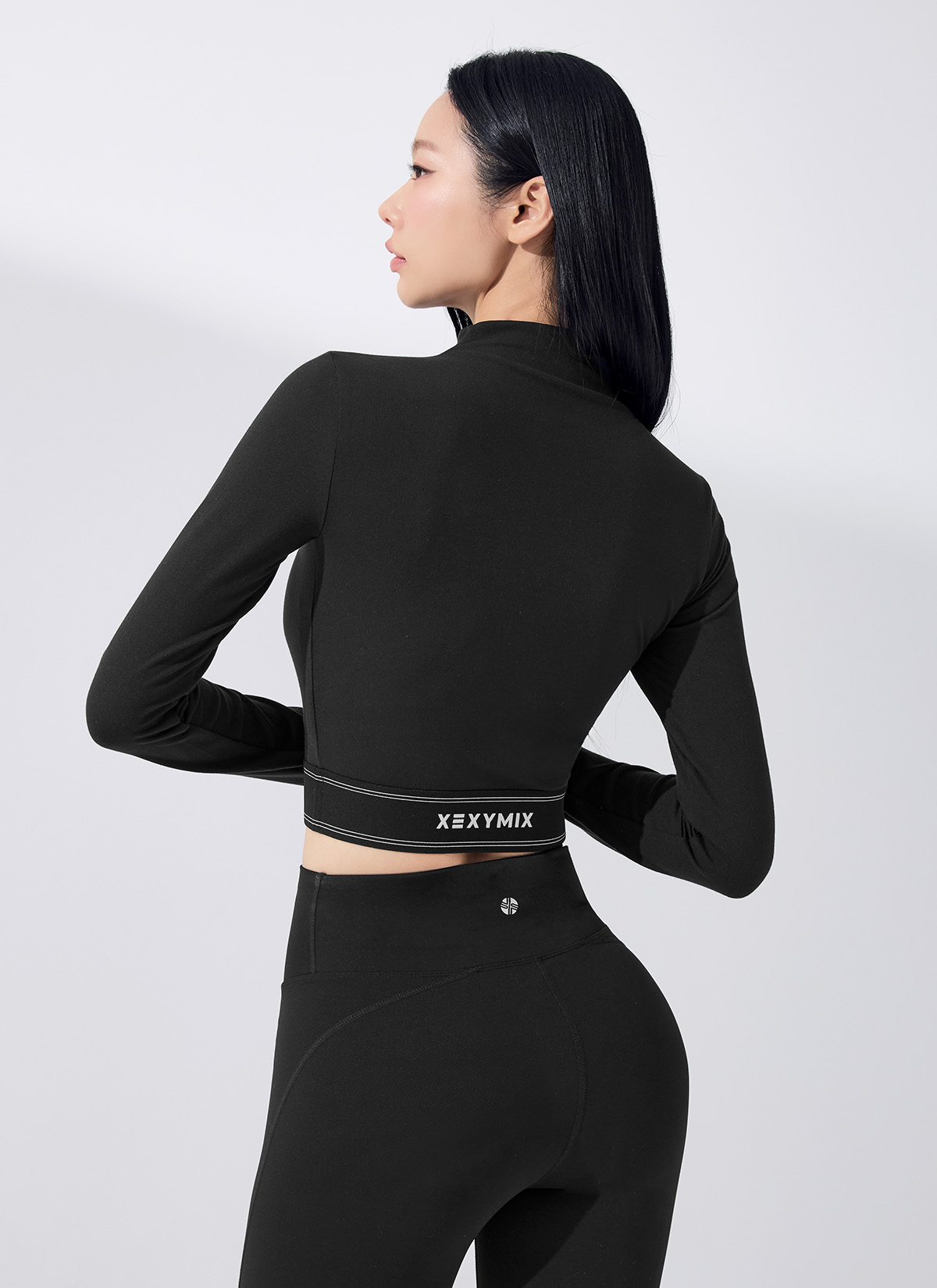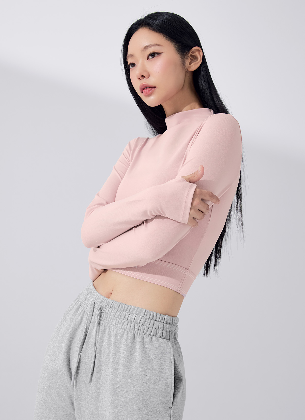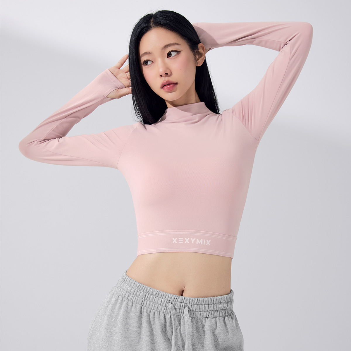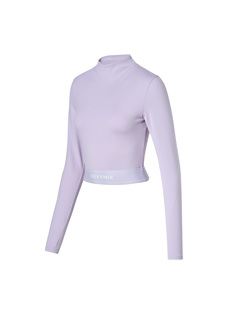 XFK4TL1001 Soft Logo Banding Mock Neck Long Sleeve Top