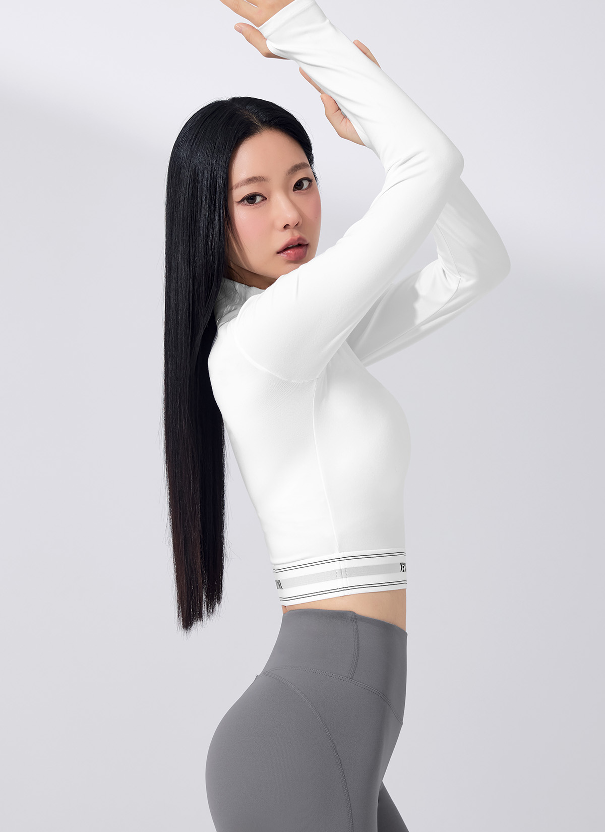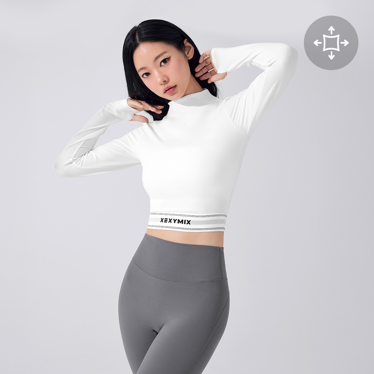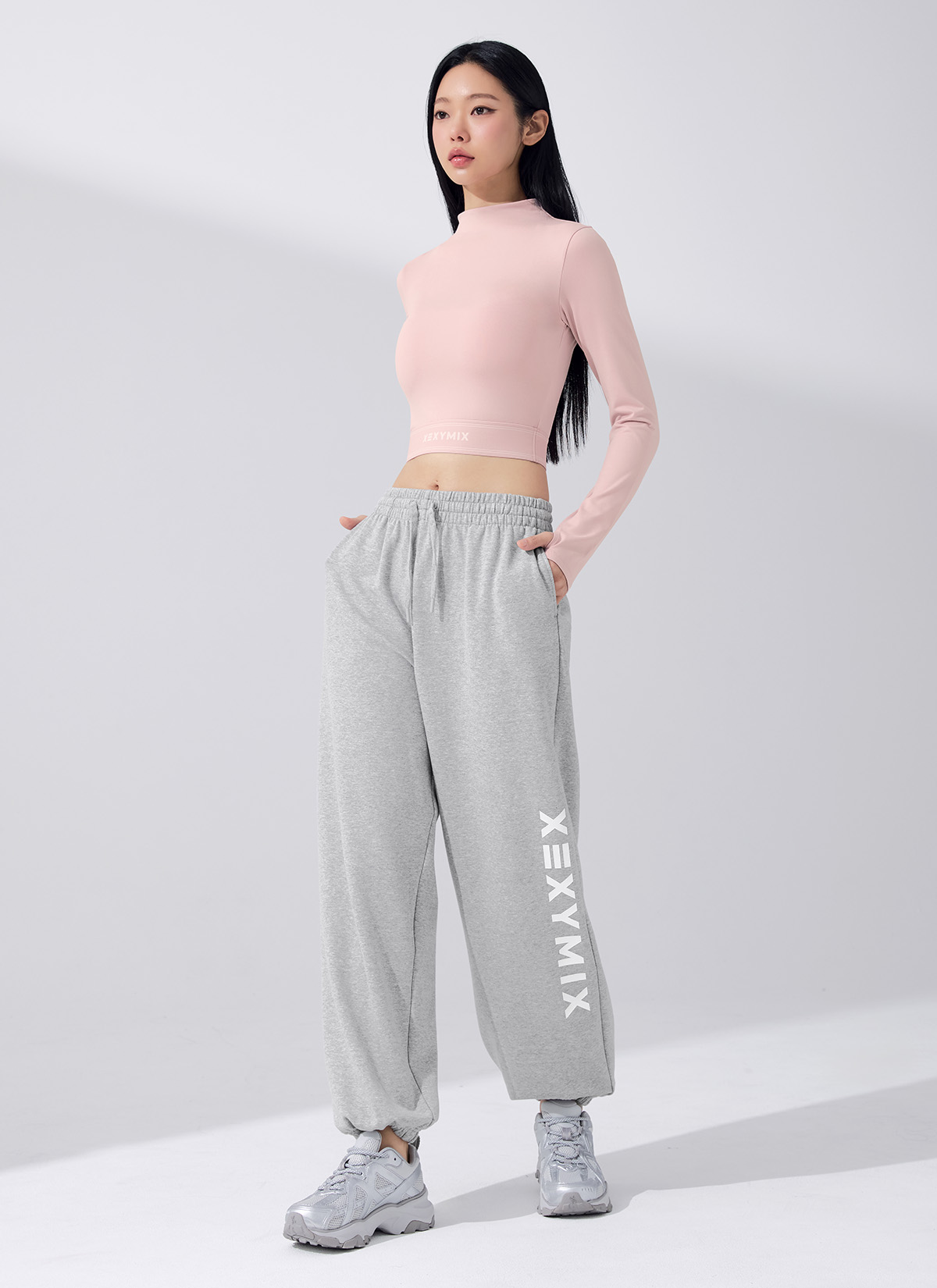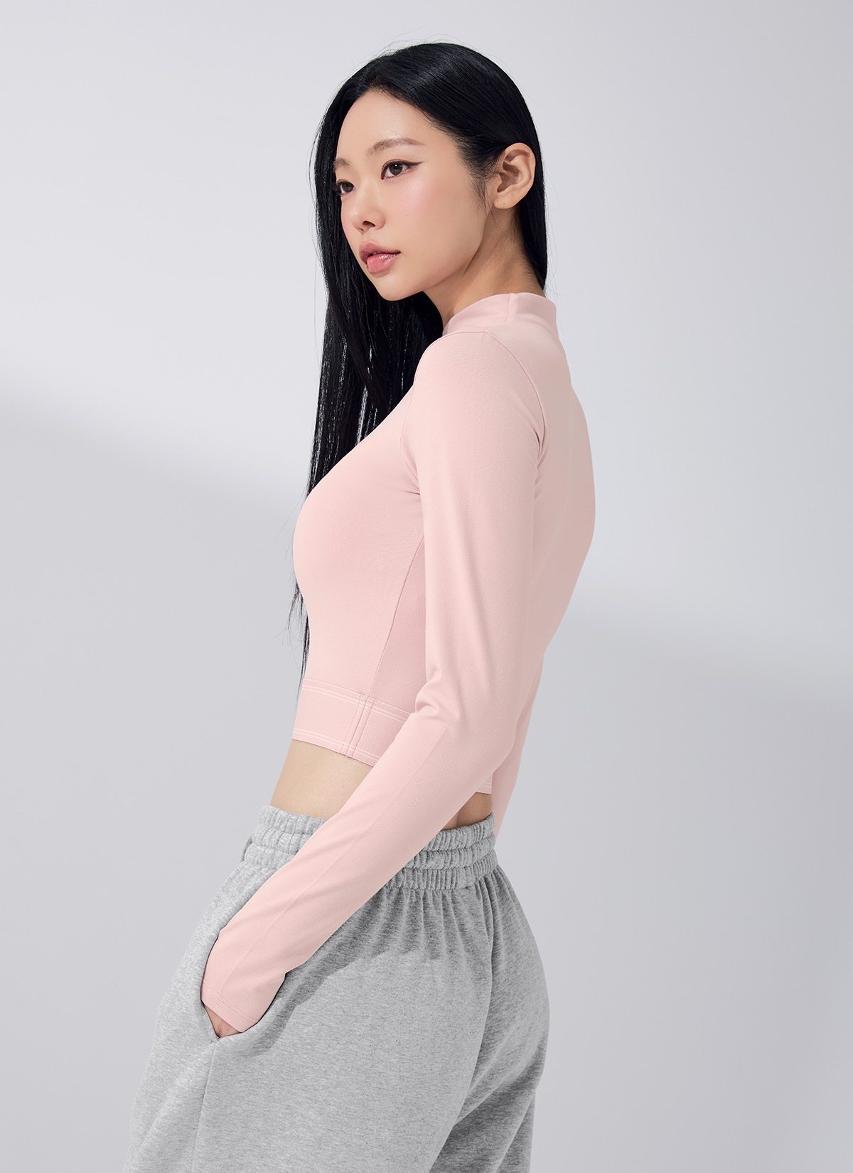 XFK4TL1001 Soft Logo Banding Mock Neck Long Sleeve Top