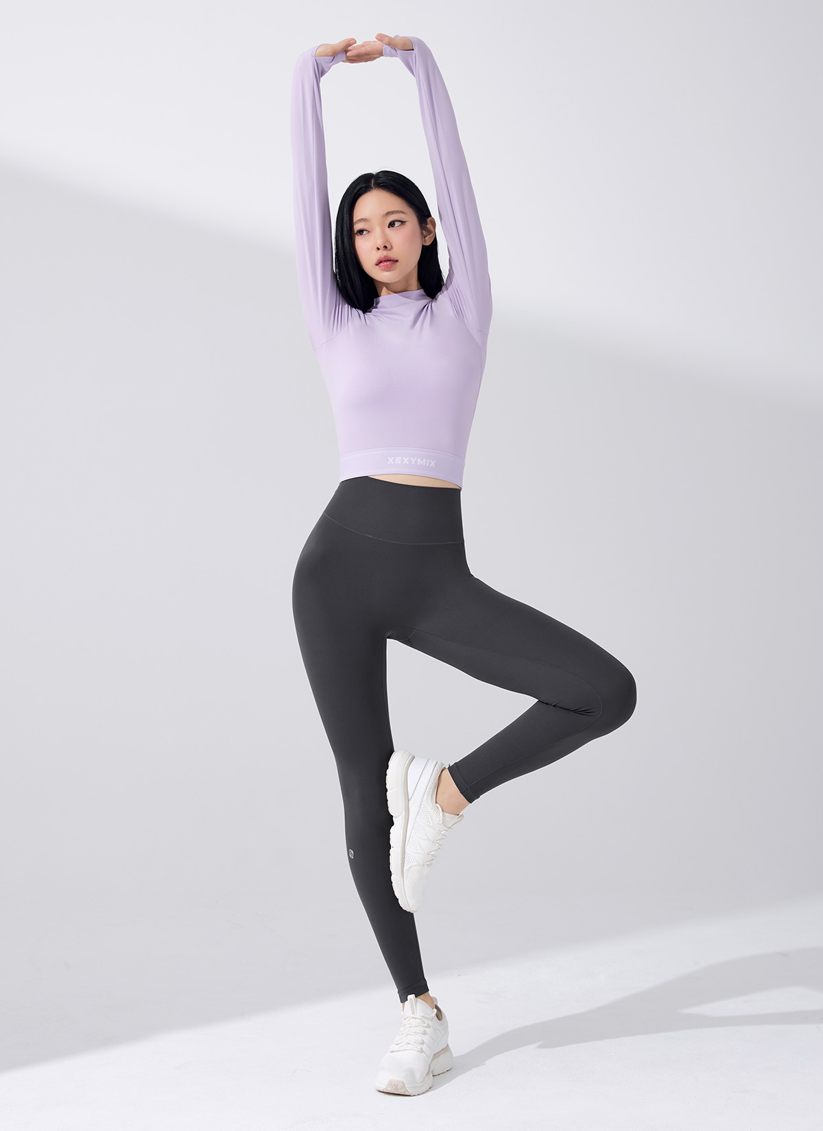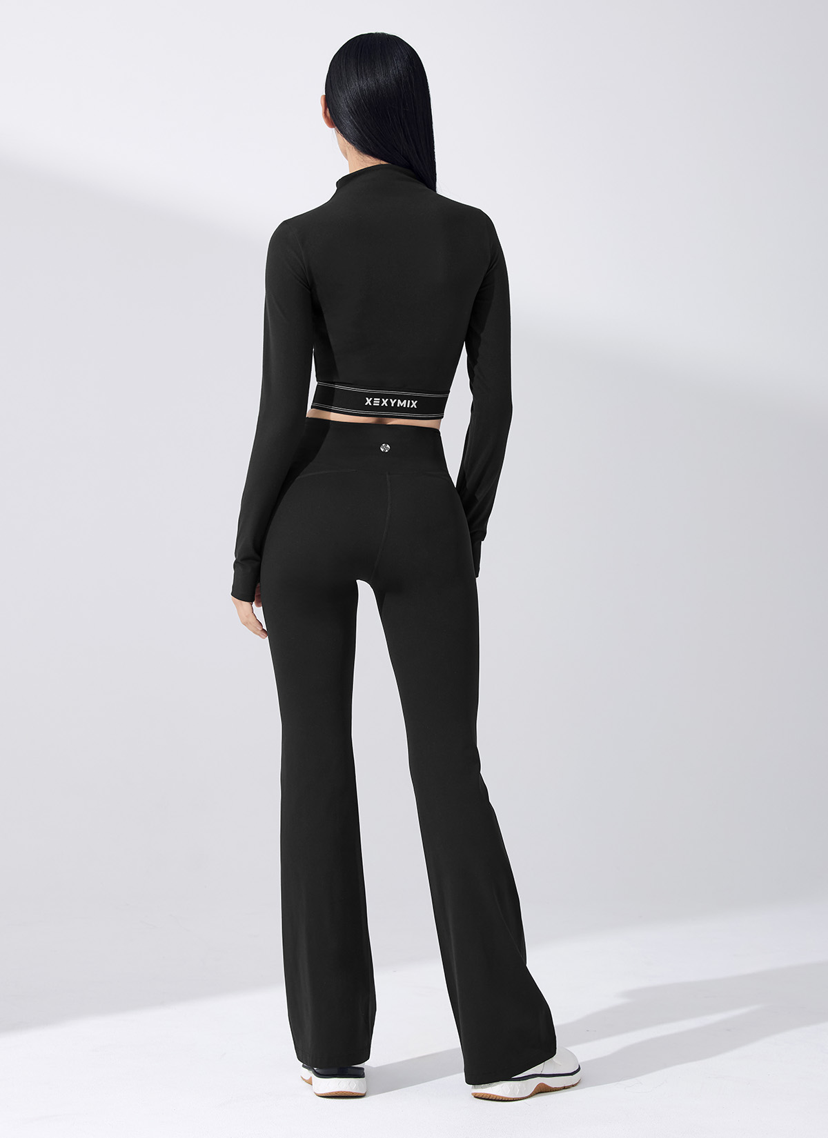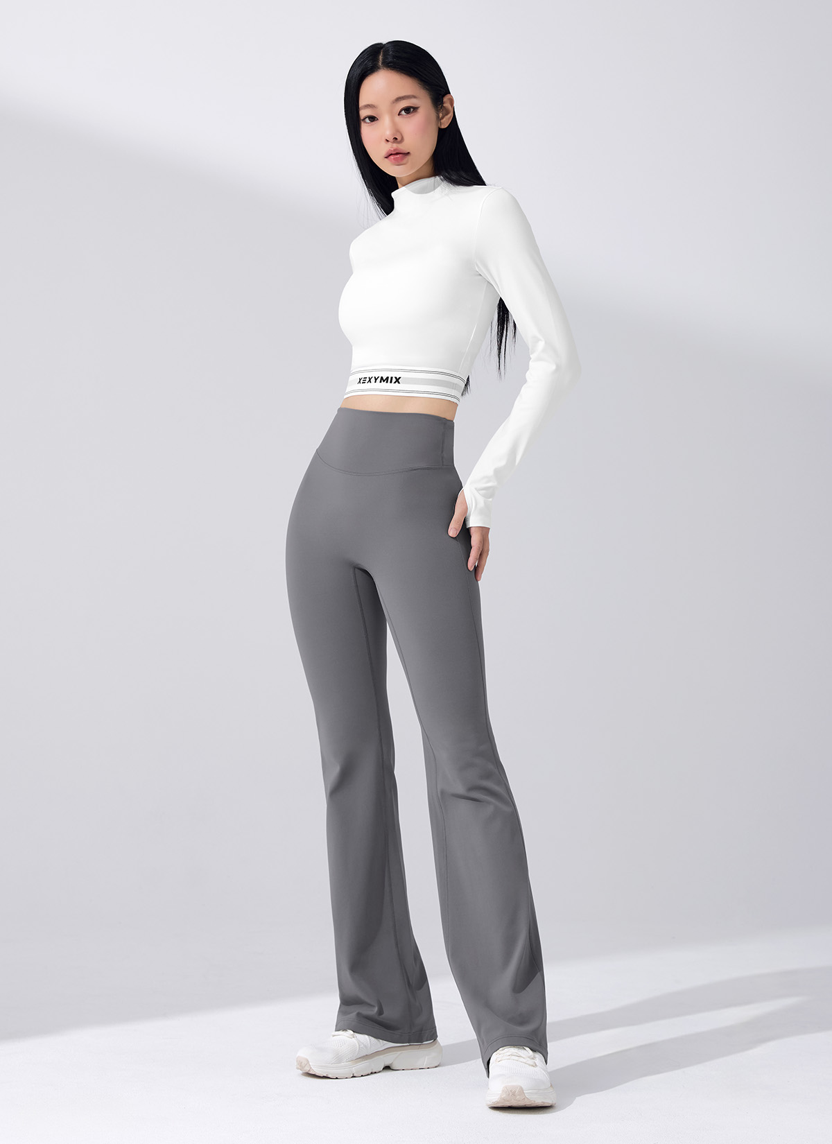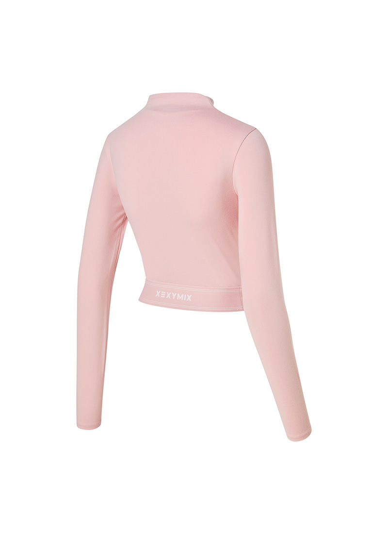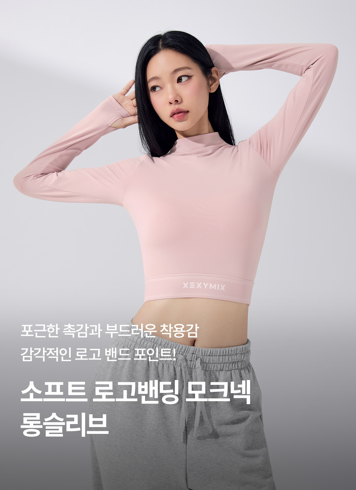 XFK4TL1001 Soft Logo Banding Mock Neck Long Sleeve Top