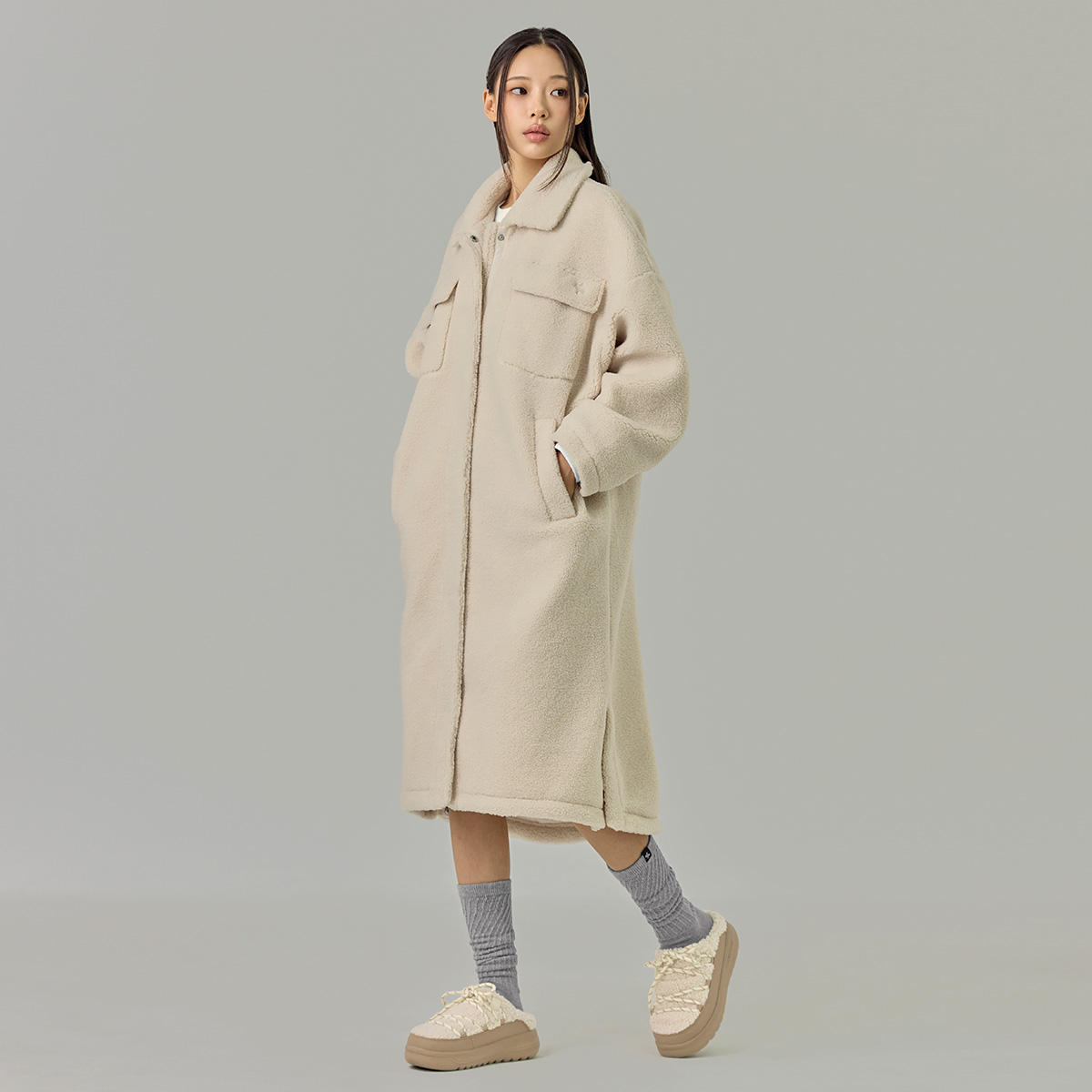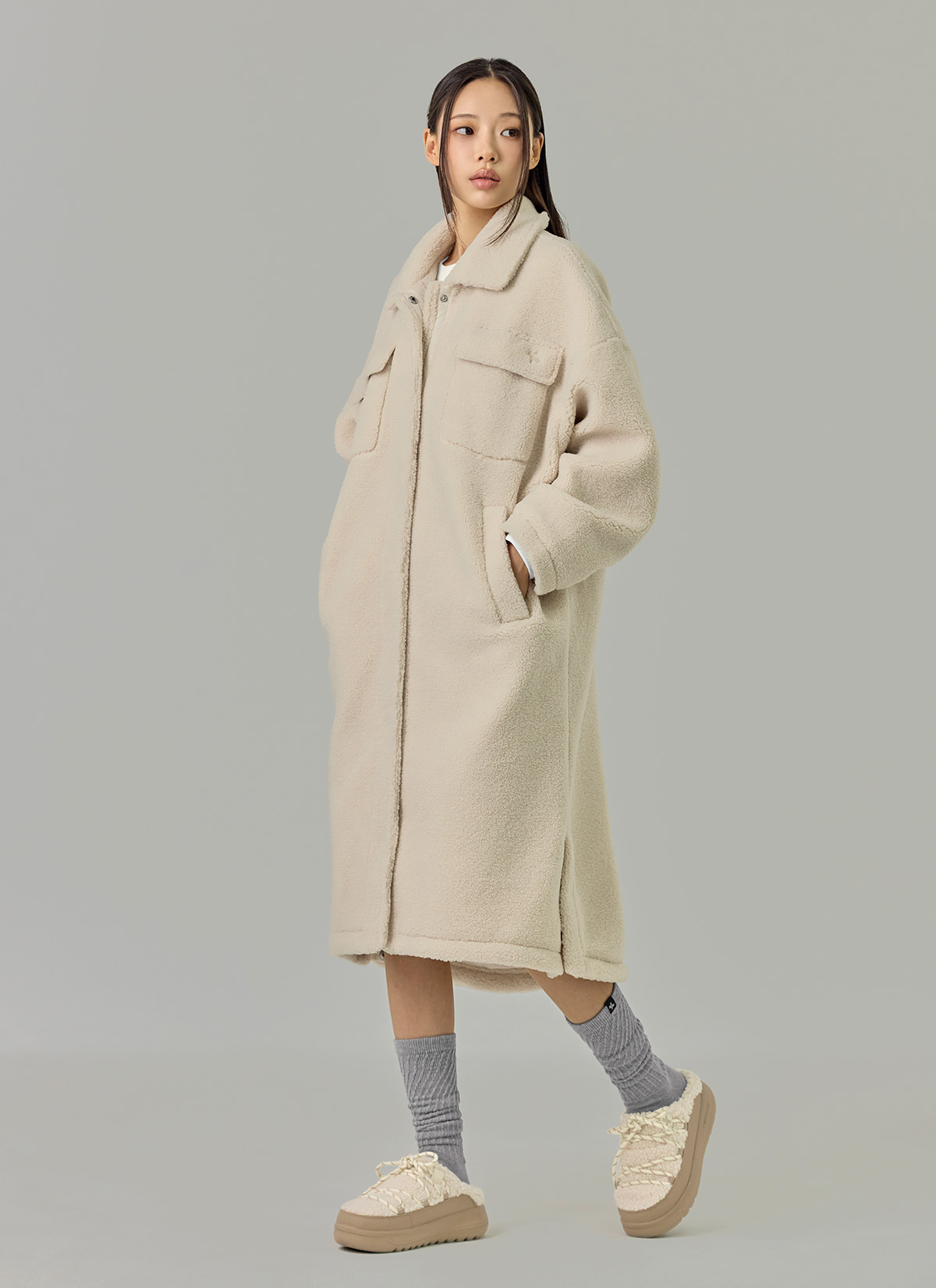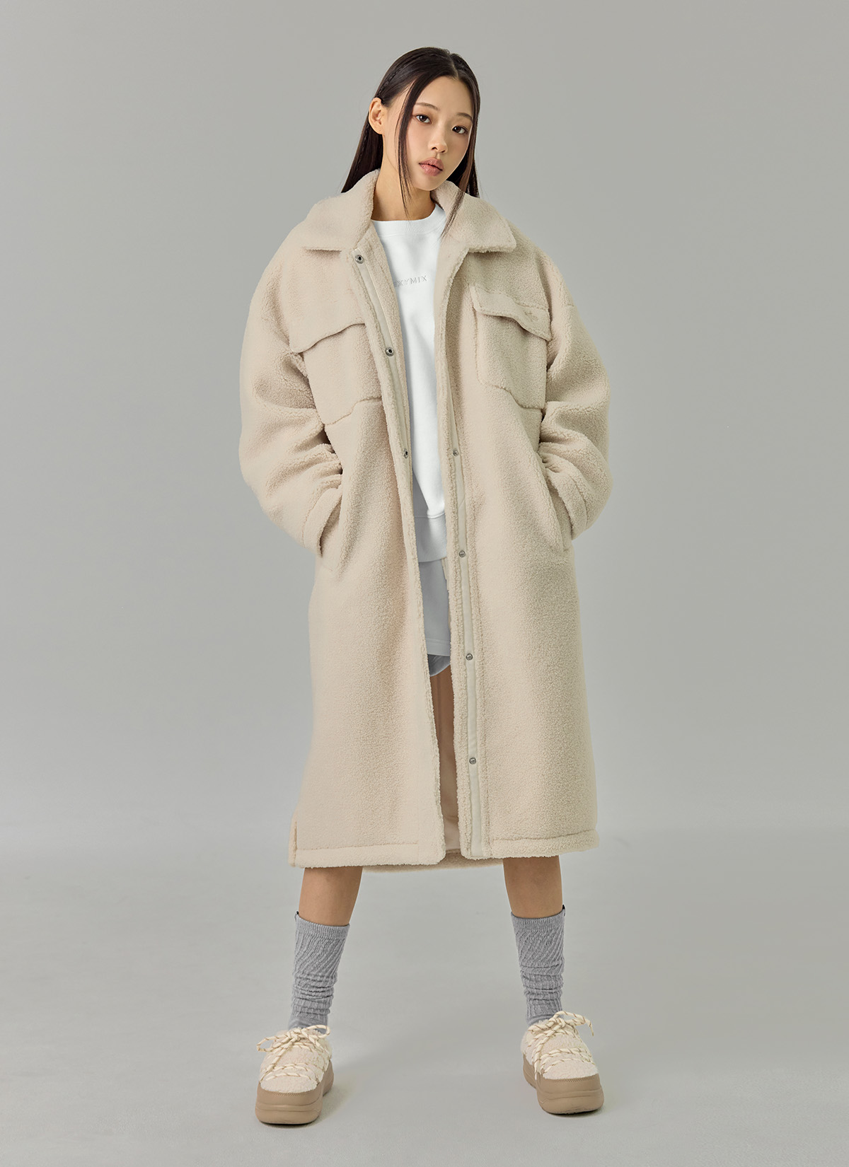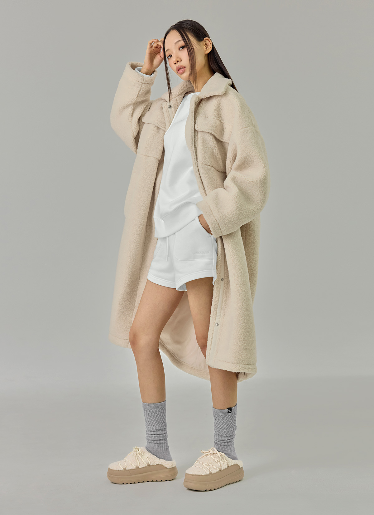 XTFJK06J3 Sherpa Cozy Long Jacket Top