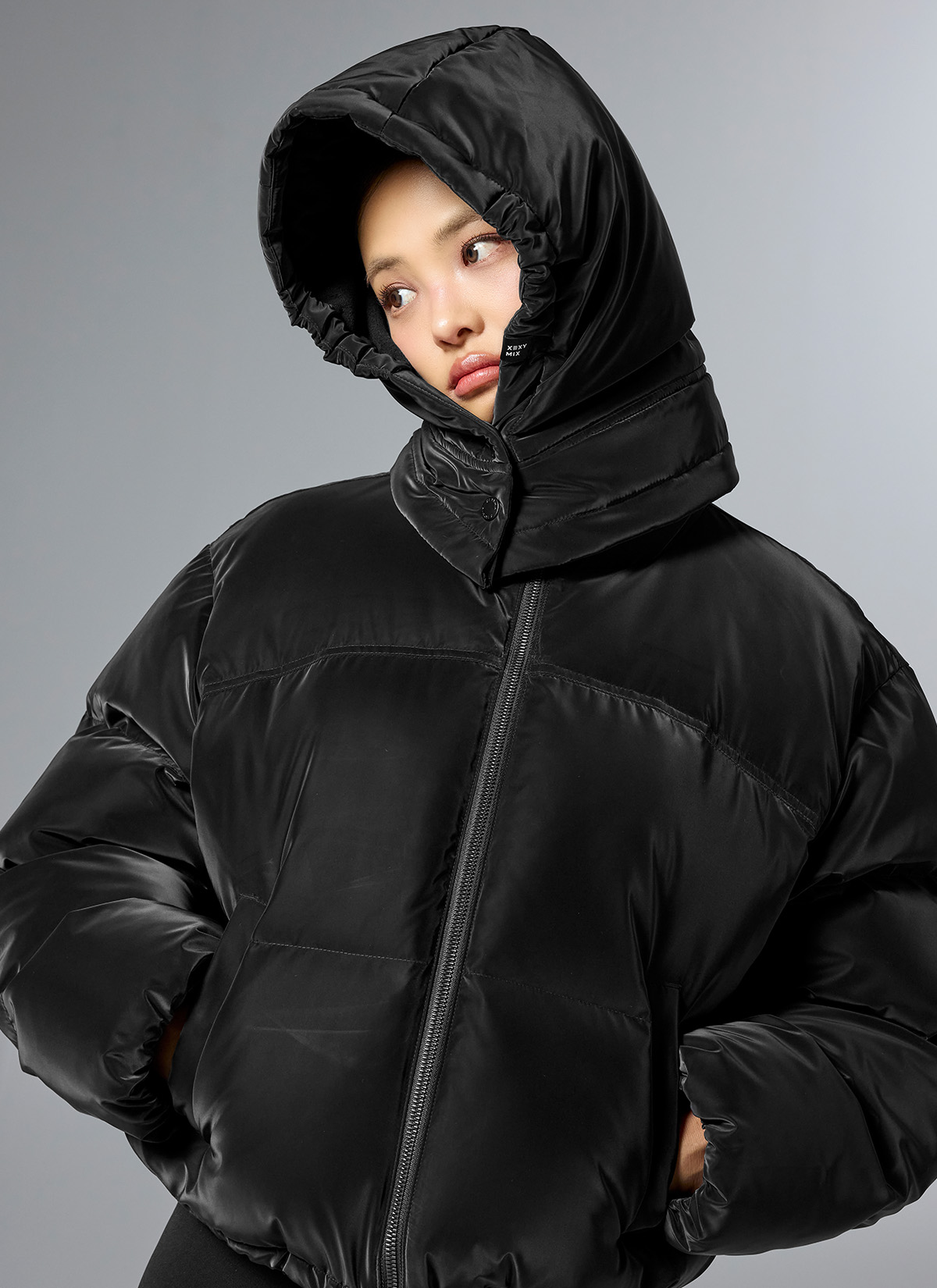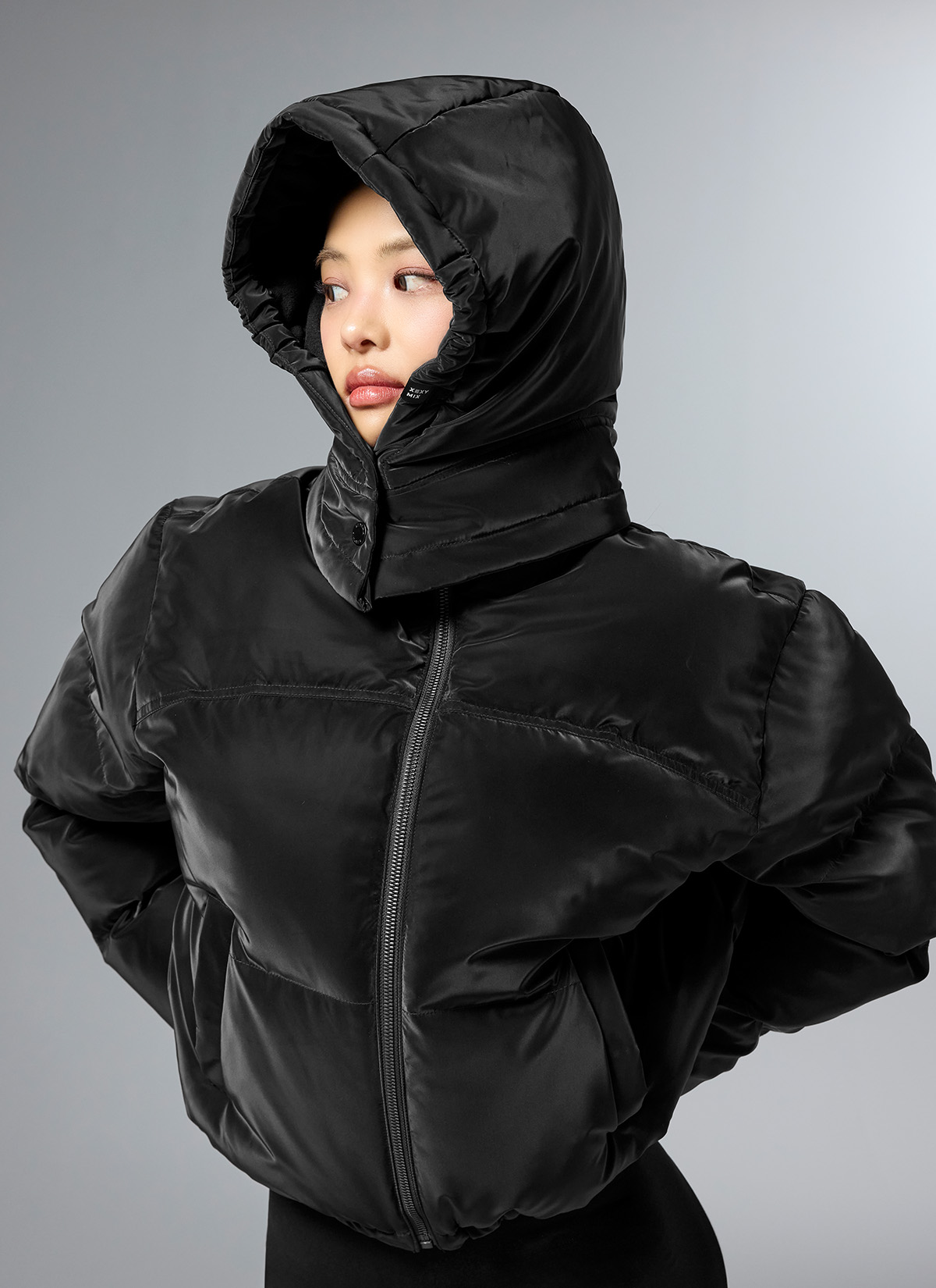 XUK4AC1609 Glossy Padding Baraclava Top