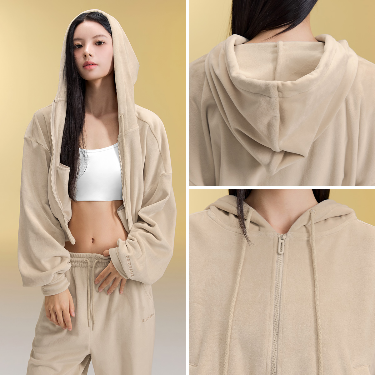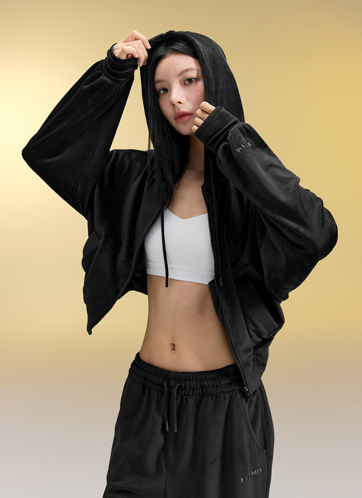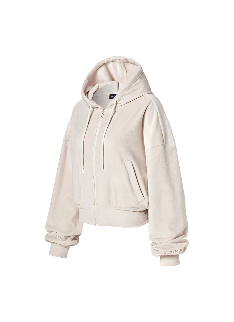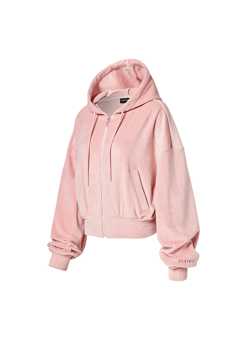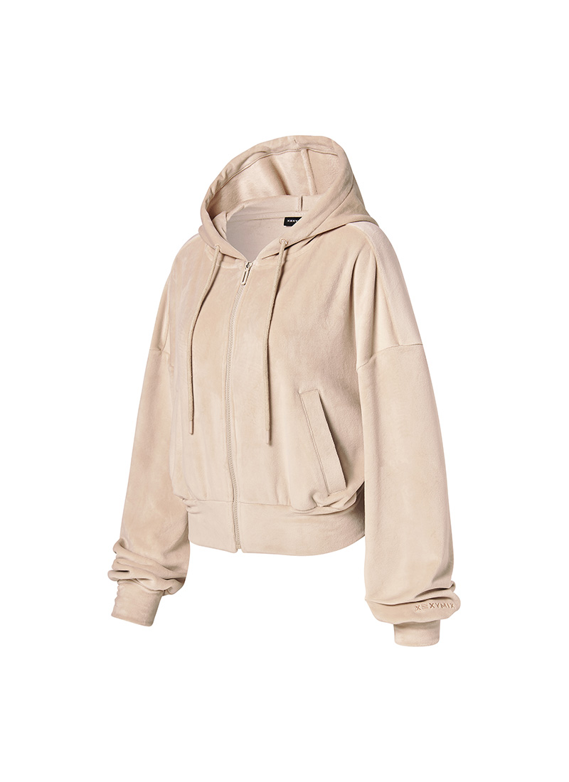 XFK3JL1121 Velour Warm Hood Zip-up Top