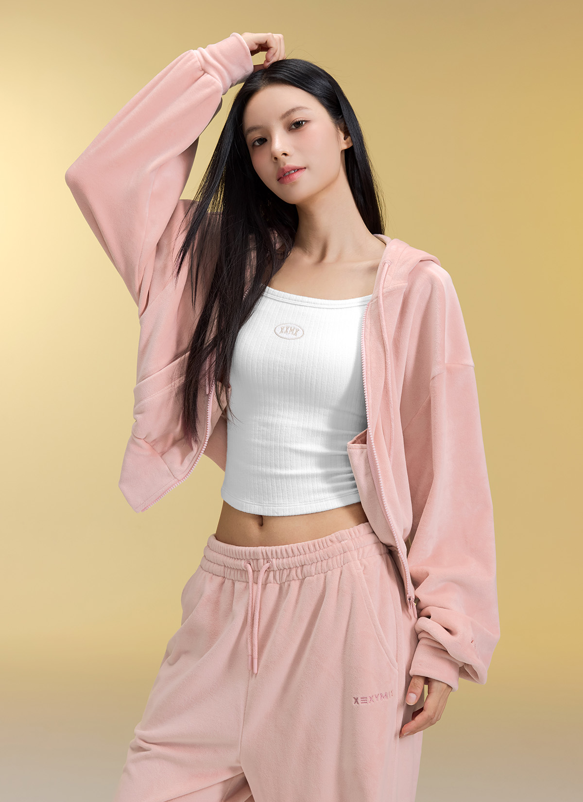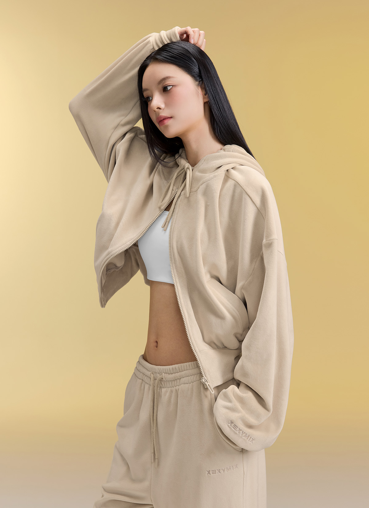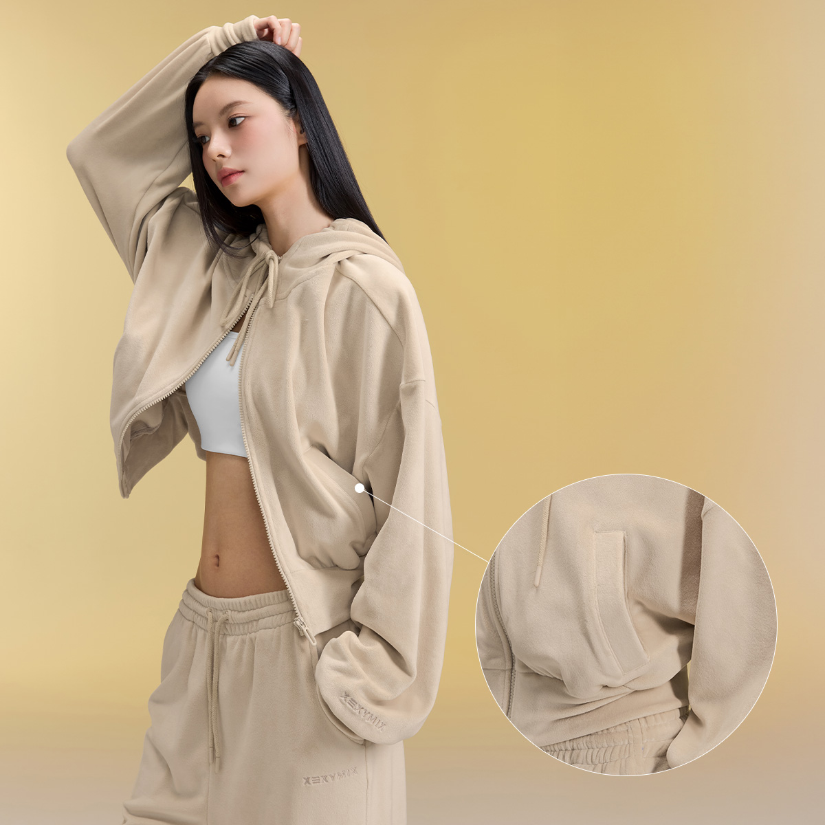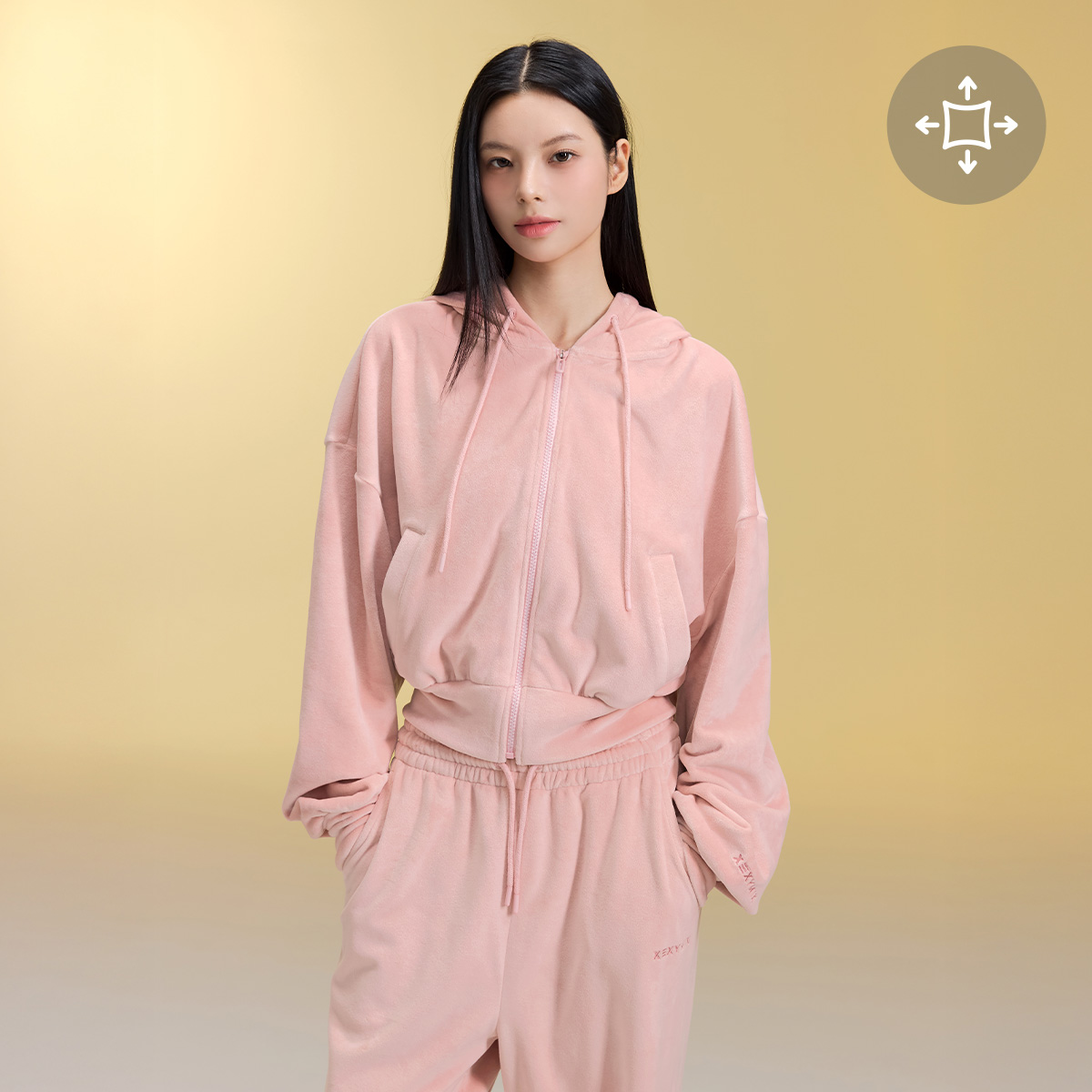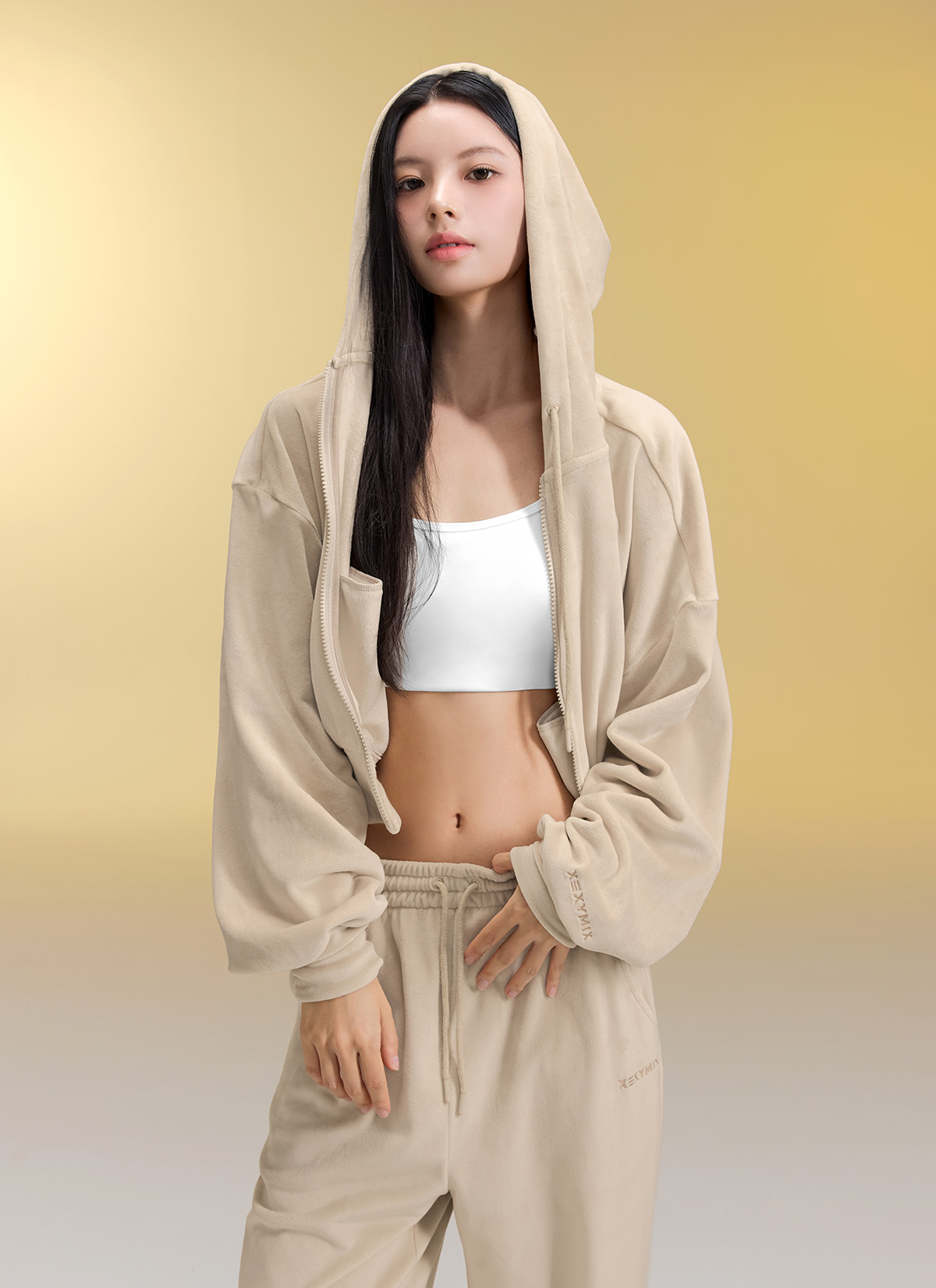 XFK3JL1121 Velour Warm Hood Zip-up Top