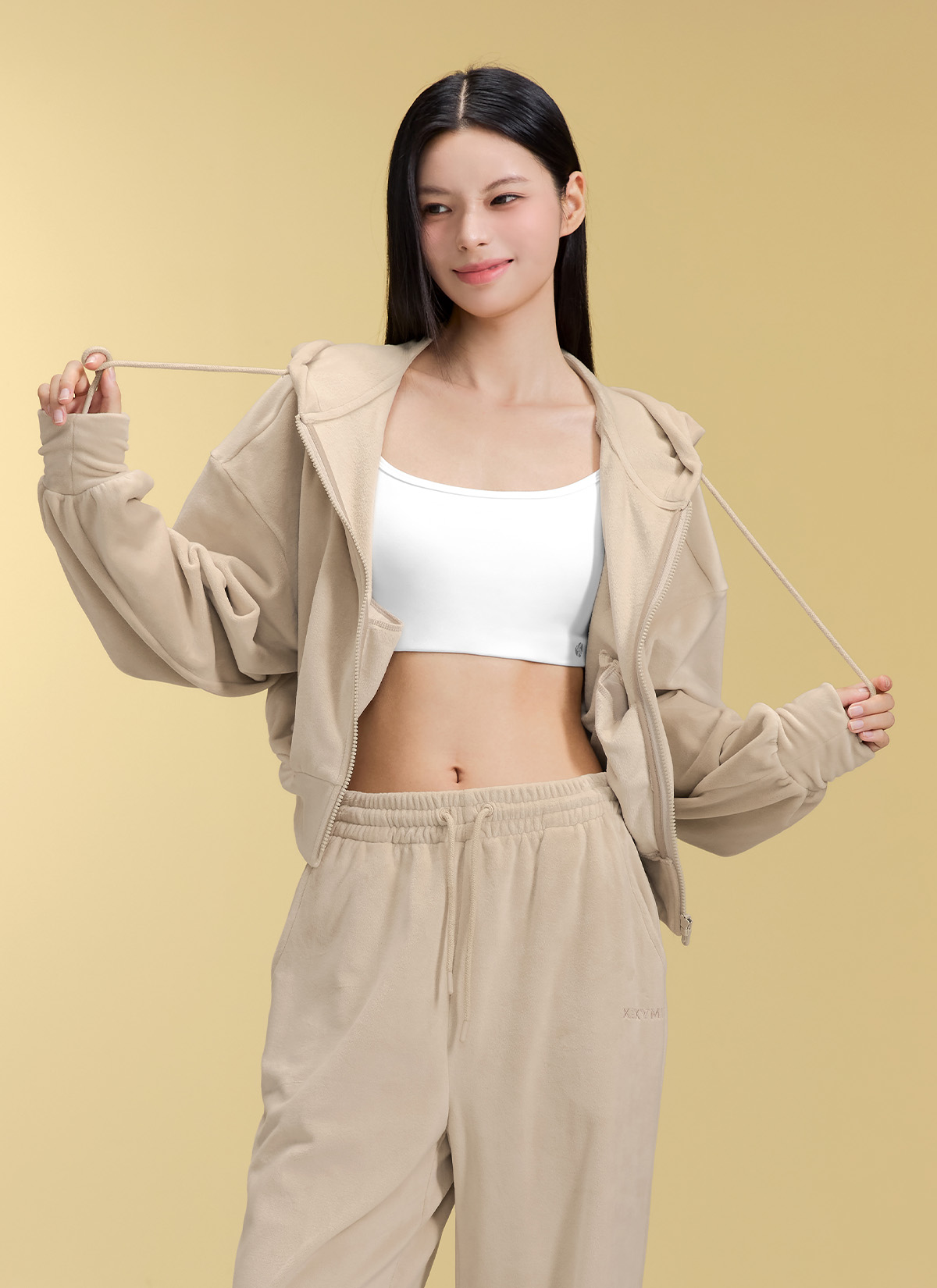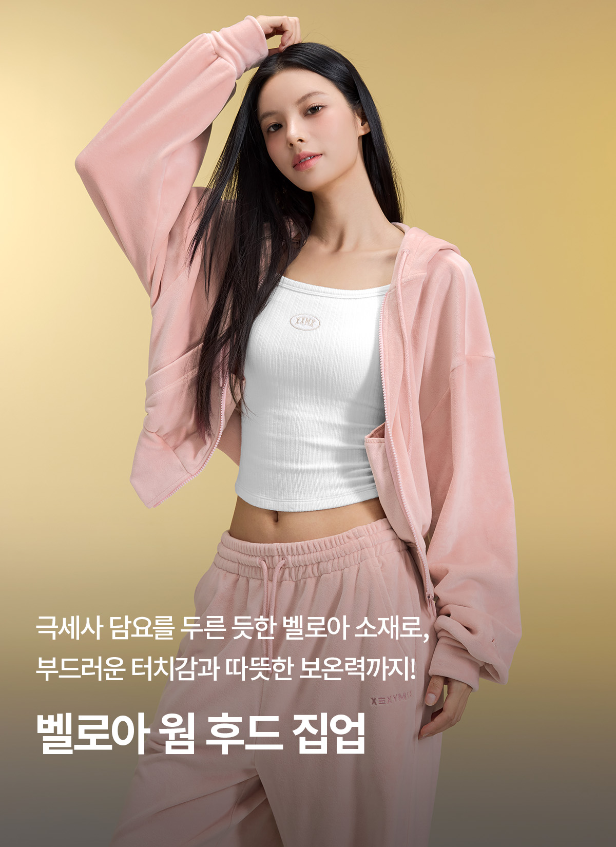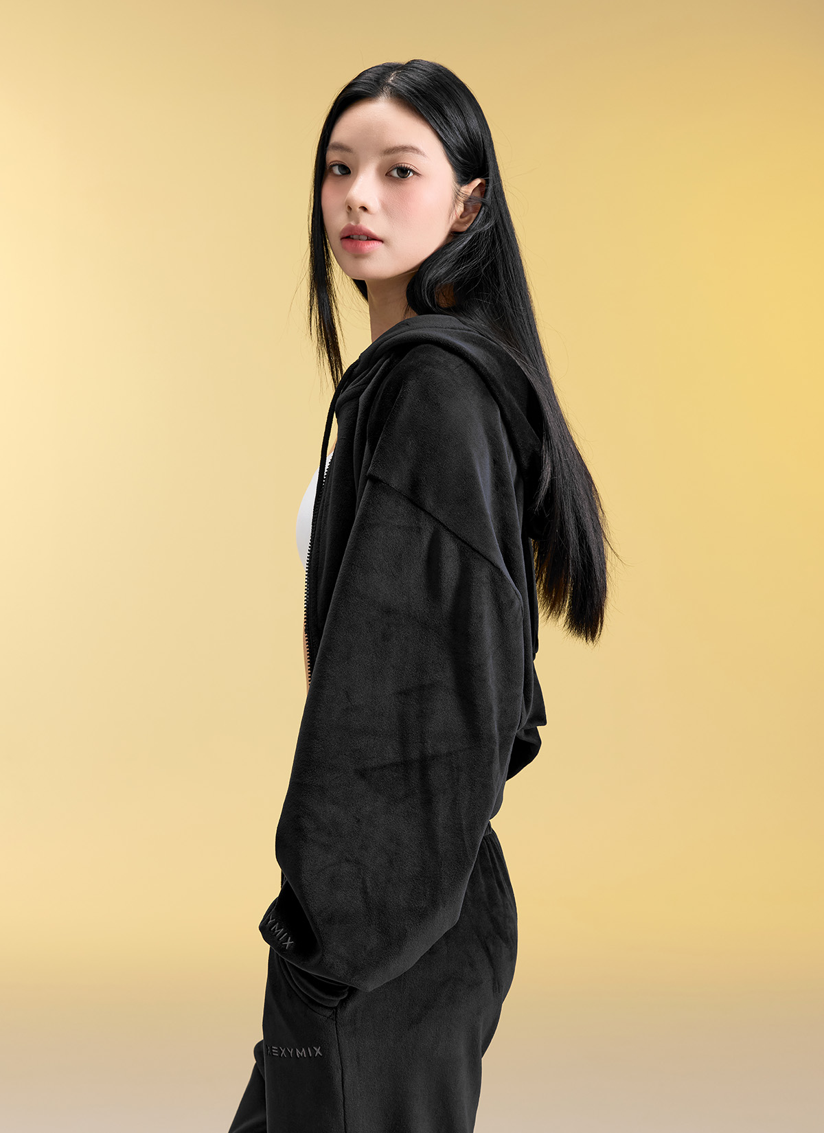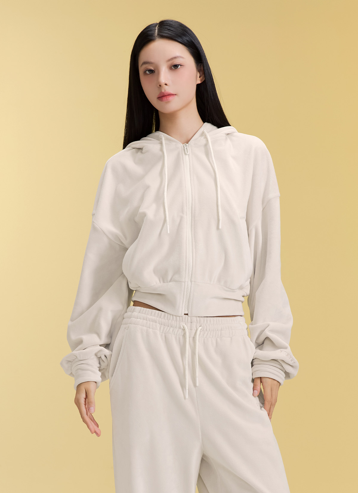 XFK3JL1121 Velour Warm Hood Zip-up Top