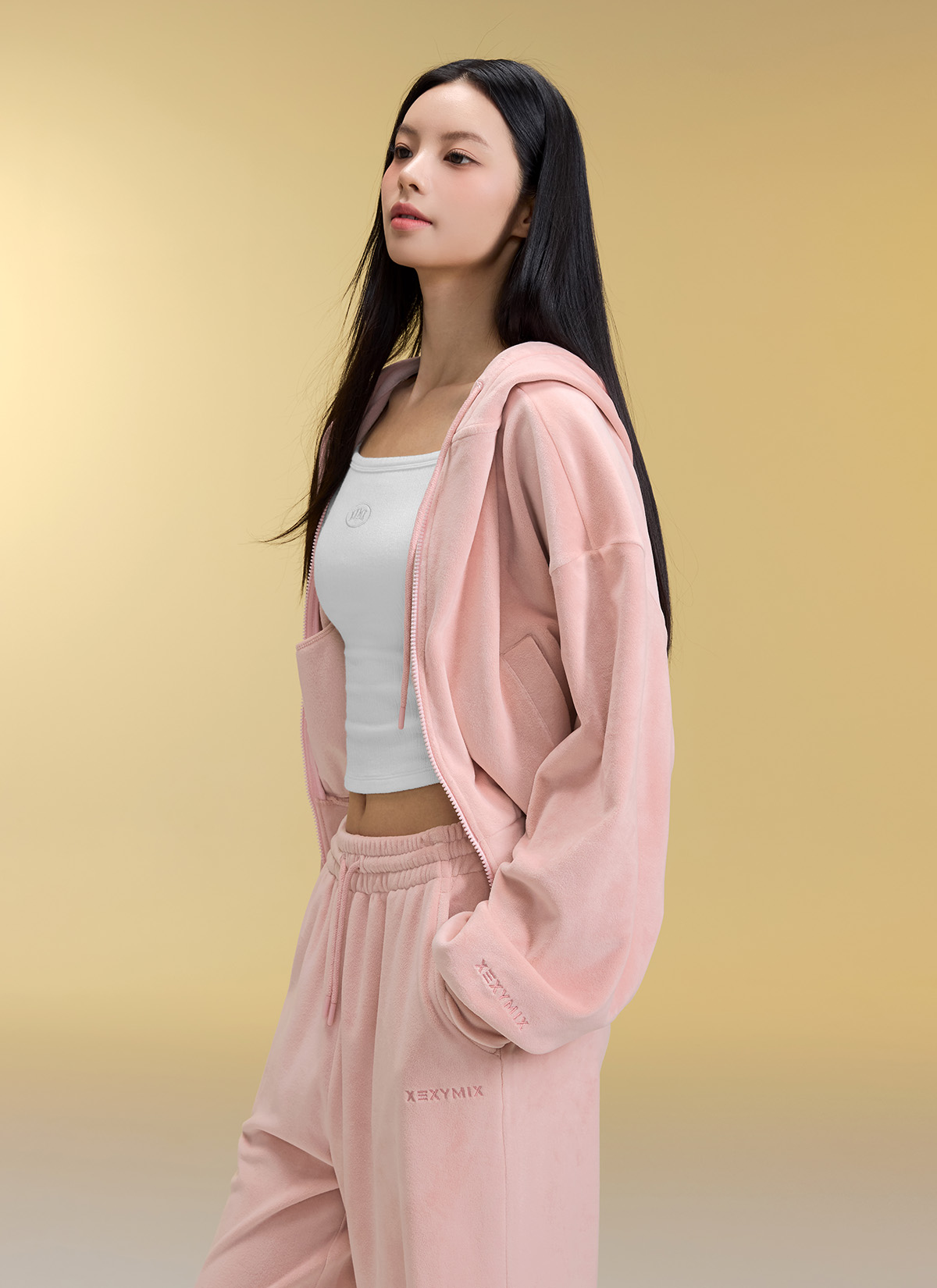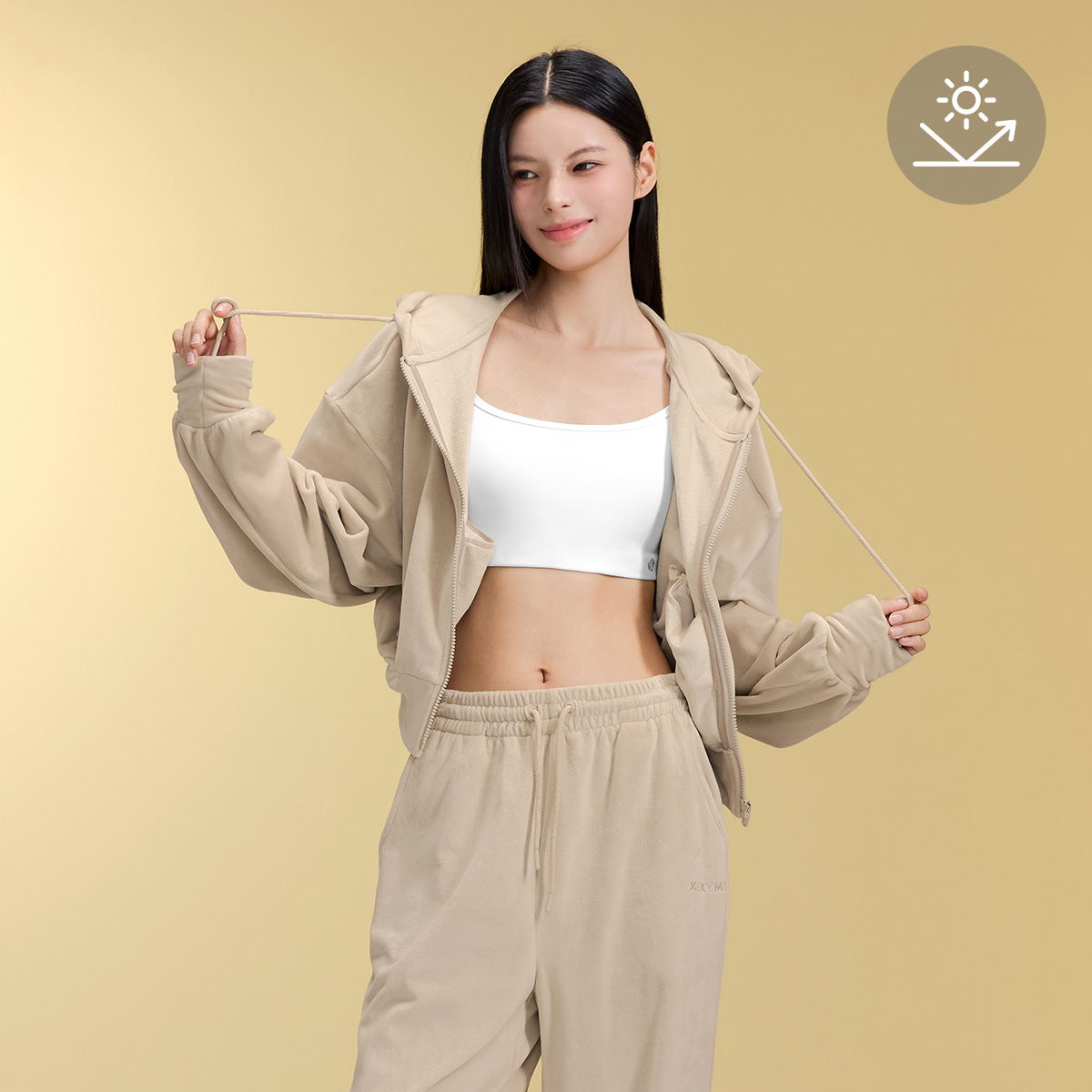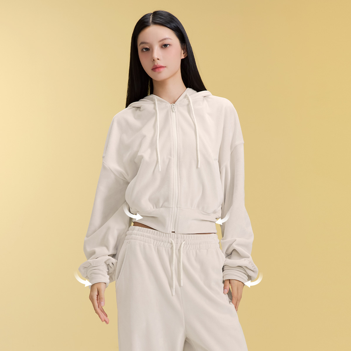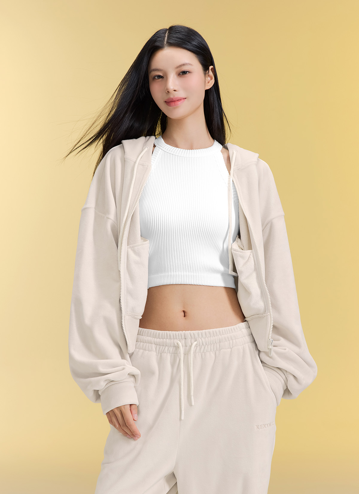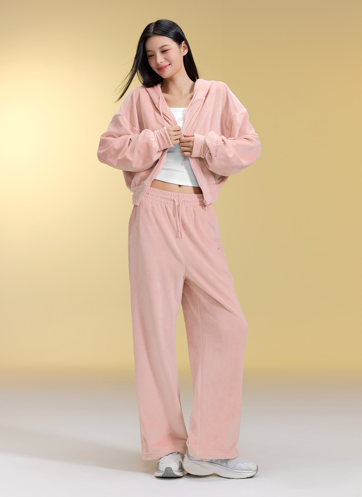XFK3JL1121 Velour Warm Hood Zip-up Top