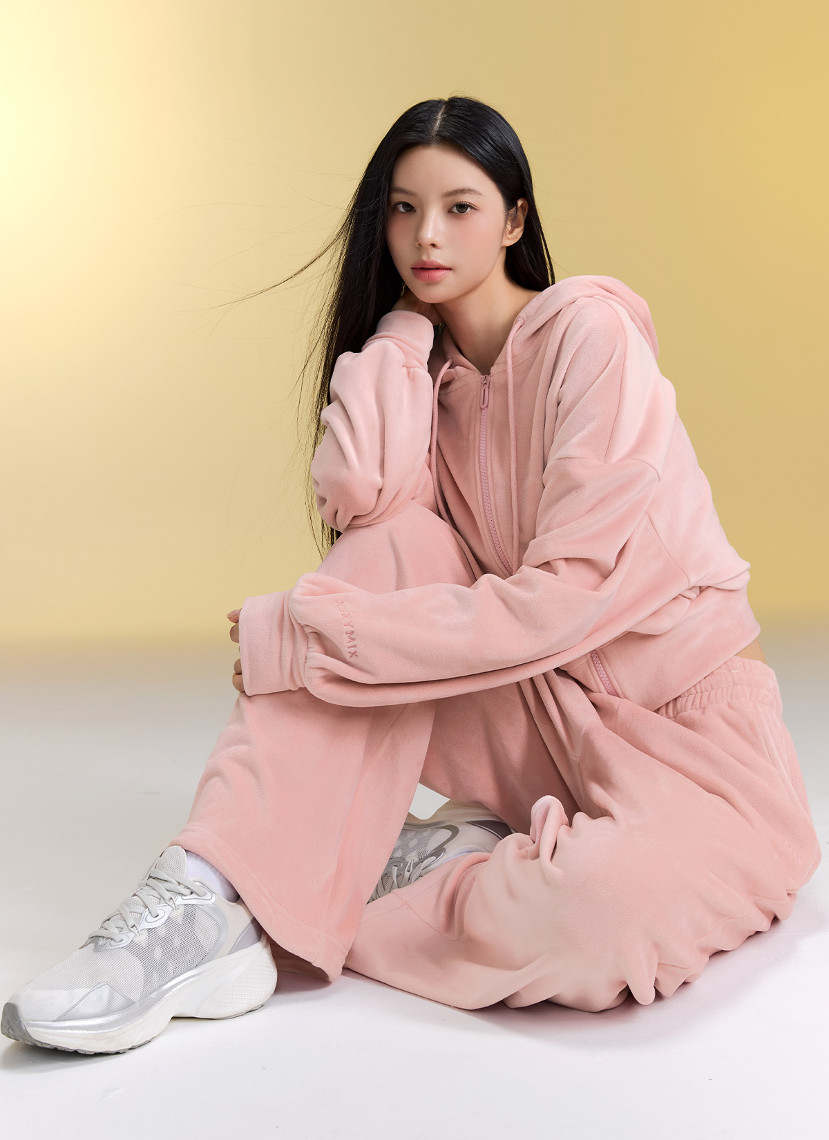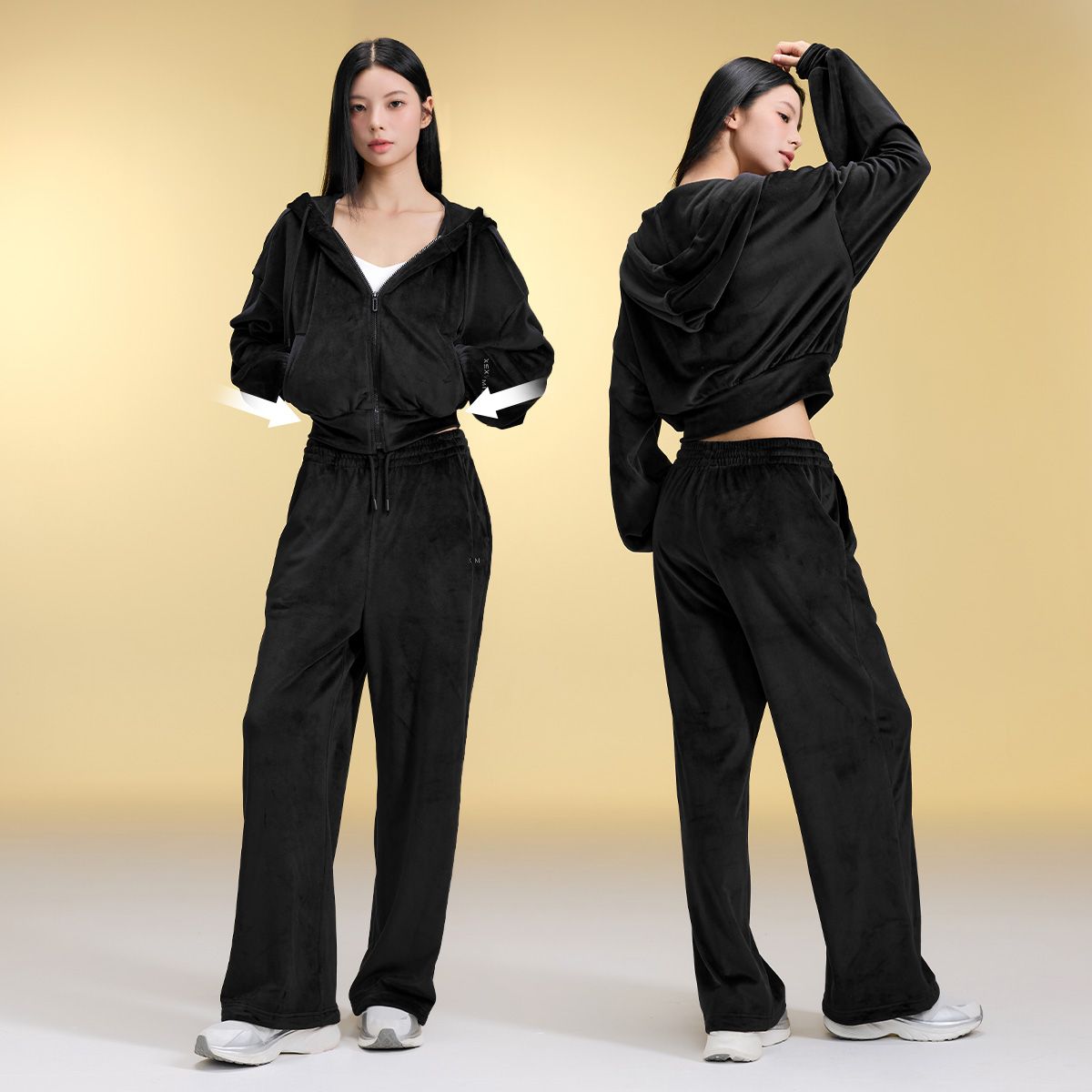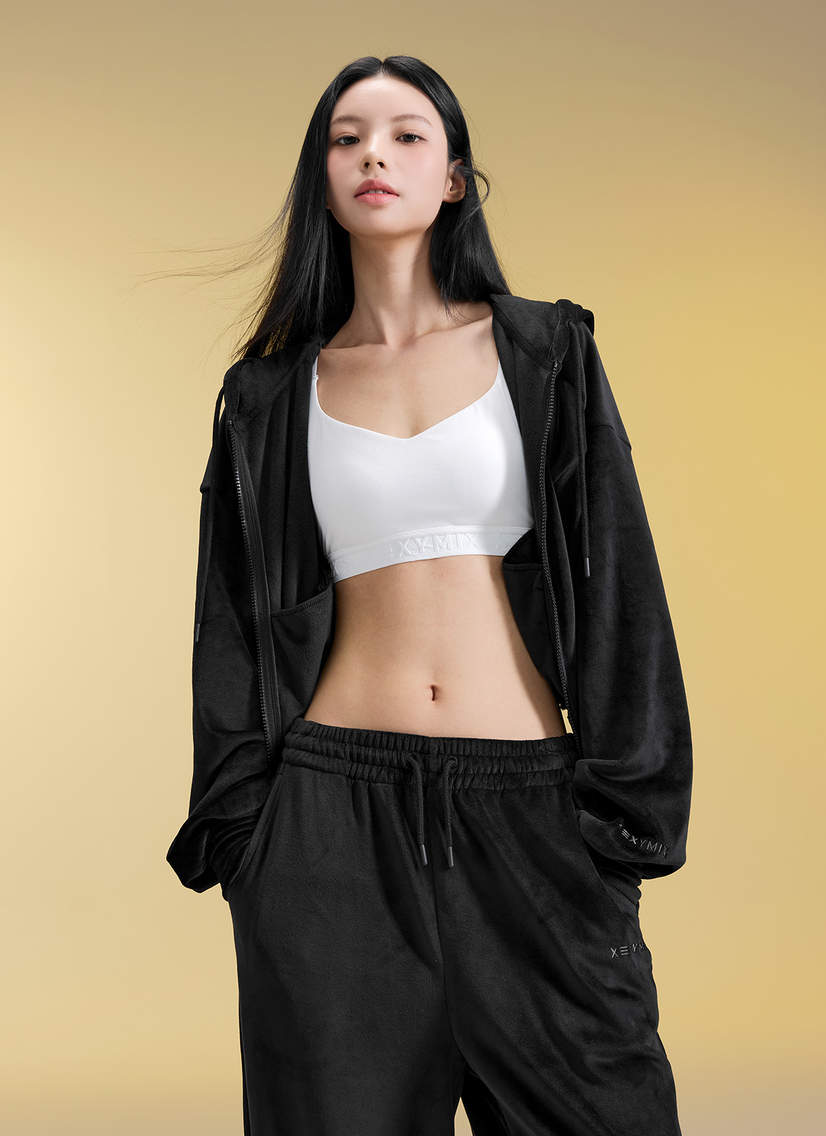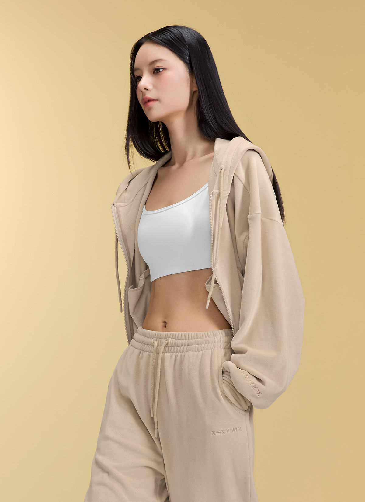 XFK3JL1121 Velour Warm Hood Zip-up Top