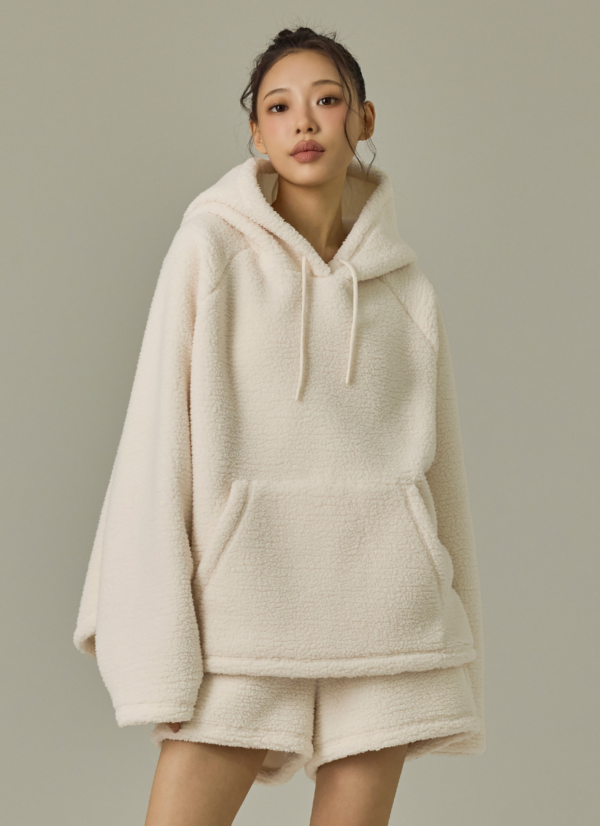 XFK4TL1104 Sherpa Overfit Hoodie Top