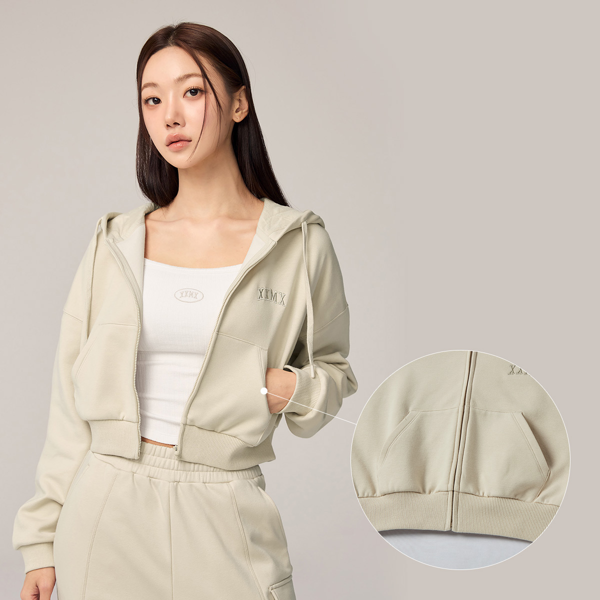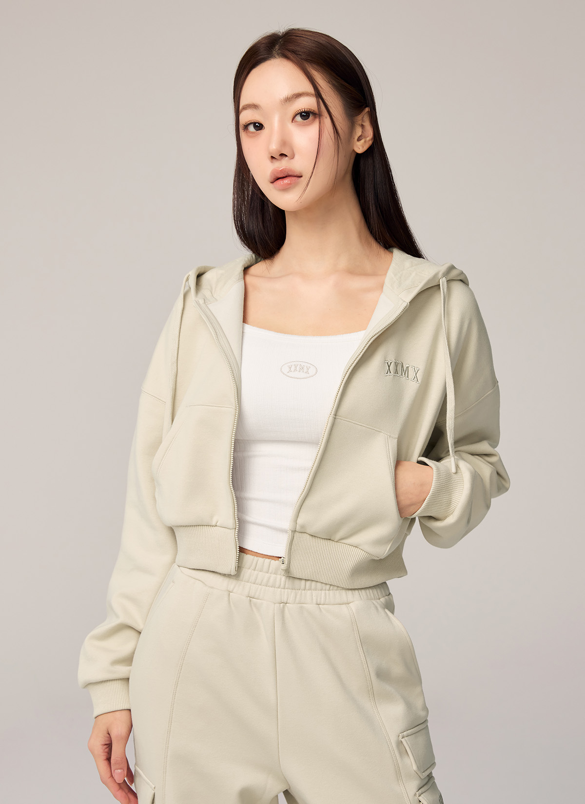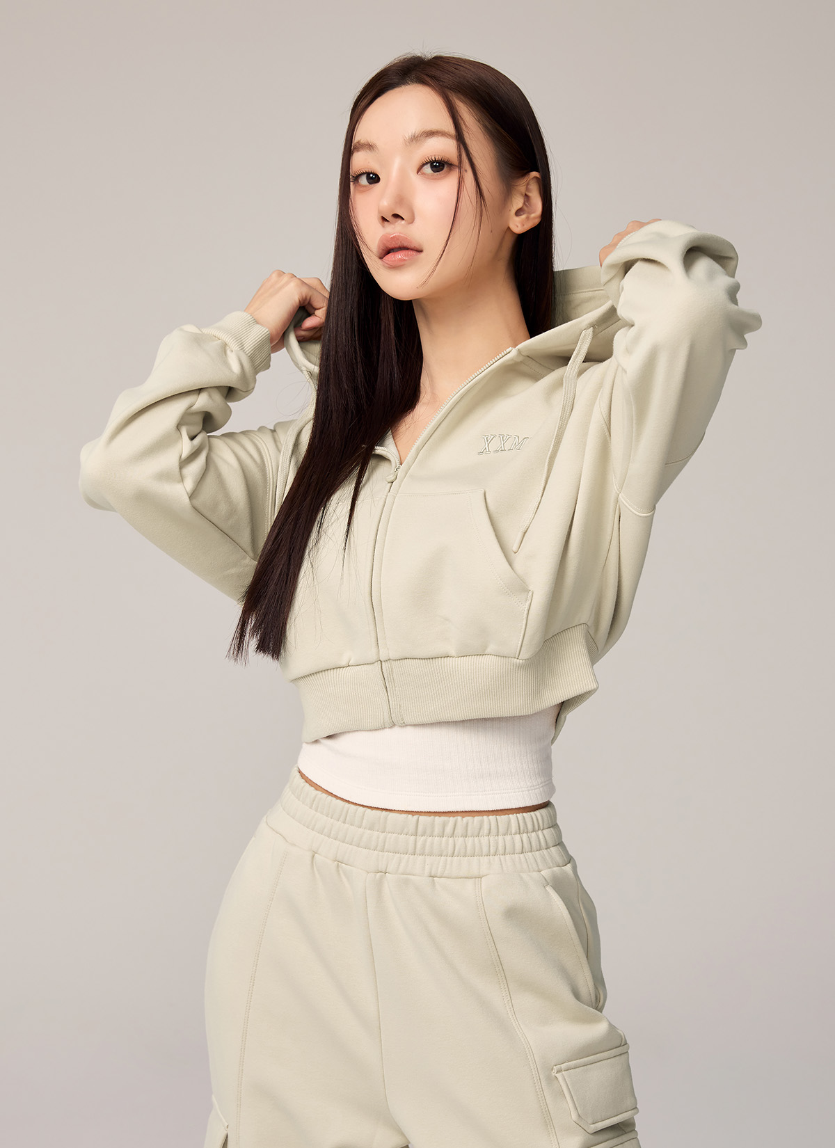 XTFHJ01H4 Warm Cotton Crop Hood Zip up TOP