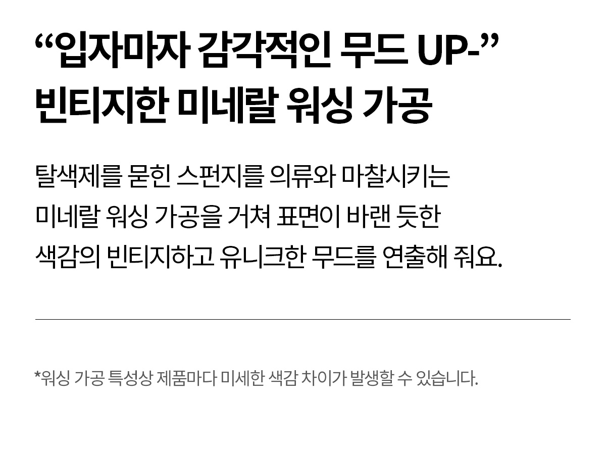 *워싱 소재의 특성상 이염 방지를 위해 가급적 단독 세탁을 권장드립니다.