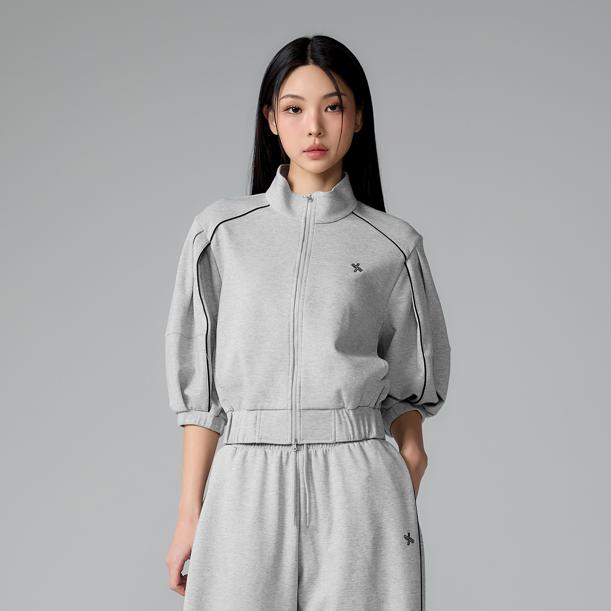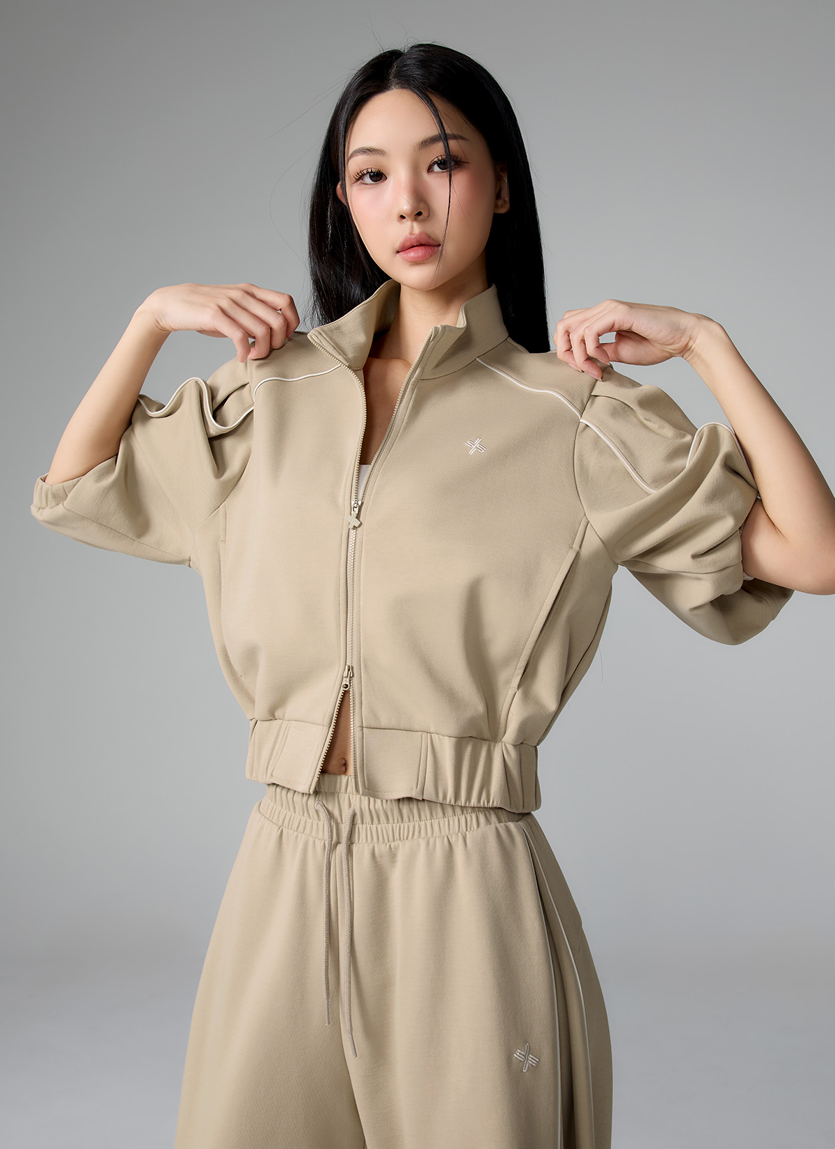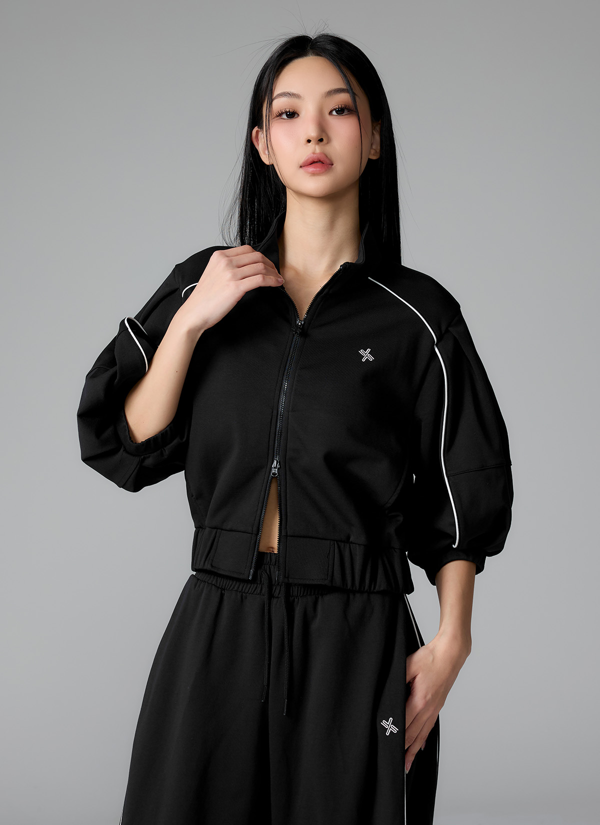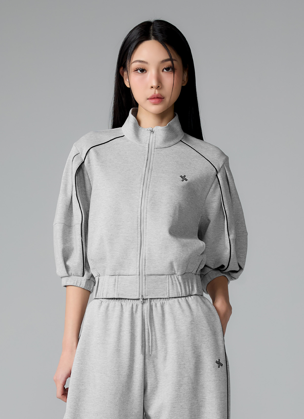 XFL1JL1105 Piping High Neck Zip-up Jacket Top