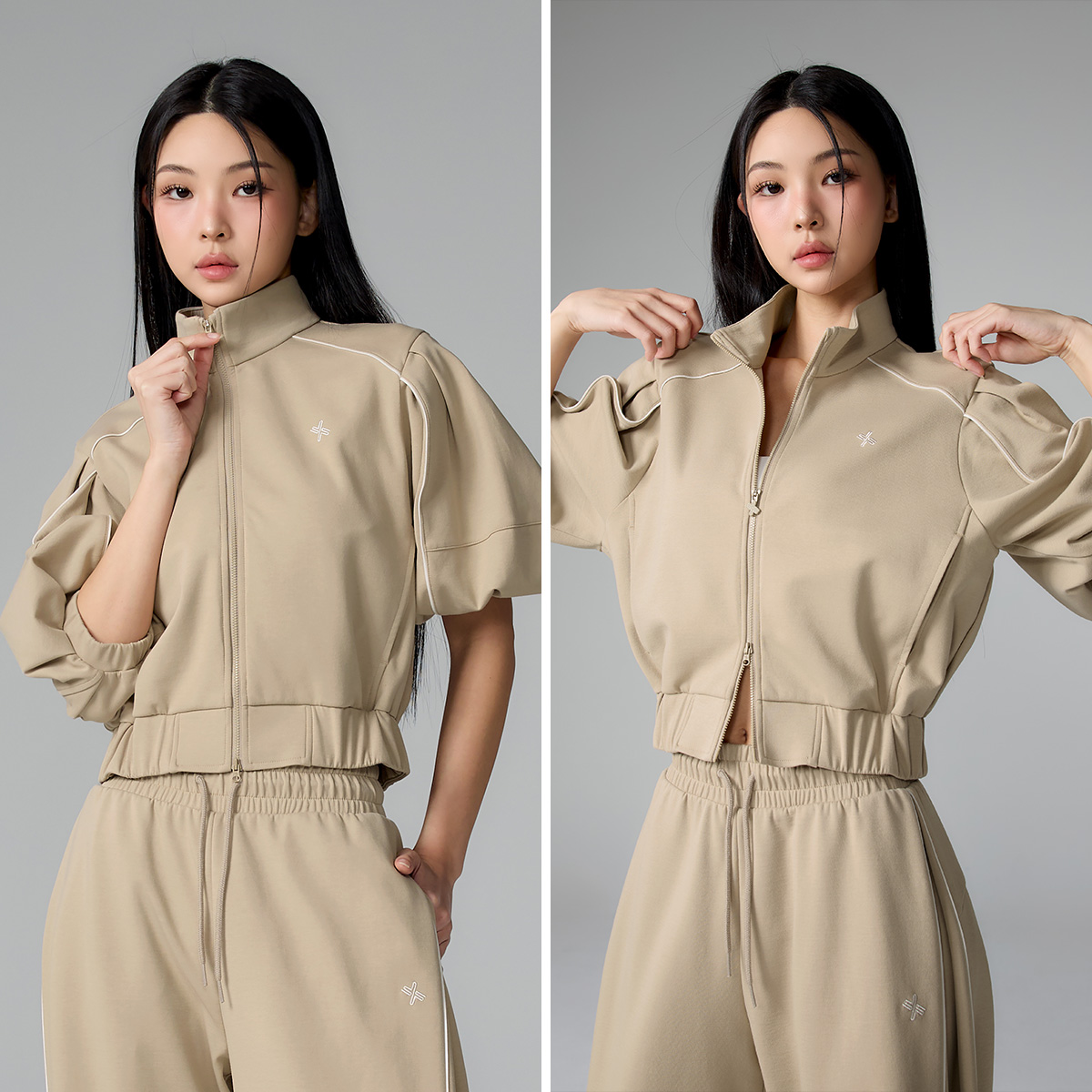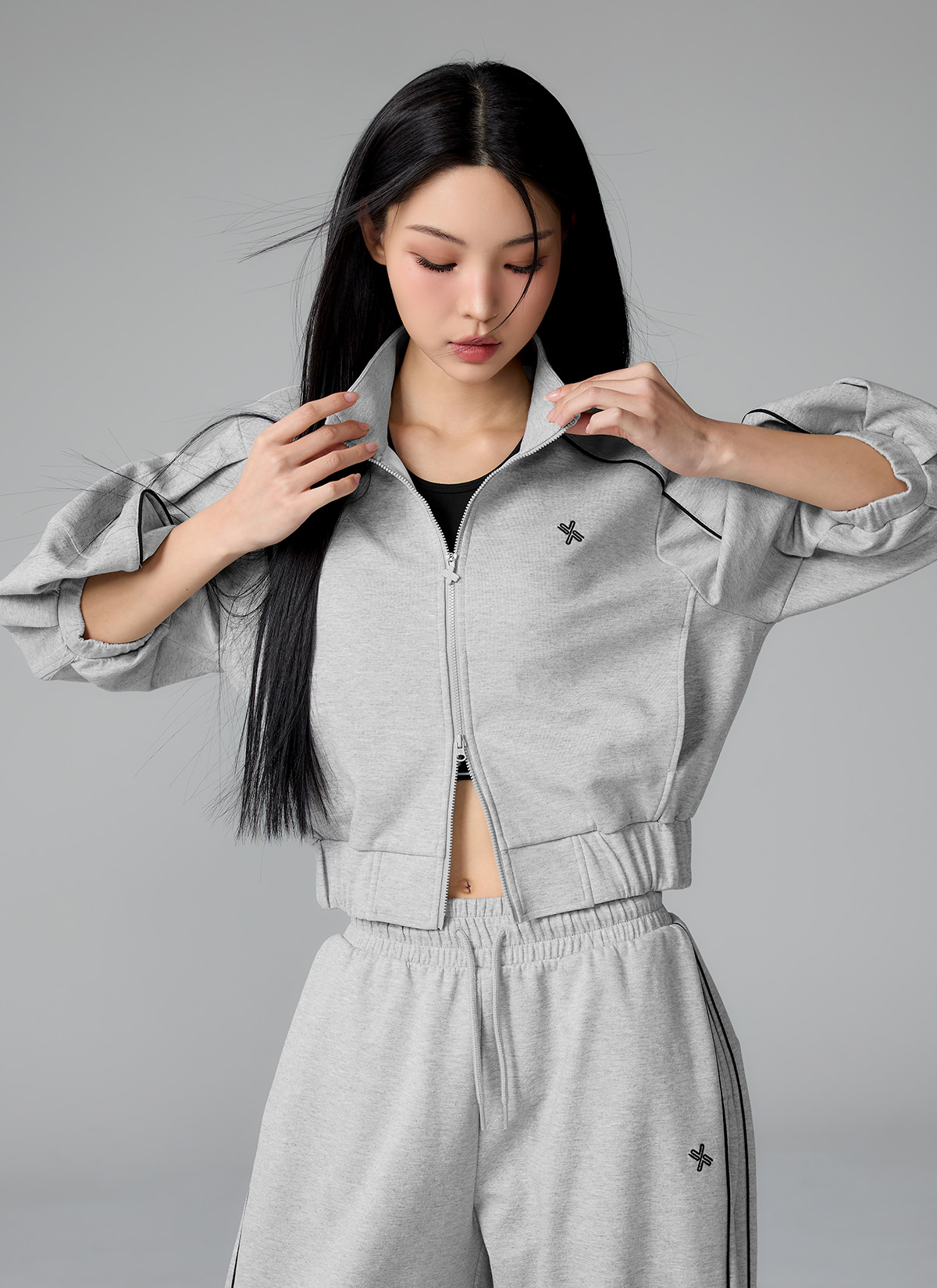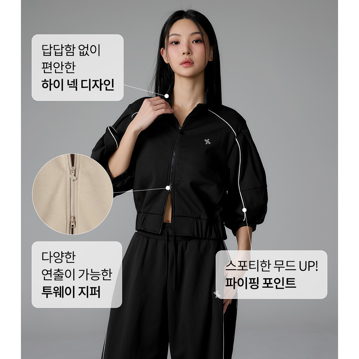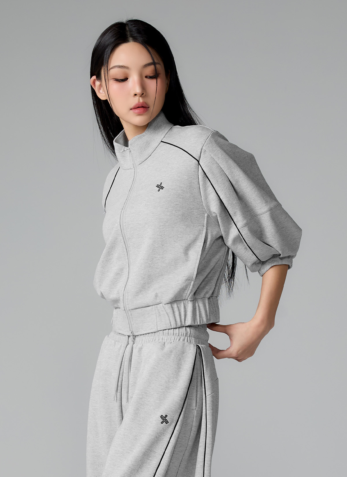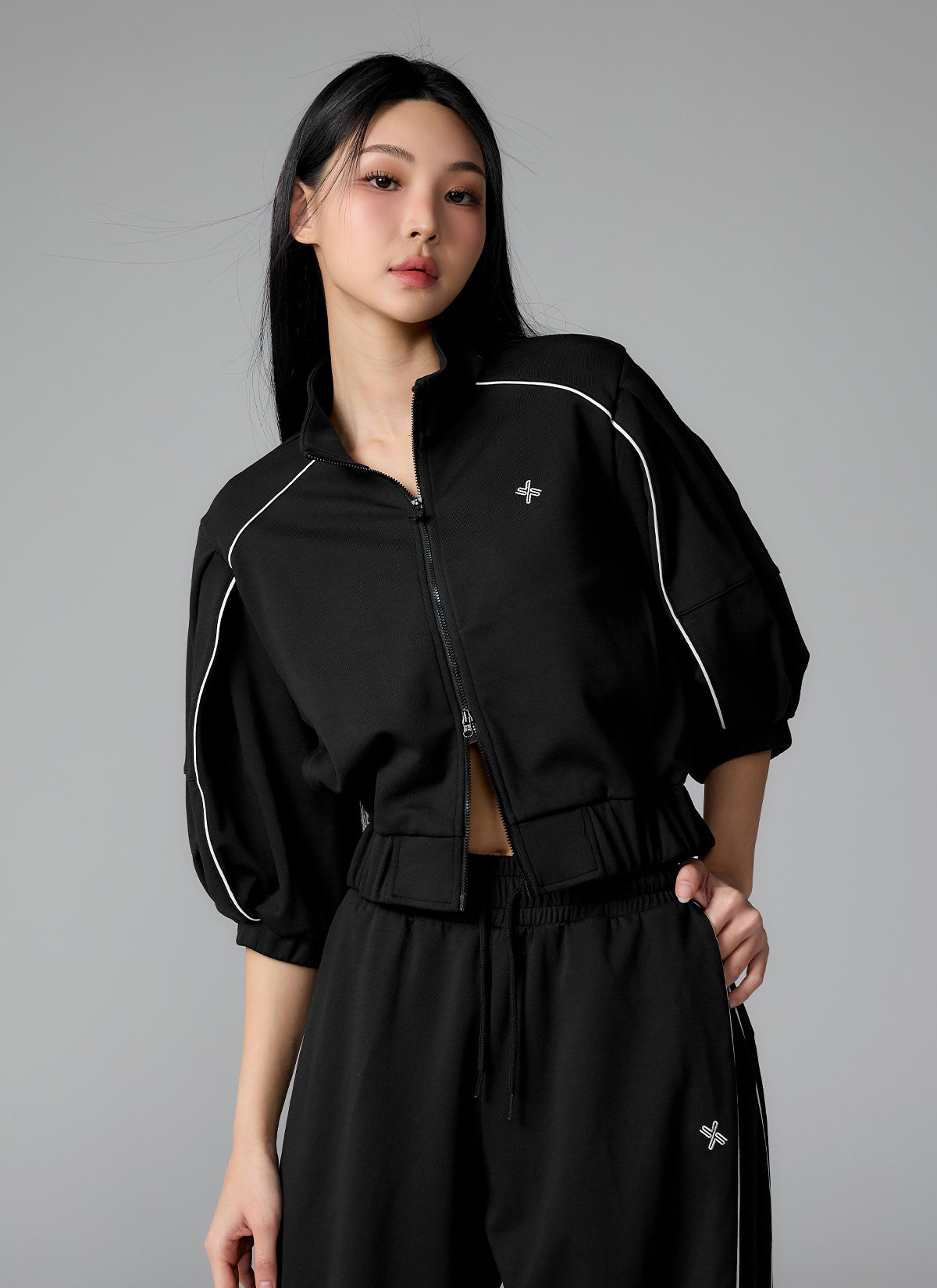 XFL1JL1105 Piping High Neck Zip-up Jacket Top