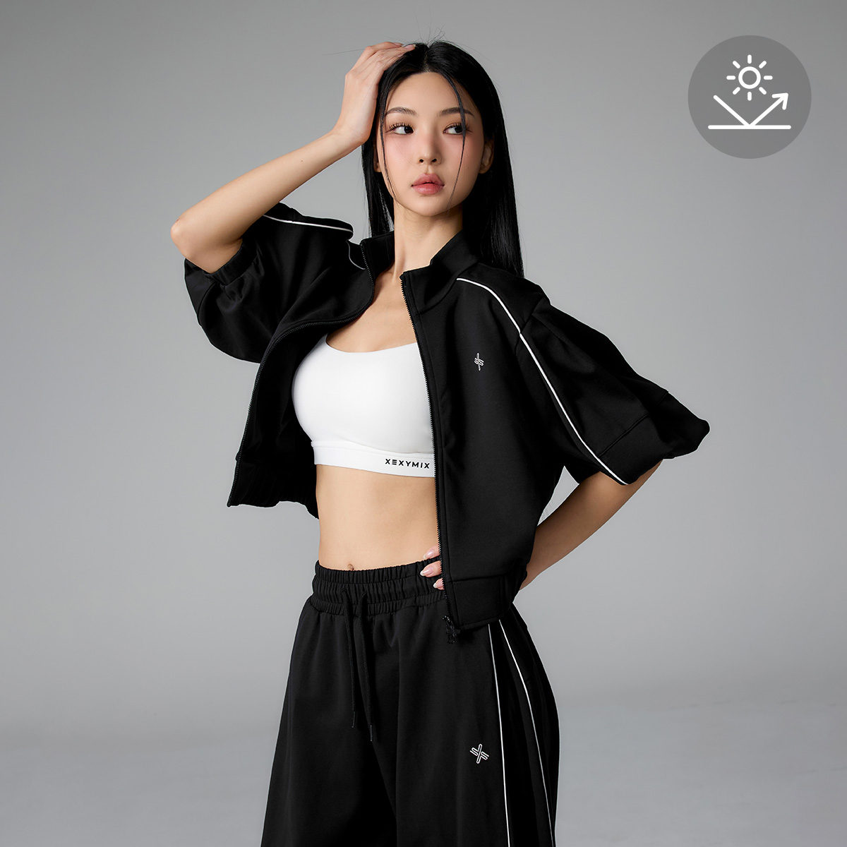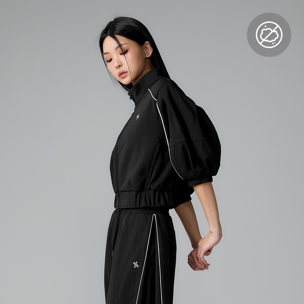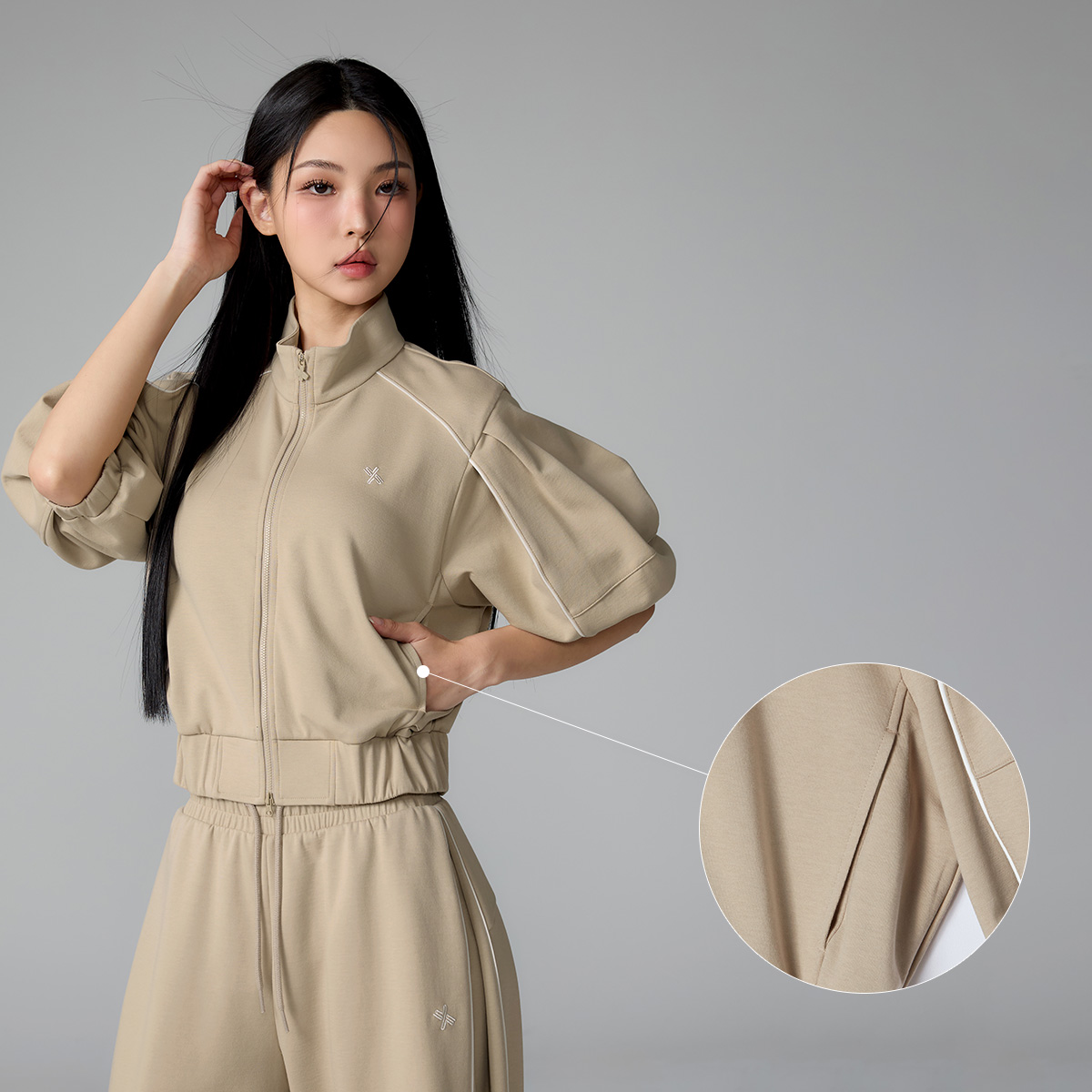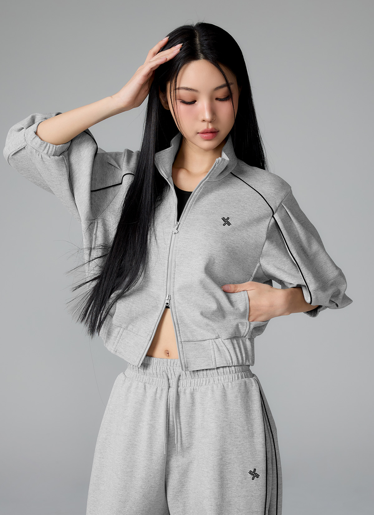 XFL1JL1105 Piping High Neck Zip-up Jacket Top