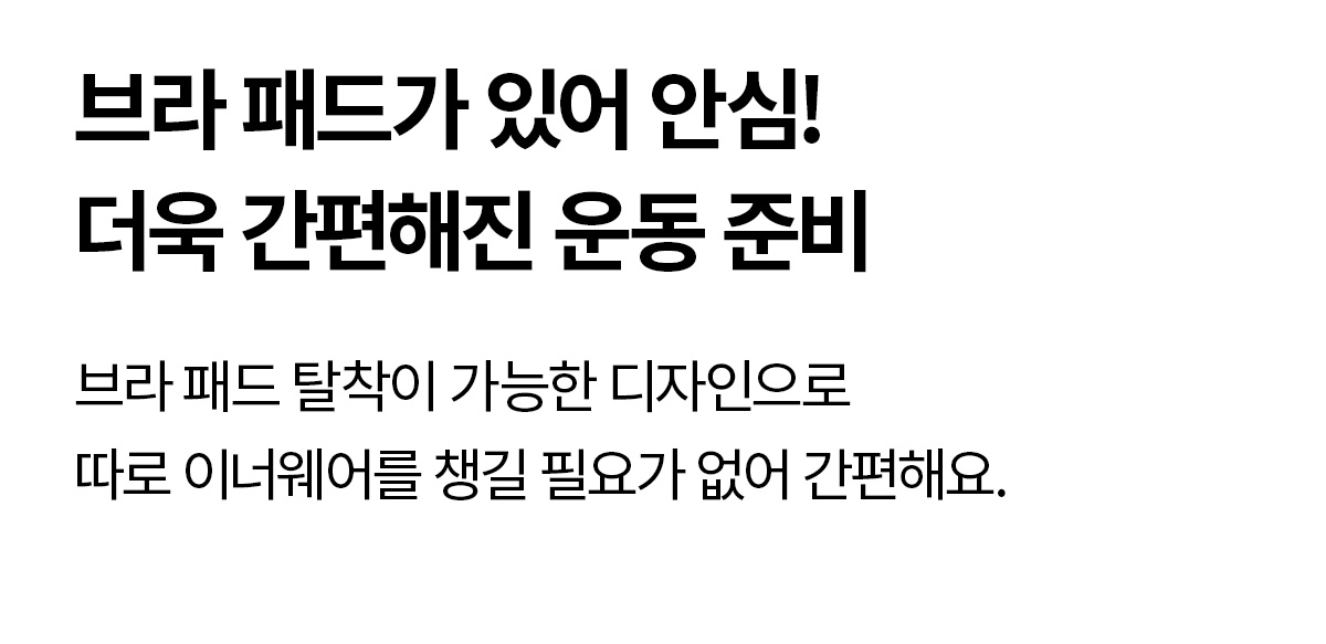 INNER AIR BRA PAD 본 상품은 타공 스펀지로 통기성이 업그레이드된 에어 브라패드(1cm)가 포함되어 있습니다. S, M 사이즈 패드탑 : S / M 사이즈 패드 L, XL, XXL, XXXL 사이즈 패드탑 : L / XL 사이즈 패드