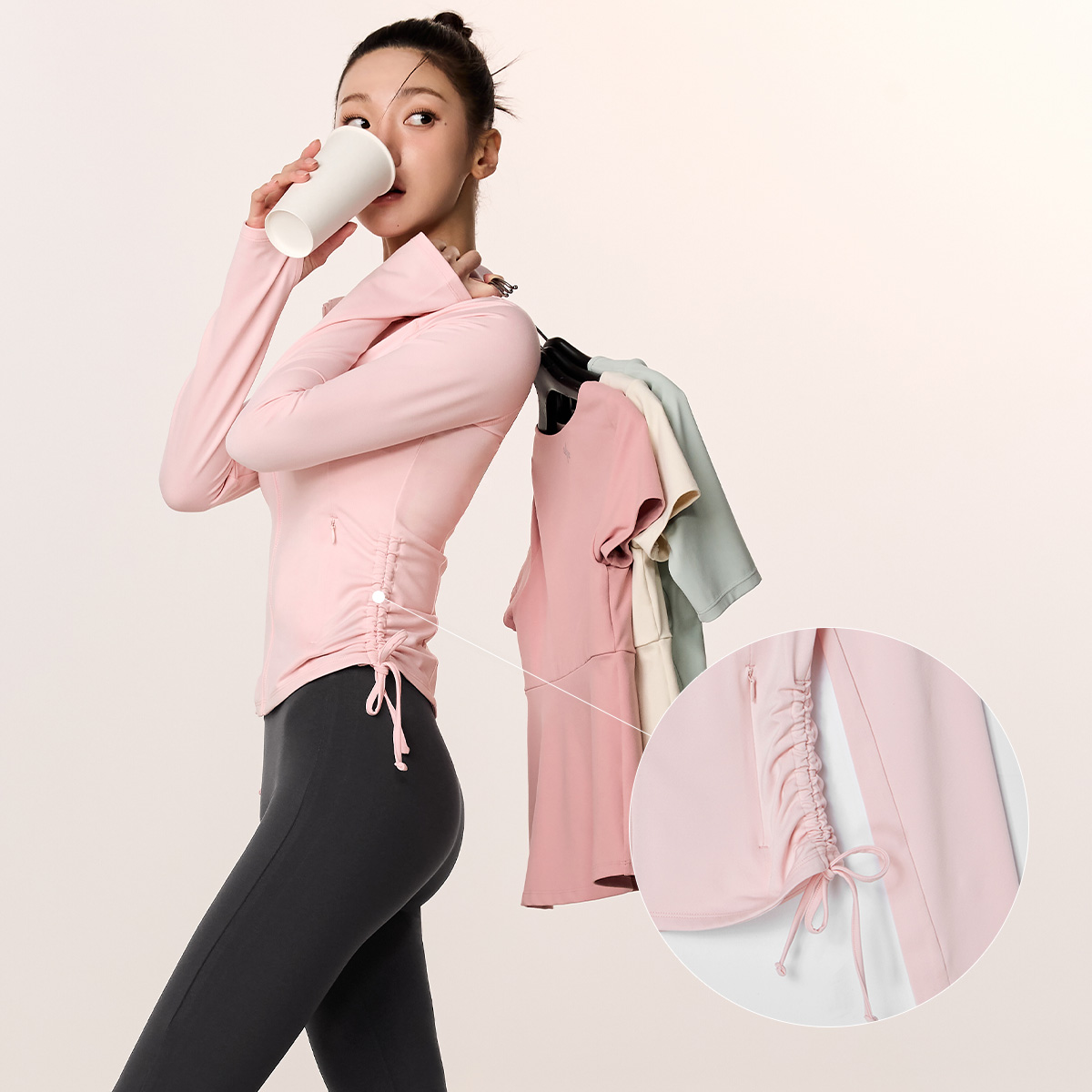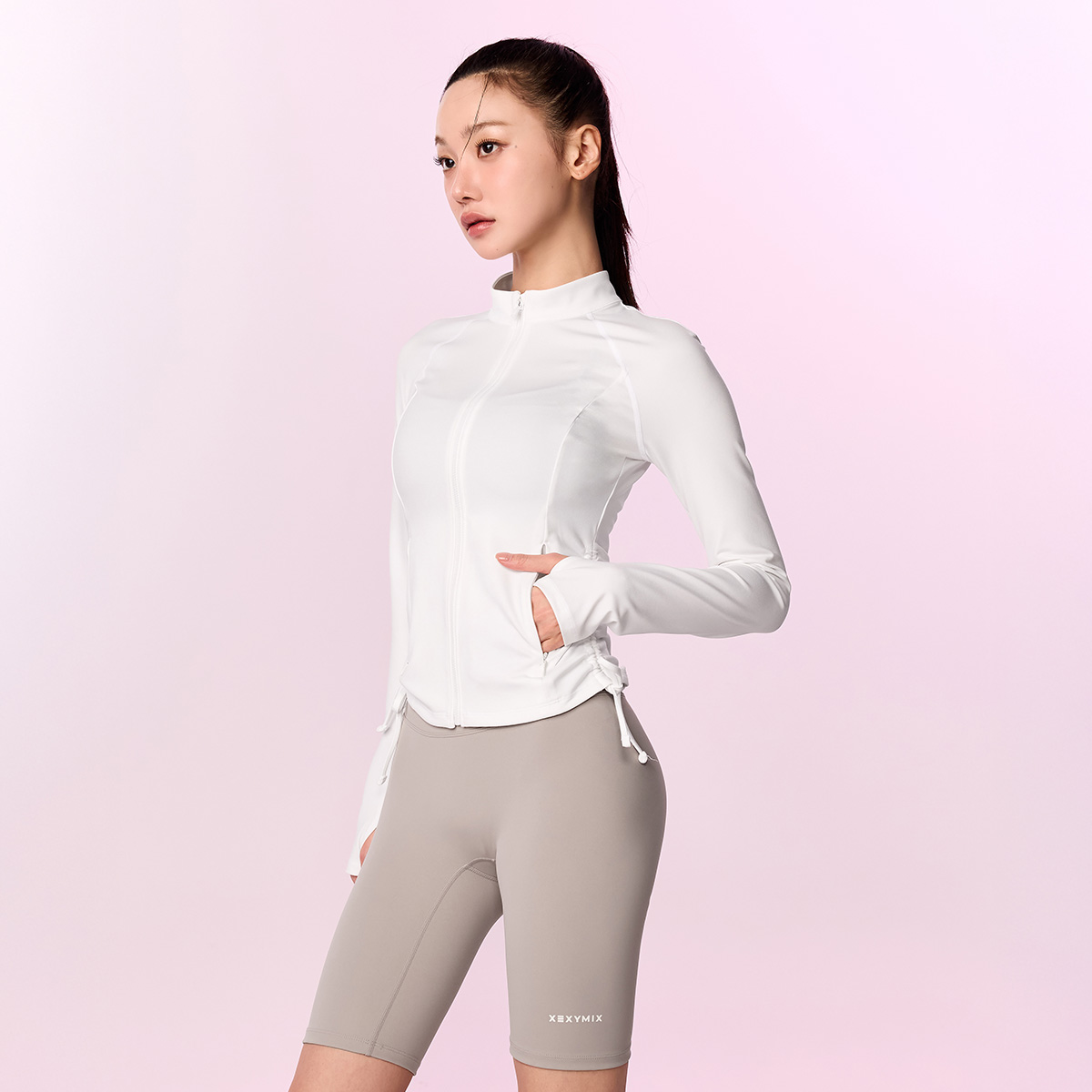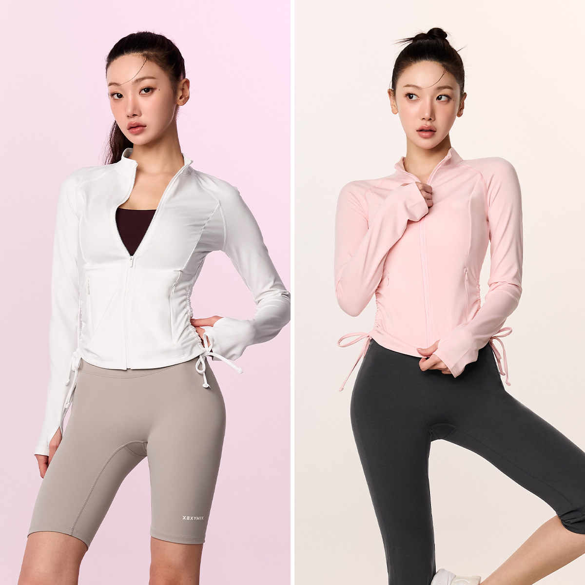 XFL1JL1003 Side shirring two-way zip-up jacket Top
