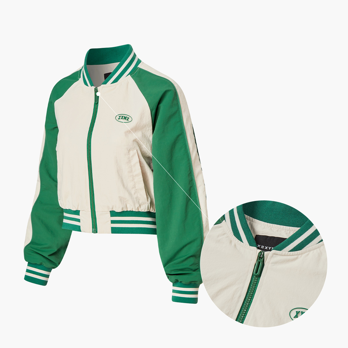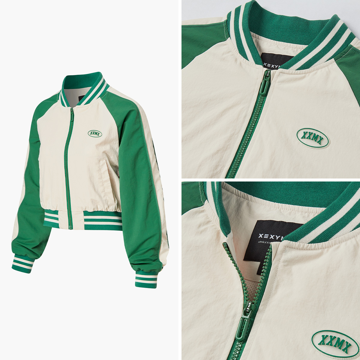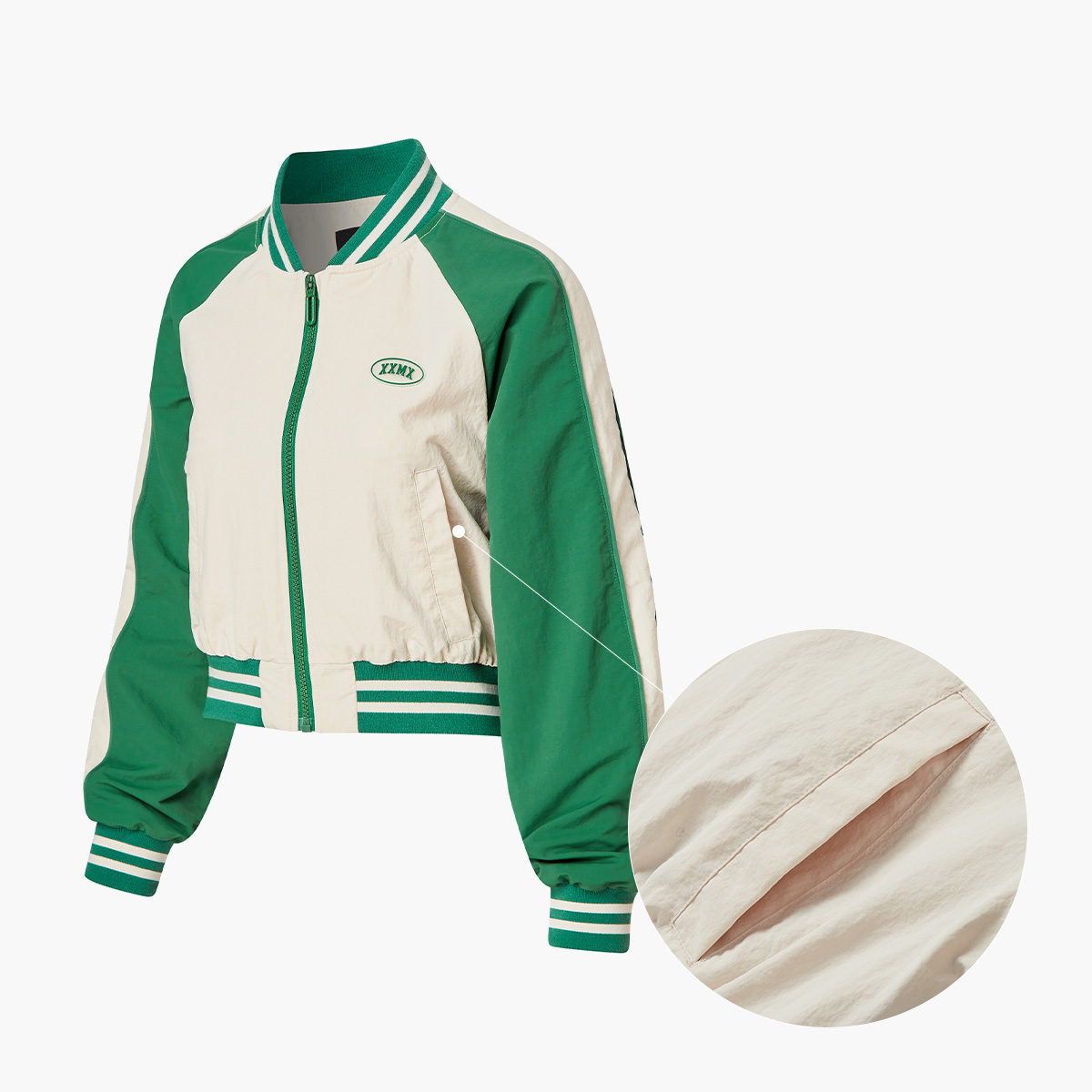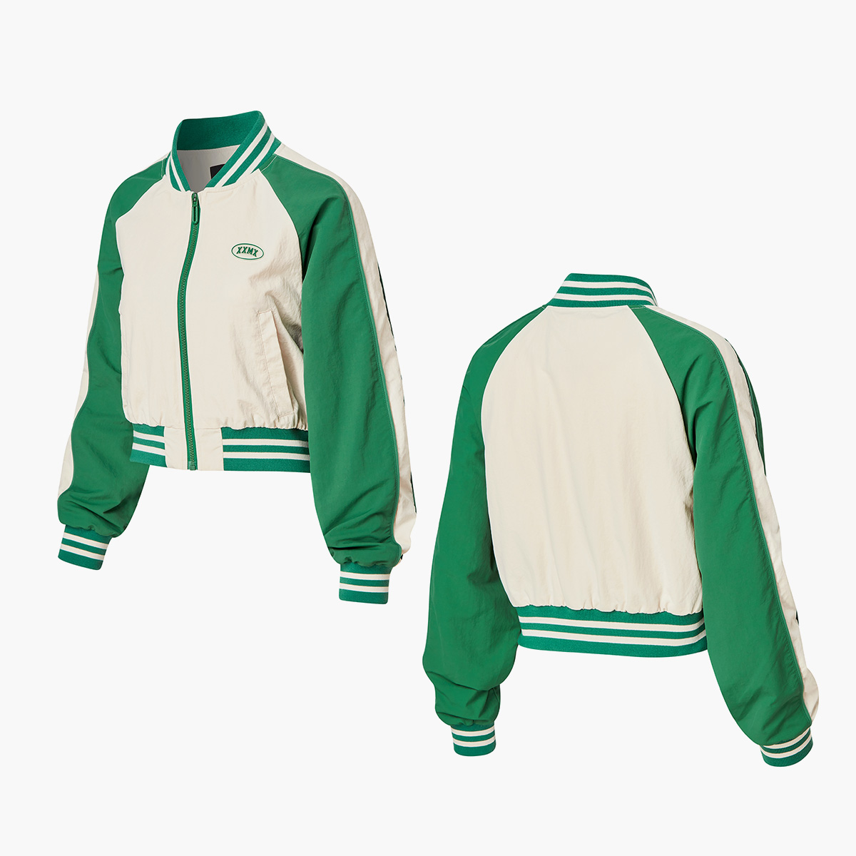 XTFJK03J1 Woven Crop Varsity Jacket Top