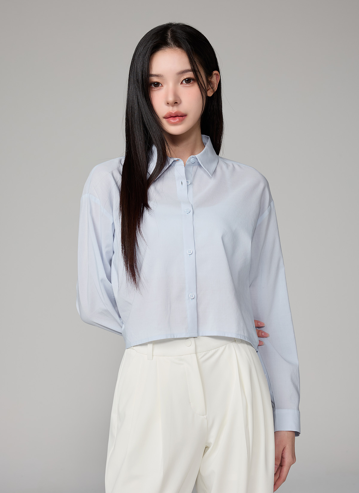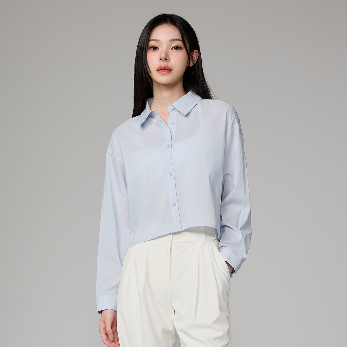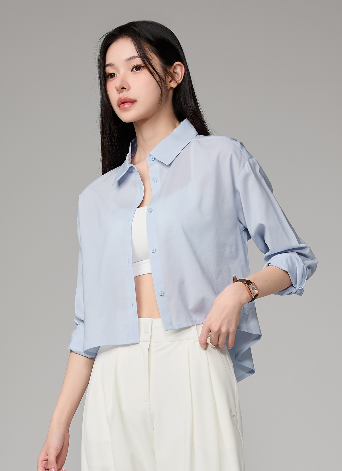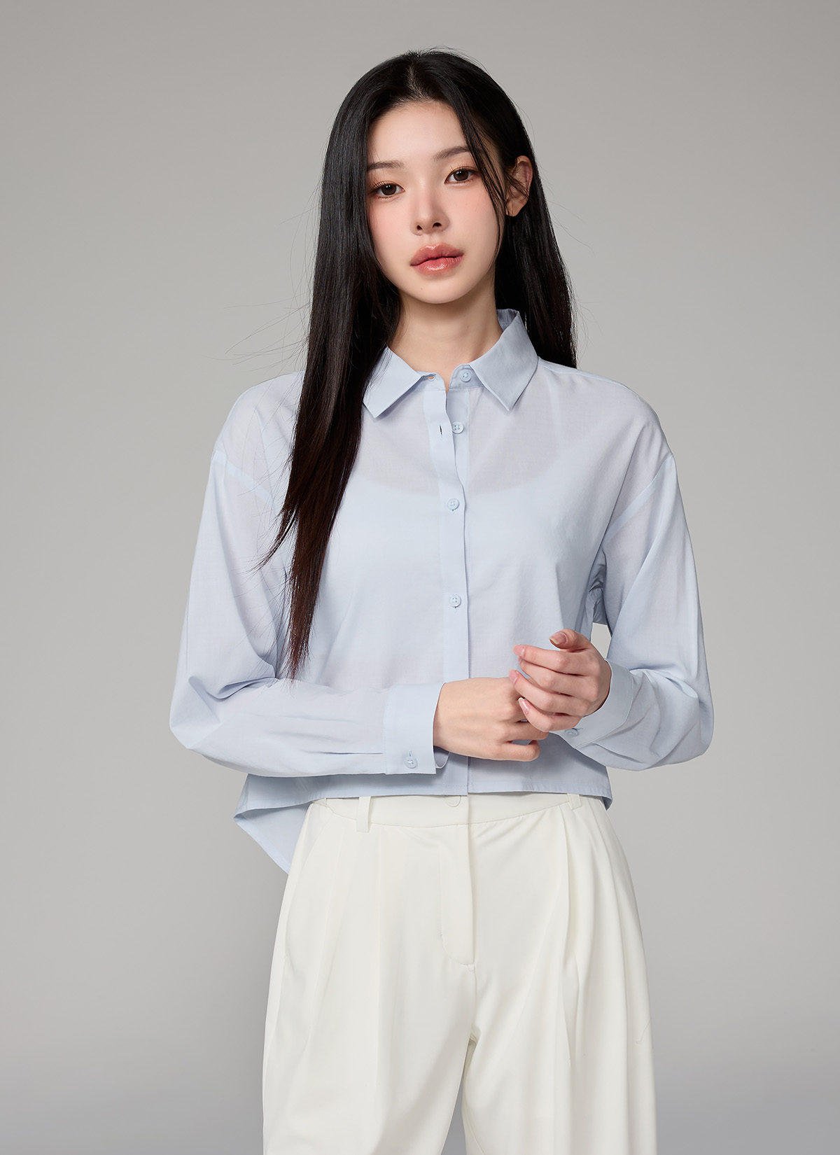 XFL1HC1101 Lightweight Back-Button Cropped Shirt TOP