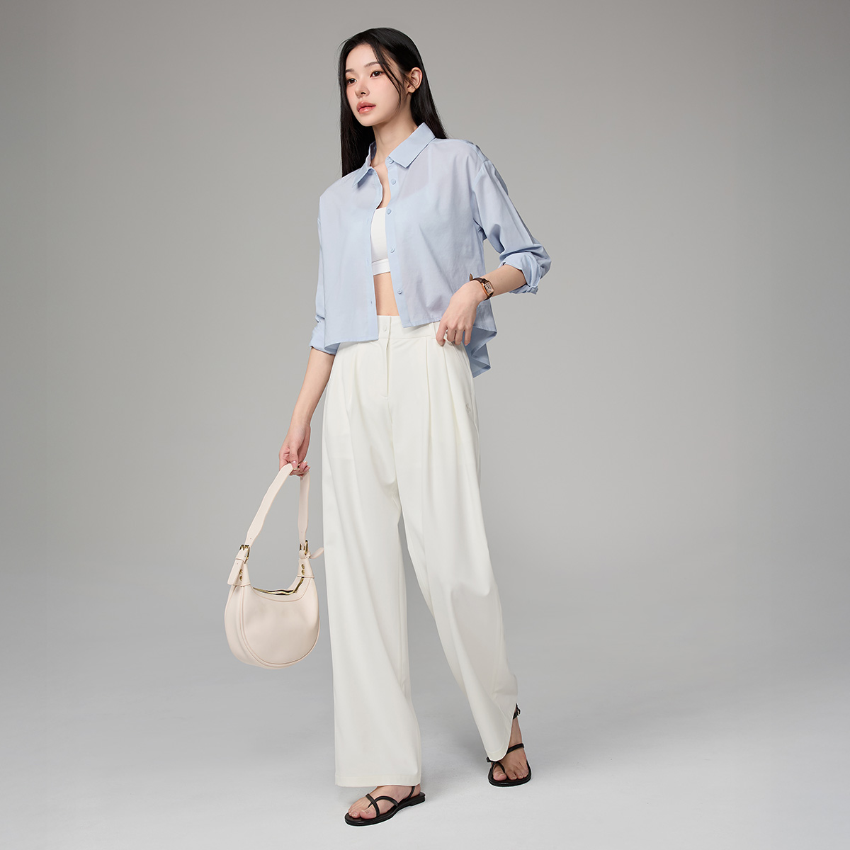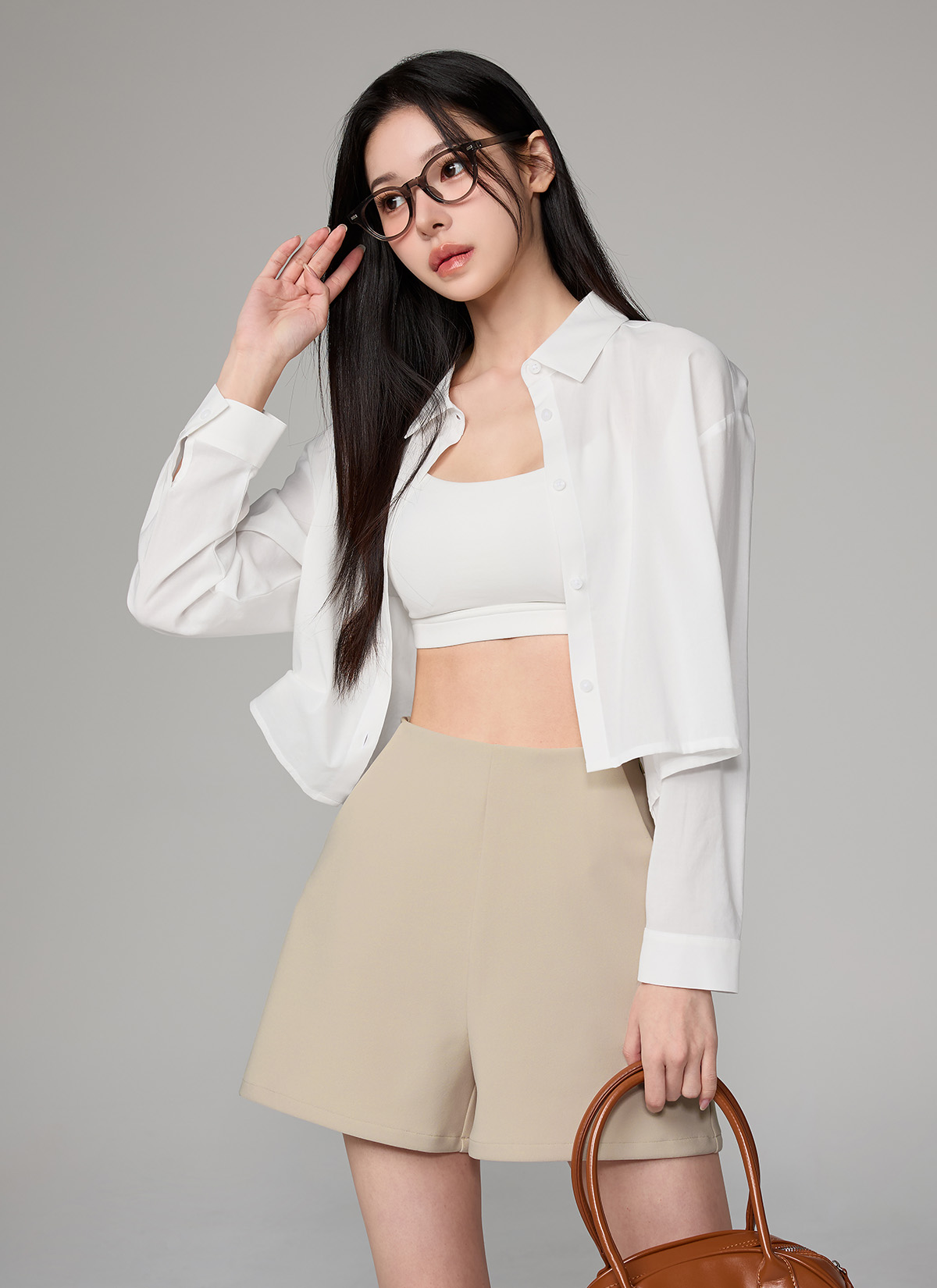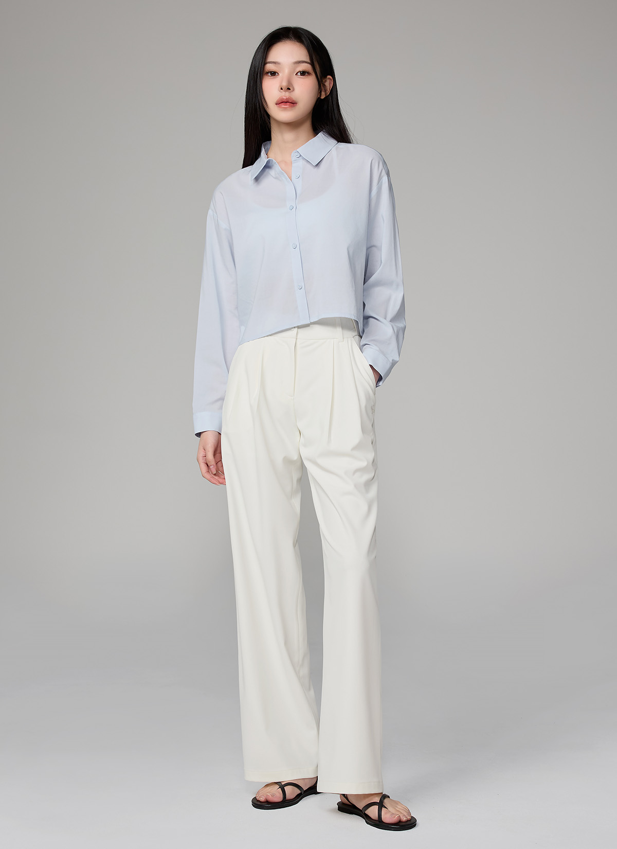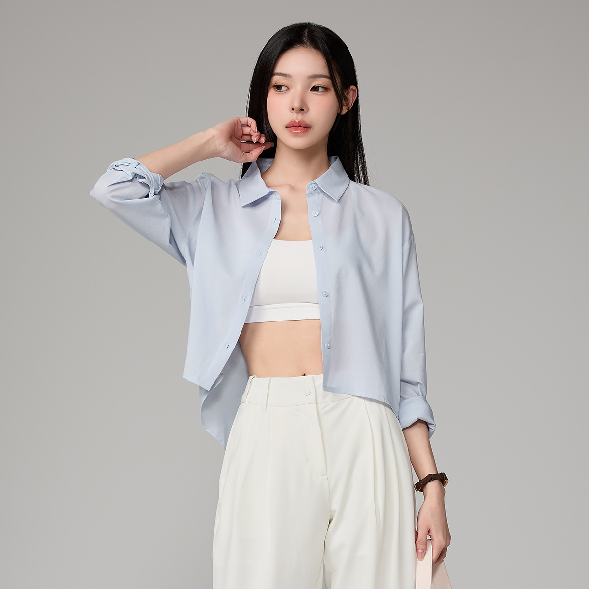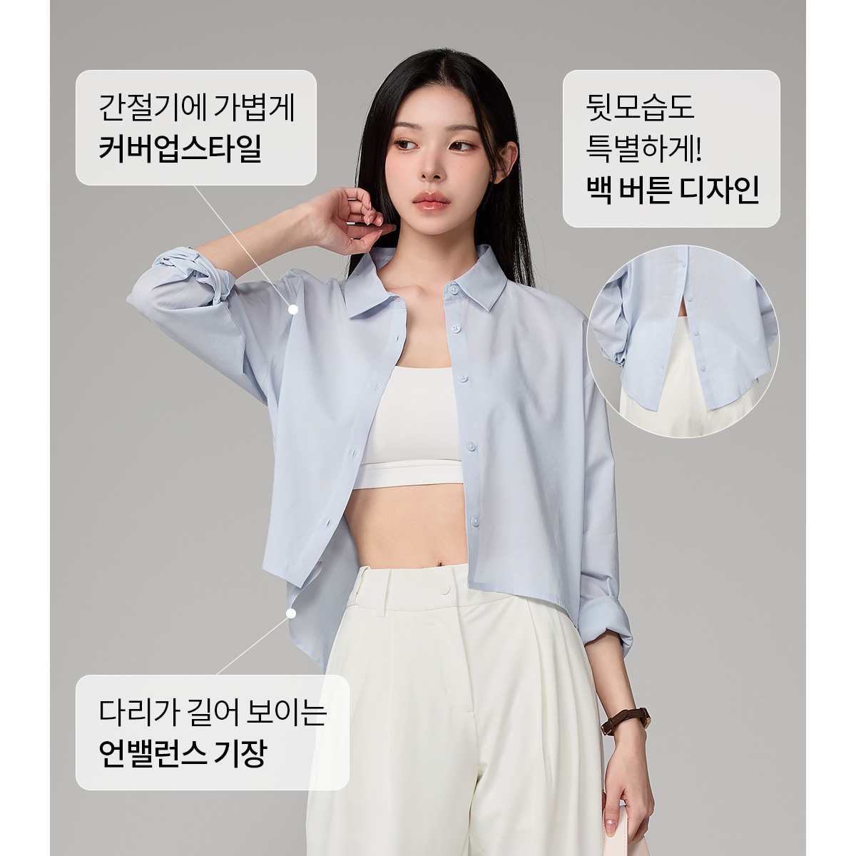 XFL1HC1101 Lightweight Back-Button Cropped Shirt TOP