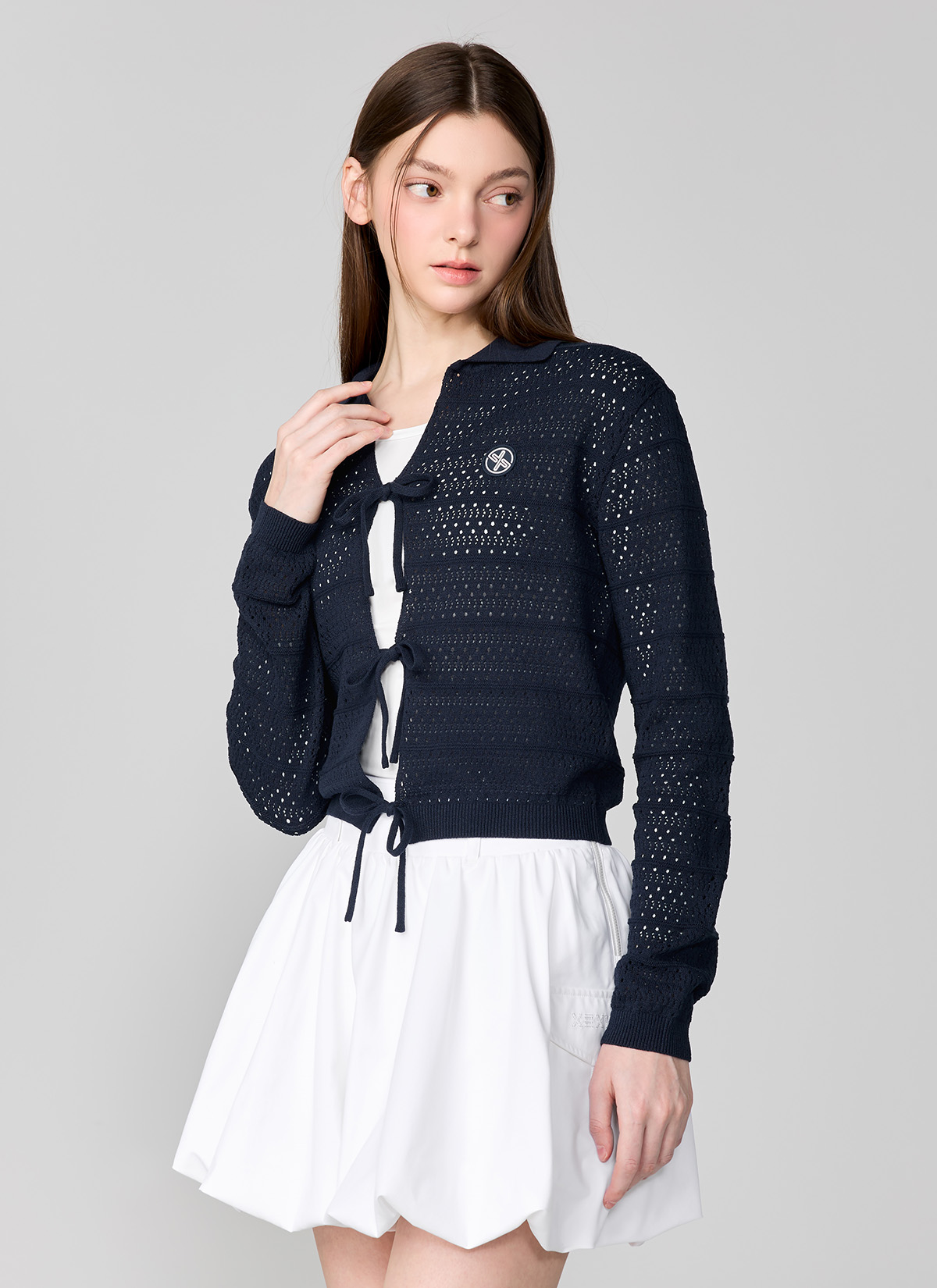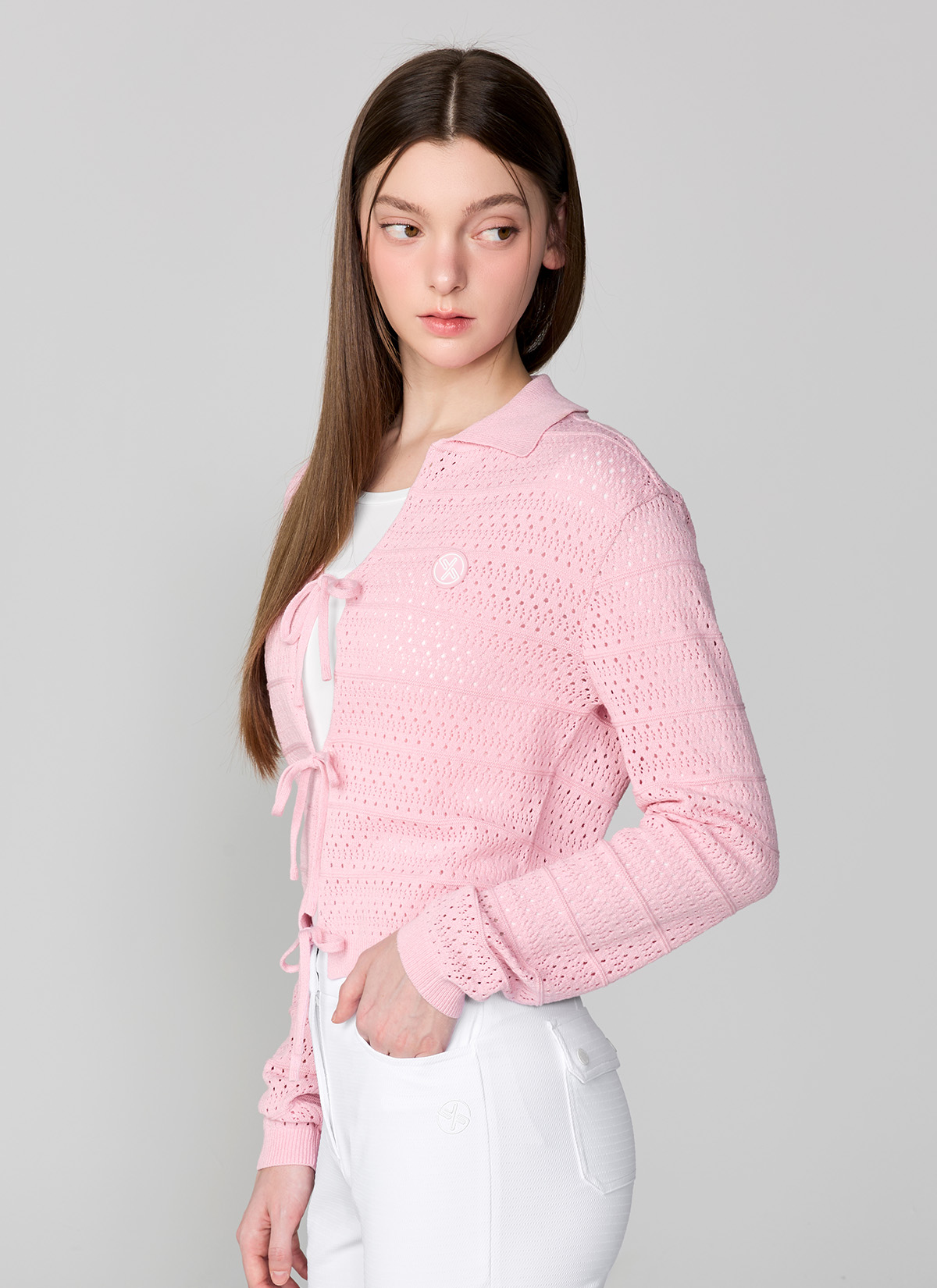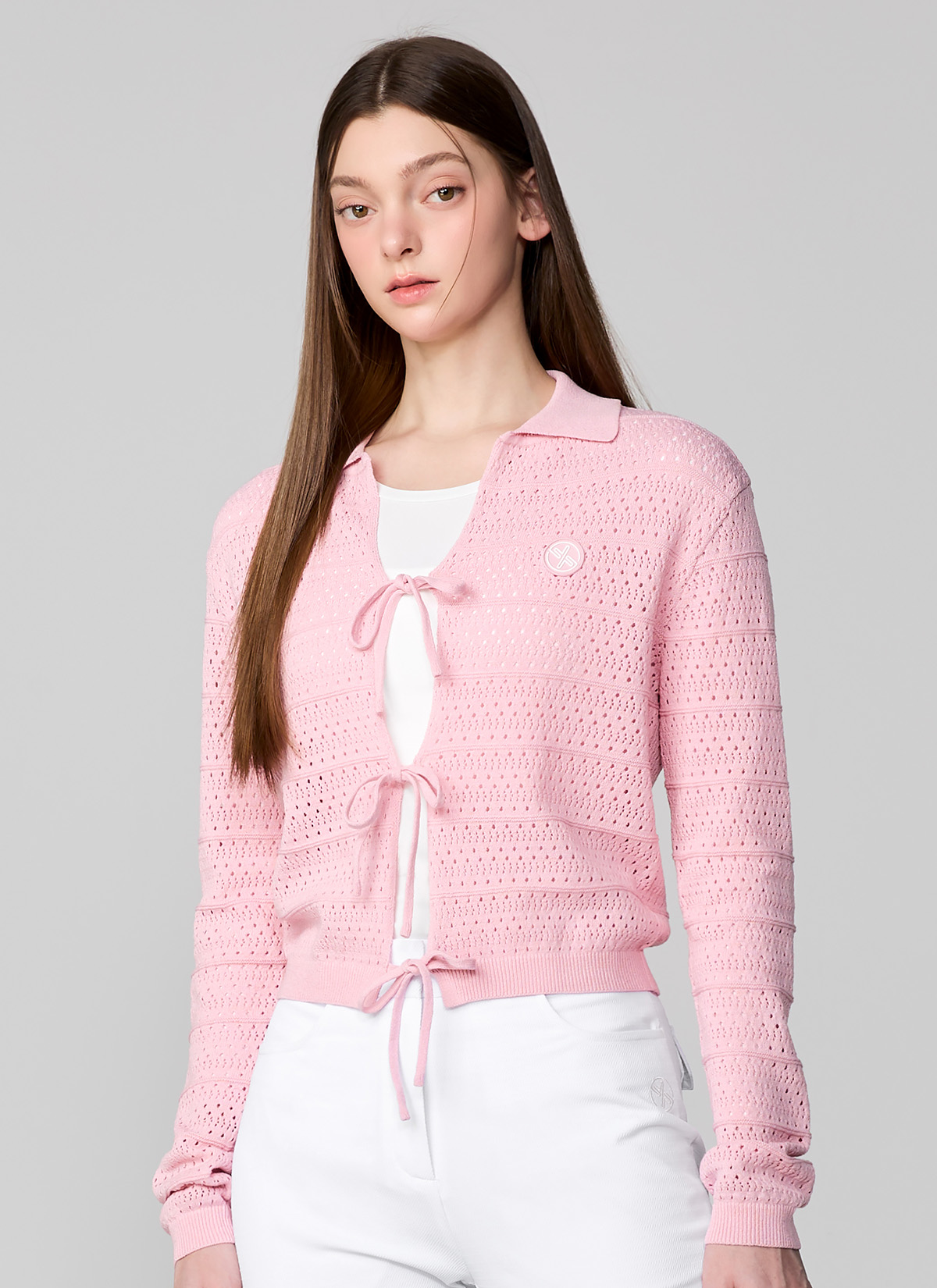 XFL1EC1201 Ribbon Knit Cardigan TOP