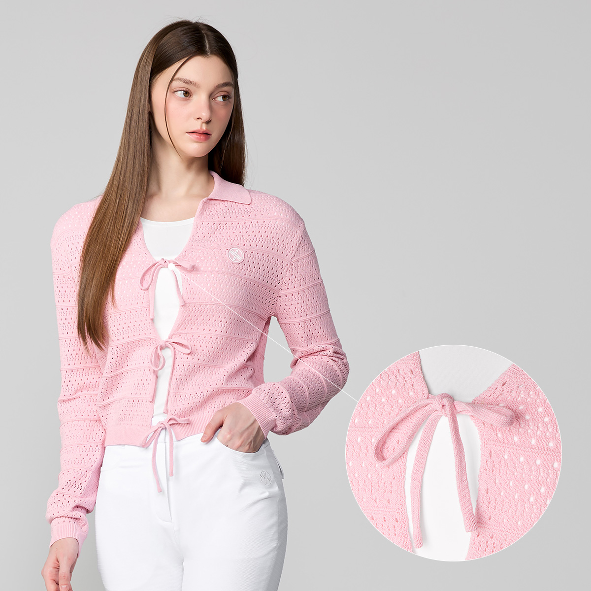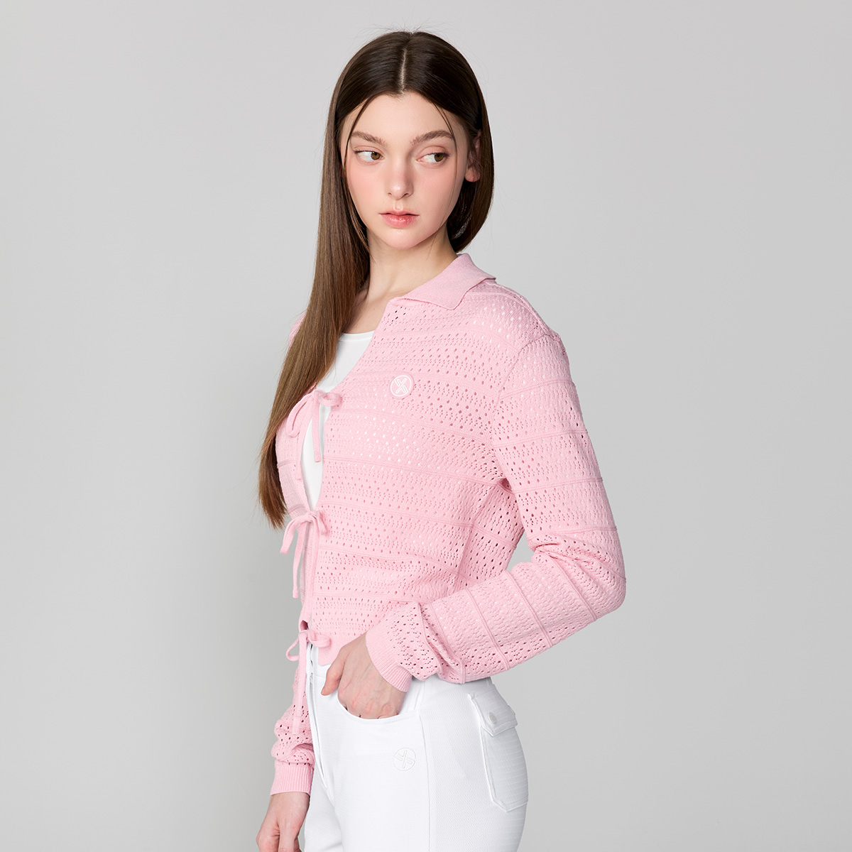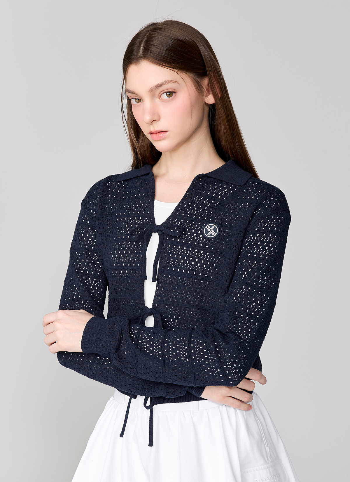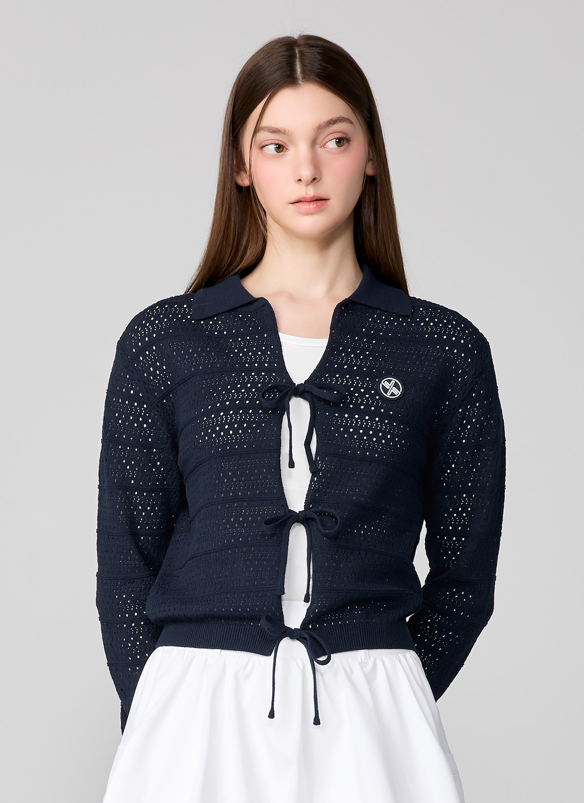 XFL1EC1201 Ribbon Knit Cardigan TOP